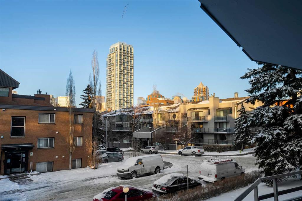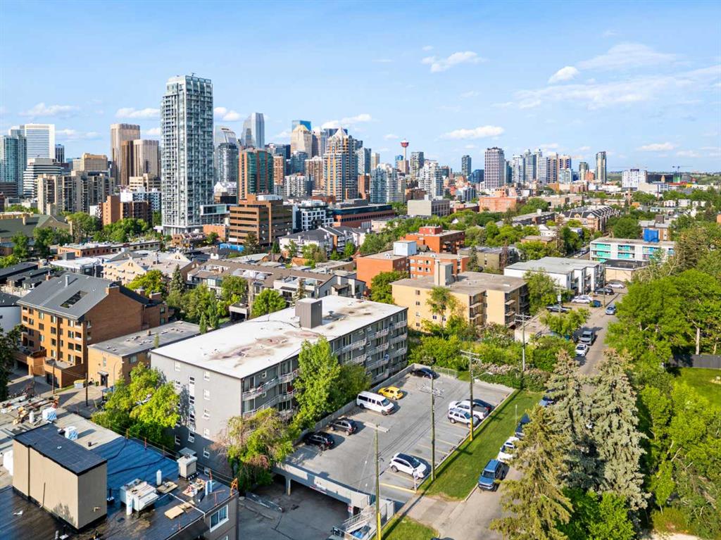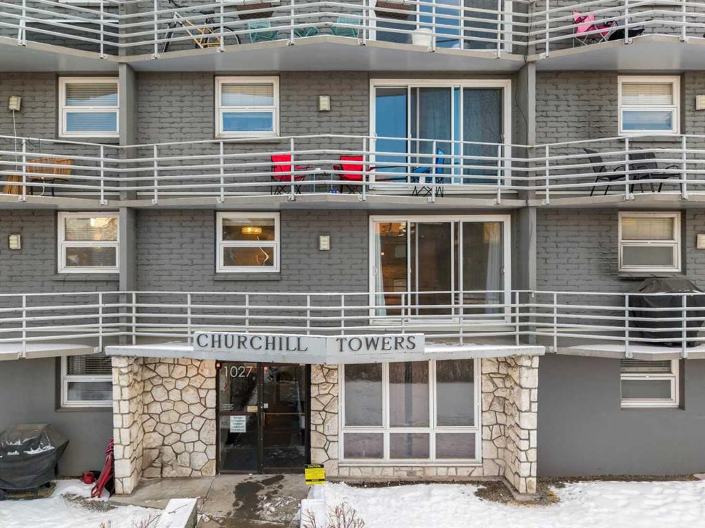 Located in the heart of Lower Mount Royal, this turn-key residence is the perfect live-in or rent-out investment as it has been gorgeously remodelled, is in a concrete building with low condo fees, showcases downtown views and is perfectly located just steps to the beltline! Step inside to your gorgeous renovation, as this unit has been exquisitely remodeled and promises to leave a lasting impression! From the moment you walk in, you will be captivated by the opulent finishes and premium selections offered in this home. The lavish renovation is inclusive of everything: new engineered hardwood, trim, doors, paint, hardware, potlights, light fixtures, appliances and of course you will love the luxurious details in the brand-new kitchen and bathroom! The gourmet kitchen is striking now that it has been opened up from its original closed off design and features timeless white cabinets elevated with transom details. The kitchen showcases granite countertops featuring a lavish waterfall edge, professional appliances, designer lighting – and a rare perk for a condo in this complex – in suite laundry! The European style washer/dryer offers a rare perk – as most units in the complex have to use the shared laundry room where you pay per use. The island is the perfect space for entertaining or cooking and opens onto an intimate dining area – they don’t make condos so spacious anymore! Your expansive family room is so impressive, and it has enough space to accommodate an in-home office too, plus it is adorned with natural light from the floor to ceiling patio windows that accesses your beautiful balcony facing downtown. Yes, the view is included as many units in this price range face a parking lot! Your primary retreat can fit a king-sized bed and sits adjacent to your re-designed four-piece bath featuring an extended vanity and granite countertops. Please note that the unit has a front hall closet, ample bedroom closet, linen closet, and a storage room RIGHT beside the unit door. This unit is located in Churchill towers which is a well-maintained concrete building with a healthy reserve fund and recent building renovations (new elevator 2010, boilers 2015, renovated lobby 2012, & a security system). This location is within steps of Urban Fare (groceries), Goodlife Fitness, 17th Avenue restaurants/shopping, Canadian Tire, Shoppers Drug Mart, Stampede, Saddledome and the parks and paths surrounding elbow river. A perfect investment property that can be a part of this buildings managed rental pool so you can sit back and have someone take care of the tenants for you. This residence offers exceptional value – book your private viewing today!