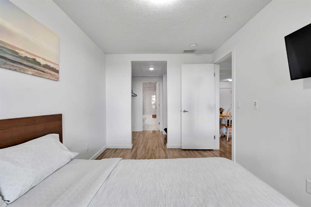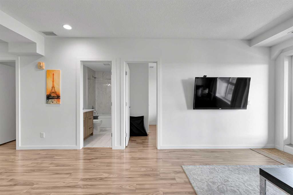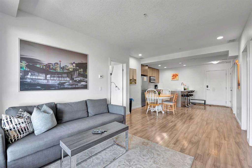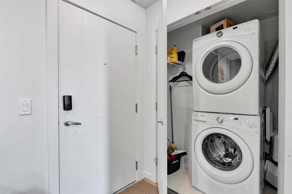 Discover exceptional comfort and modern style in this beautifully appointed two-bedroom plus den condominium, perfectly designed for contemporary living. Built with solid concrete and steel construction, this residence offers outstanding durability, sound insulation, and long-term value. The open-concept layout is bright and inviting, featuring wide-plank flooring, polished quartz countertops, and premium Fisher & Paykel appliances, including an induction cooktop, convection microwave, and built-in dishwasher. The thoughtful design extends throughout with in-suite laundry, a titled underground parking stall, and geothermal heating and cooling for year-round efficiency. The primary bedroom includes a spacious walk-in closet and a private ensuite, while the additional bedroom and den provide flexibility for guests or a home office. Ideally situated just steps from the C-Train, close to local shops, restaurants, Westhills, and a short commute to downtown, this home offers both convenience and lifestyle. Whether you’re a professional, downsizer, or investor, this residence combines quality construction, modern finishes, and an unbeatable location for effortless urban living