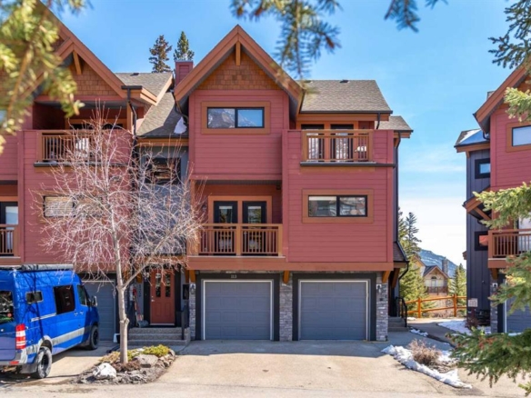 A thoughtfully designed and updated townhouse just steps to the Bow River, walking and biking trails, and all downtown amenities. The kitchen has been opened up to the main living space, offering all day light and views through the entire main floor. Hardwood floors and additional cabinetry bring convenience and comfort to this preferred location. Check out the fabulous south facing views to Three Sisters and Ha Ling. With visitor parking stalls right out the front door, your friends can pop right in to enjoy a coffee from the coffee station and it’s easy to load groceries right into the kitchen. The middle level features two bedrooms, full bath, and laundry in the most practical space. The walkout level provides additional storage, utility room, and covered carport, with access to storage for your gear right at the parking level. No more scraping your windshield in the morning! Lots of built in storage areas.A comfortable and cozy condo right on the valley floor with views galore!