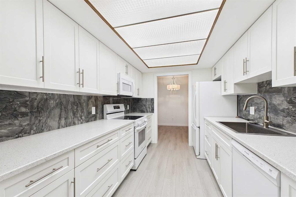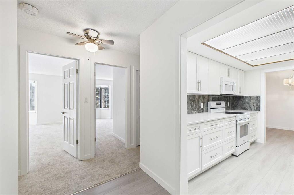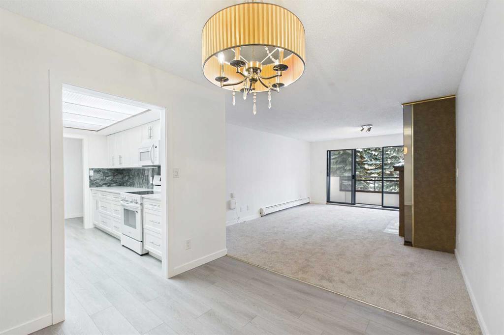 This beautifully renovated two-bedroom condo offers a perfect blend of modern comfort and serene surroundings, all set within a quiet, well-maintained community in the highly sought-after neighborhood of Varsity. From the moment you step inside, you’re welcomed by a bright, thoughtfully designed interior where every detail has been carefully considered to maximize both style and functionality. The open-concept living space is bathed in natural light, with large windows that frame peaceful views of a lush, treed inner courtyard. This tranquil backdrop creates a sense of privacy and calm, making it easy to unwind after a long day or enjoy a quiet morning coffee while taking in the greenery. The living and dining areas flow seamlessly together, offering a versatile layout ideal for both everyday living and entertaining guests. The fully renovated kitchen is a standout feature, showcasing sleek cabinetry, modern hardware, and quality finishes throughout. Ample counter space and updated appliances make it as practical as it is visually appealing, whether you’re preparing a quick meal or hosting a dinner with friends. Both bedrooms are generously sized and thoughtfully positioned to provide comfort and privacy. The primary bedroom offers a peaceful retreat with plenty of closet space, while the second bedroom is equally versatile—perfect for guests, or a home office. The updated bathroom reflects the same attention to detail, featuring contemporary fixtures and a clean, timeless design. Additional highlights include updated flooring, fresh paint in a neutral palette, and carefully selected lighting that enhances the overall ambiance of the home. Creating a move-in-ready space that feels both modern and inviting. Situated in the established community of Varsity, this home benefits from one of Calgary’s most desirable northwest locations. Known for its mature tree-lined streets, excellent schools, and strong sense of community, Varsity offers an exceptional lifestyle for a wide range of buyers. Residents enjoy easy access to the University of Calgary, Market Mall, Alberta Children’s Hospital, Foothills Medical Centre, and an abundance of parks, pathways, and recreational amenities. Transit options and major roadways are also close at hand, making commuting across the city simple and convenient. Set within a desirable (25+) adult only complex, this condo’s connection to the treed inner courtyard creates a peaceful, park-like setting right outside your window. Steps from a park and a walk to see some beautiful river and mountains views. Combining modern updates, a functional layout, and an unbeatable location, this residence is an outstanding opportunity for homeowners and investors alike.