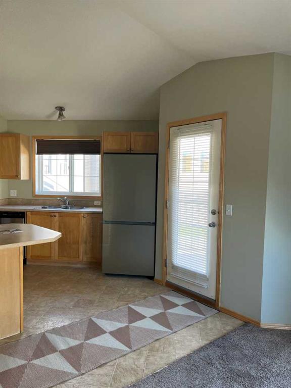 Step into comfort and convenience with this charming stacked townhouse condo, ideally located in the well-managed, PET-FRIENDLY (with condo board consent) Panatella Landing complex. This TOP FLOOR bright and spacious 1-bedroom plus large den CORNER UNIT offers enhanced privacy with NO ONE LIVING ABOVE YOU and features an open-concept layout with vaulted ceilings and large windows that fill the space with natural light. The inviting living and dining area flows seamlessly into the kitchen, which includes ample counter space, a pantry, stainless steel fridge and stove, built-in dishwasher, and a functional island with breakfast bar making it perfect for casual dining or entertaining. Stay cozy year-round with efficient in-floor heating, and enjoy peace of mind knowing the HEATING SYSTEM WAS REPLACED IN SEPTEMBER 2023. A unique bonus is the EXTRA STORAGE SPACE located above the stairs just off the living room is ideal for seasonal items or additional household storage. In addition to a large bedroom there is a spacious den with skylight offers flexibility as a home office, guest room, or second living area. A well-appointed 4-piece bathroom features in-suite laundry area with MORE STORAGE.