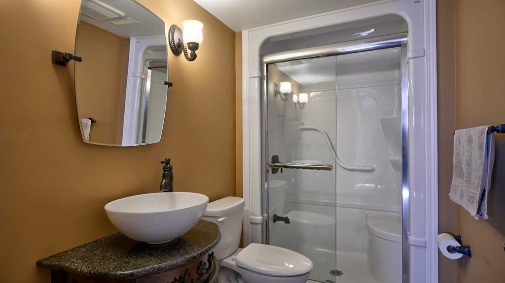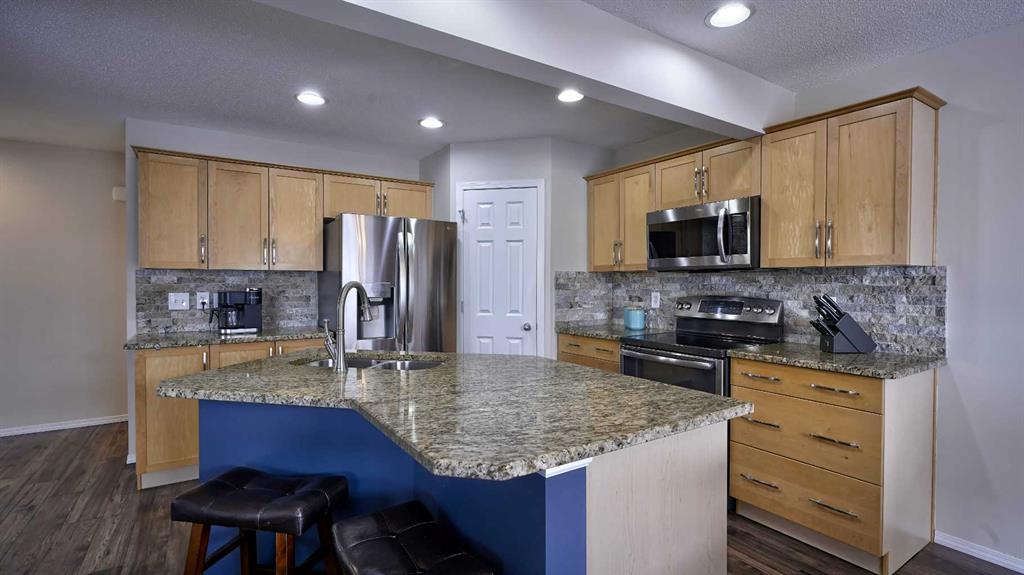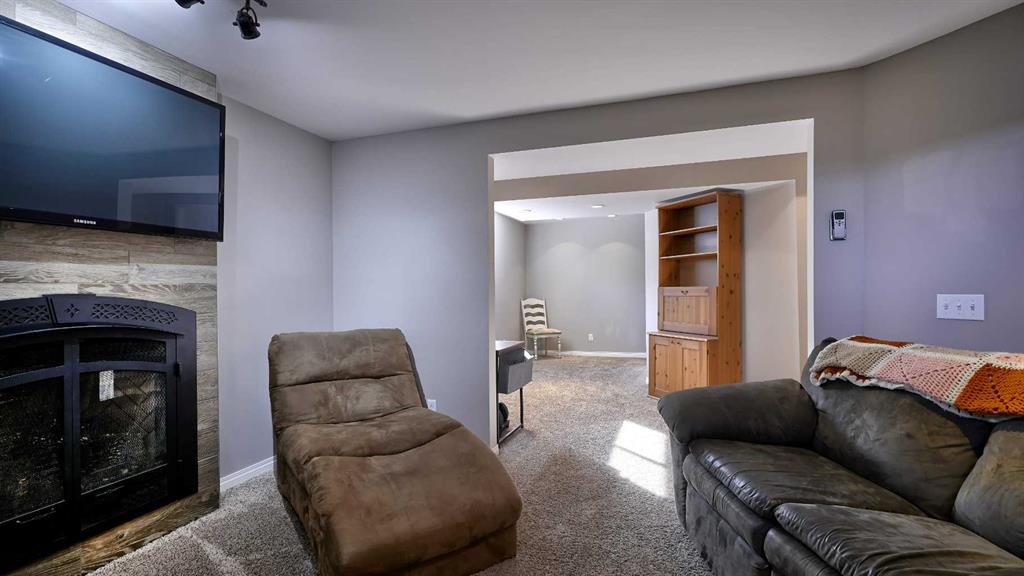 TWO HEATED GARAGES! Front garage (18.5×21.8) is insulated, & heated with electric furnace. Rear Detached garage (19.4×19.5) is gas heated! PLUS RV Parking Cement Pad in the back yard! Driveway in the front has extra width added, for more parking. Maintenance free yard, with artificial turf in the front yard. Back yard has stamped concrete patio, with an attached awning over it, plus a wooden walkway to the garage. Convenient gas line for your summer BBQ’s. Spacious kitchen has gleaming granite counters & newer stainless steel appliances & spacious corner pantry. Double wall oven, plus island is one one level for added counter space. Cozy living room w/ gas fireplace. Fully developed basement w/ a great rec room equipped w/ thermostat regulated Fireplace. 4th bedroom has large window for tons of natural light. Upstairs boasts more family space in the 10′ ceiling bonus room. 2 spare bedrooms have great space & tons of natural light. Master retreat has tons of space, plus massive walk in closet. 5 pce ensuite has soaker tub w/ separate stand up shower & double sinks. Convenient Laundry room is on the upper floor, w/ extra storage space. Utility room has a 2 year old furnace, oversized hot water tank which was recently serviced, plus loads of storage space. Equipped w/ Central air!