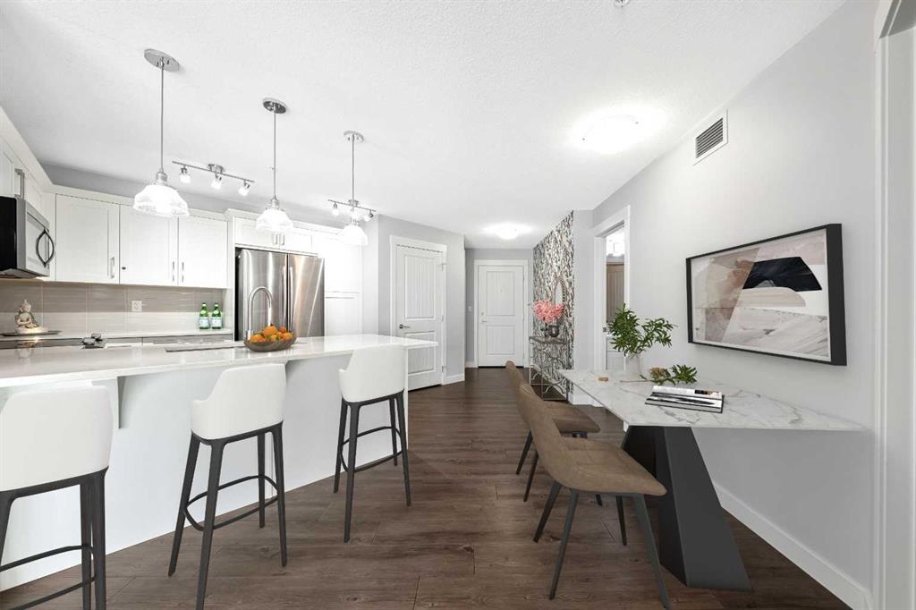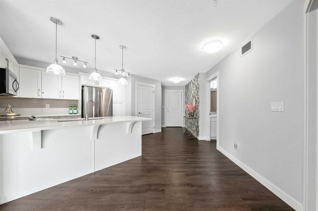 Welcome to Auburn Bay—one of Calgary’s most loved lake communities—where this beautifully maintained 2 bedroom, 1 bathroom condo truly stands out. This corner unit, steps from the elevator, offers 764 sq. ft. of well-designed living space and an ideal blend of comfort, convenience, and standout outdoor space. Freshly painted and professionally cleaned, it’s truly move-in ready. From the moment you step in, you’ll notice the care and upgrades throughout, starting with a chef-inspired kitchen featuring upgraded stainless-steel appliances, quartz countertops, an under-mount sink, and stylish cabinetry—perfect for everyday living and easy entertaining. The bright, open-concept living space flows seamlessly to what can only be described as a Massive 290 sq. ft. corner balcony—an incredible amount of covered outdoor space for morning coffee, summer BBQs, and relaxing evenings—with space that truly feels like an extension of your living area, and ideal for year-round outdoor enjoyment. Both bedrooms are generously sized, and the primary offers a walk-through closet into the main bath—smart layout, great function. You’ll also appreciate in-suite laundry, and 1 heated titled underground parking stall with a dedicated storage locker—because convenience matters. Best of all, this building is pet-friendly (with board approval) and you’re just steps to Auburn Station shopping—groceries, transit, restaurants, and everyday conveniences. Plus, as part of the Auburn Bay community, you’ll enjoy exclusive year-round lake access—whether it’s swimming in the summer, skating in the winter, paddleboarding, or simply relaxing at the beach. Quick access to Stoney and Deerfoot Trail completes the package—this is low-maintenance, lifestyle-focused living in one of Calgary’s most desirable lake communities, and an outstanding value for first-time buyers, professionals, downsizers, and investors.