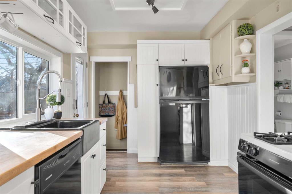 CUSTOM TIMBER-FRAME DOUBLE GARAGE AND A SUNNY SOUTH-FACING YARD IN THE HEART OF TUXEDO PARK! Just 10 minutes to downtown and close to every amenity, this beautifully updated bungalow blends warmth, style, and thoughtful improvements throughout. The bright, open main floor offers a welcoming front porch or mudroom, spacious living and dining areas, two comfortable bedrooms, and a fully renovated bathroom with a walk-in shower and high-end fixtures. The south-facing kitchen is stylish and functional with a gas stove, butcher-block counters, updated lighting, and excellent natural light. Upgrades include improved insulation, updated electrical, roof and shingles, eavestroughs, fresh interior paint, newer vinyl flooring, new bathroom subfloor and tile, and refreshed deck stain. Enjoy the fully fenced, private SOUTH-facing backyard with perennial beds and an apple tree, ideal for relaxing or entertaining. The 2008 custom timber-frame double garage is a true standout, featuring vaulted cedar ceilings, skylights, a stone accent wall, 220V power, and a high-end opener, perfect for a studio, workshop, or creative space. The unfinished basement is dry and warm with laundry, storage, and flexible workspace potential. Additional updates include a new hot water tank in 2024 and a new plumbing stack with backflow valve in 2025. A fantastic opportunity for professionals, couples, small families, or investors seeking an inner-city home with meaningful upgrades. Book your showing today!