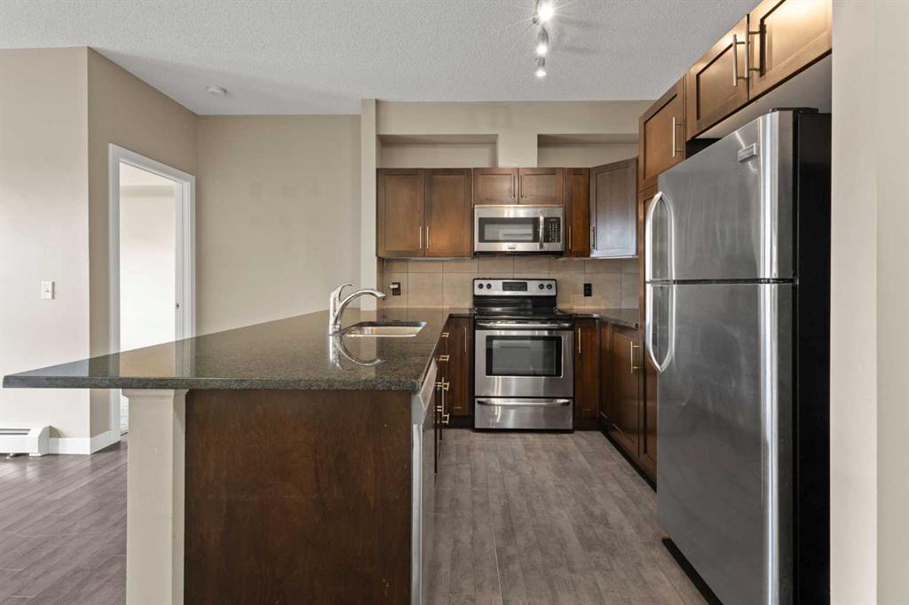 Discover the beautiful Milano complex in the sought-after NW community of Panorama Hills. This well-maintained unit offers over 750 sq ft of living space, featuring 2 bedrooms, 2 full bathrooms, and a secure underground parking stall. Step inside to an inviting open-concept layout highlighted by stylish laminate flooring. Large west-facing windows fill the space with natural light, creating a warm and welcoming atmosphere. The modern kitchen showcases dark wood cabinetry, granite countertops, a convenient island with breakfast bar, and stainless-steel appliances, perfect for both everyday living and entertaining. The spacious living room opens onto a private balcony, ideal for enjoying your morning coffee or unwinding in the evening. Both bedrooms are generously sized with large windows, including the primary suite, which features a walk-through closet with organizers and a 4-piece ensuite. A second full bathroom and in-suite laundry add to the home’s functionality and comfort. This unit also includes titled, secure underground parking and an assigned storage locker. Ideally located close to shopping, restaurants, schools, parks, playgrounds, and public transit, this home offers both convenience and lifestyle. Whether you’re looking for a place to call home or a smart investment opportunity, this property delivers. Book your private showing today!