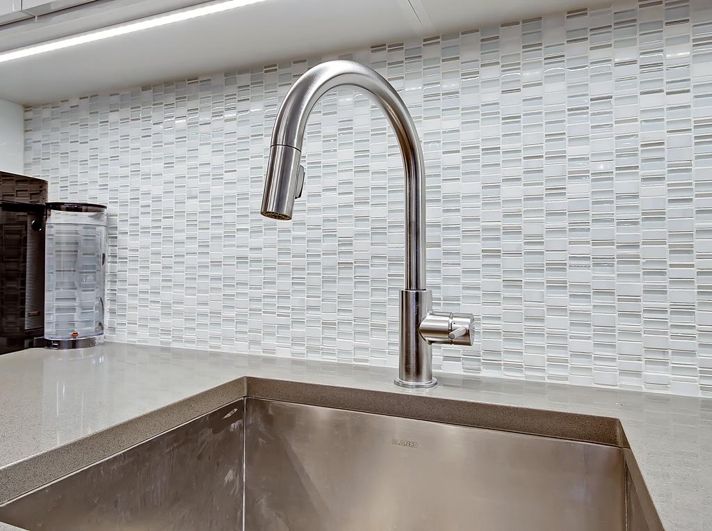This executive 2 bedroom, 1 bath condo has a very functional open plan concept and shows spectacular ! Loaded with upgrades including laminate flooring, gourmet kitchen is simply stunning with quartz counter tops, mosaic backsplash w/undermount lighting, gas stove, matching stainless appliances, soft-close glossy white cabinets, movable island & modern pantry. The living room is bright with access to a very private balcony perfect for barbequing and entertaining. Master bedroom is spacious with floor to ceiling wardrobe. 2nd bedroom is perfect for guest or office, lots of storage and there is also a full 4 pc bathroom. In-suite washer/dryer, underground parking & storage locker & a gorgeous common area ROOFTOP PATIO. This home is perfect for a professional, couple, or an investor and is PET FRIENDLY. Low condo fee INCL water, heat & more. Walking distance to shopping, transit, TITLED HEATED UNDERGROUND PARKING.