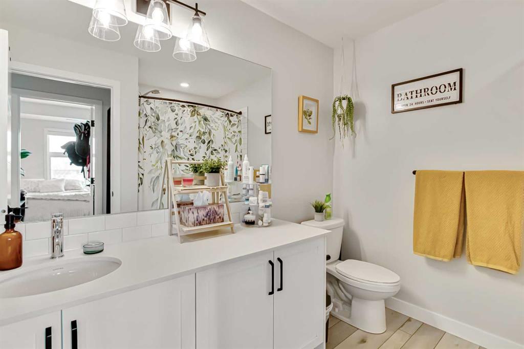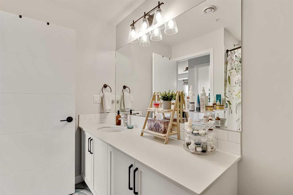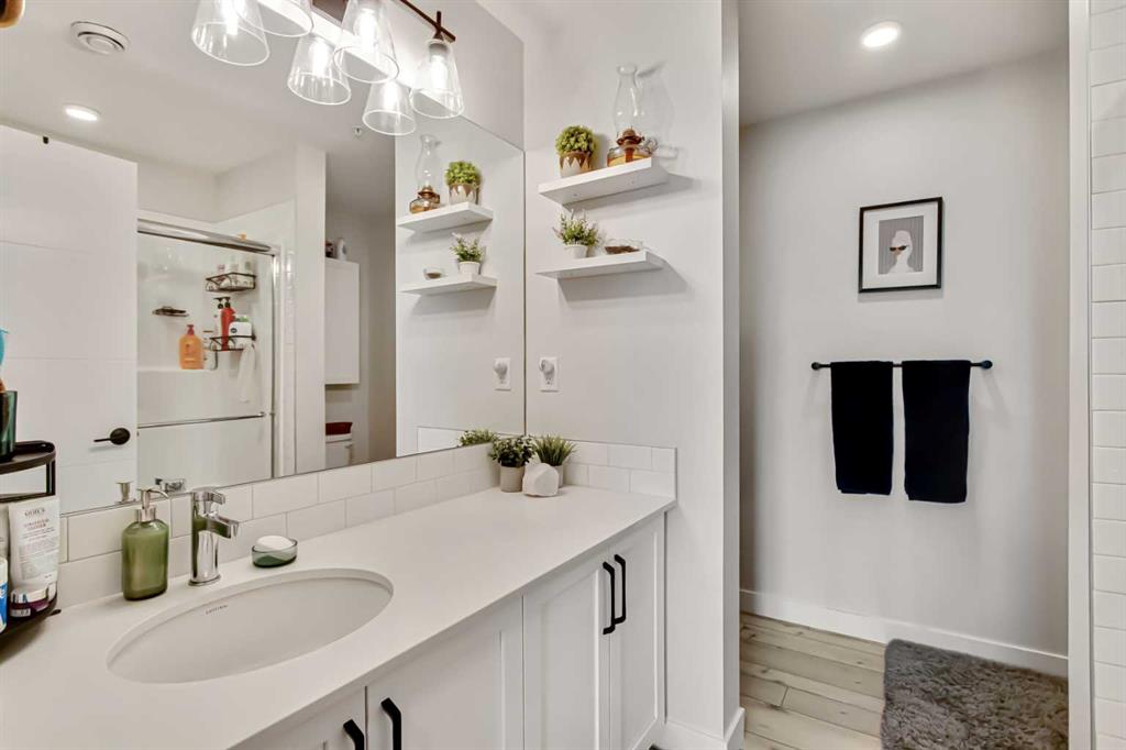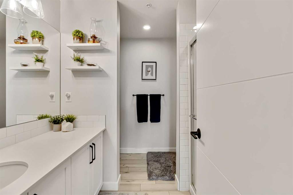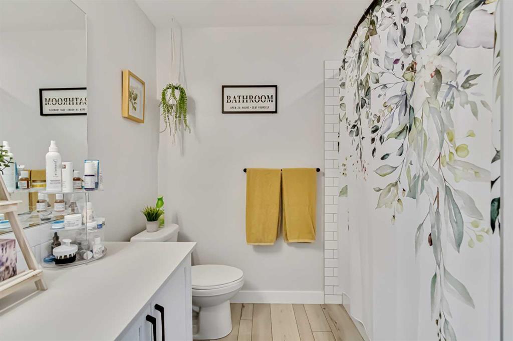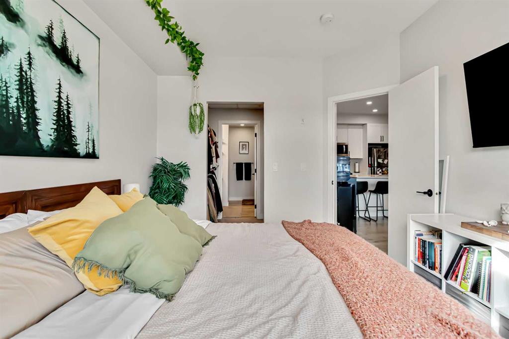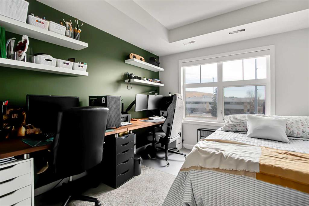 The primary bedroom offers a generous layout with a walk through closet leading into a sleek 3 piece ensuite. The second bedroom is versatile – ideal for guests, a home office, or both – while the main bathroom features a full tub and shower.