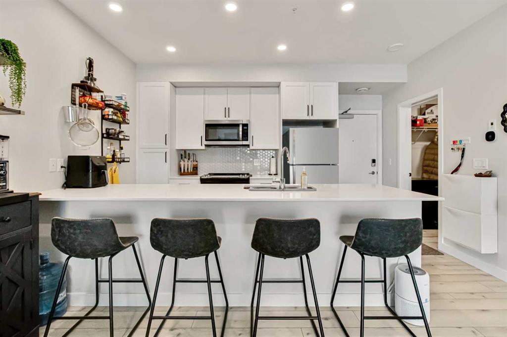 Welcome to this beautifully upgraded second floor unit in Les Jardins by Jayman BUILT, offering the perfect balance of comfort, style and convenience. This popular California split layout features a bright, open concept design with spacious living areas and thoughtfully curated finishes throughout.