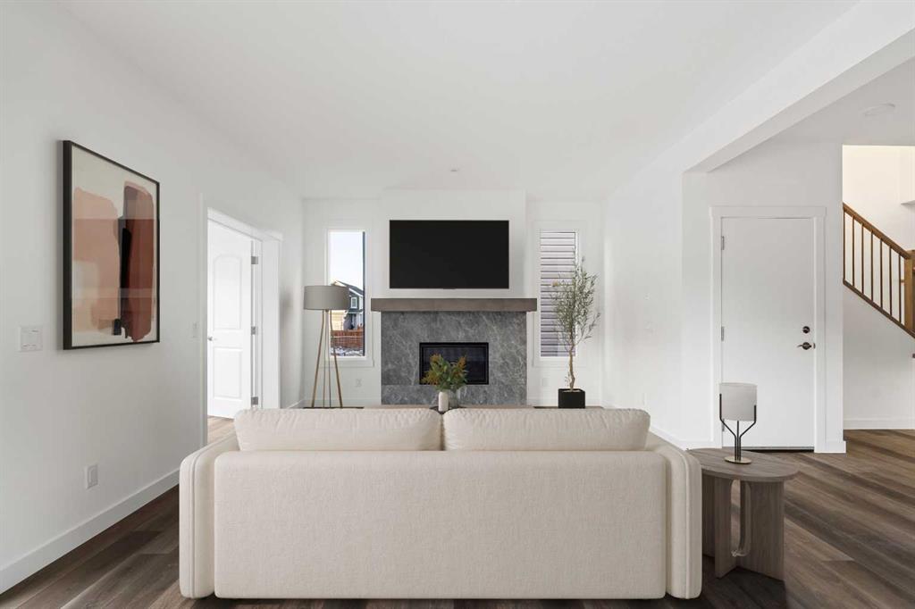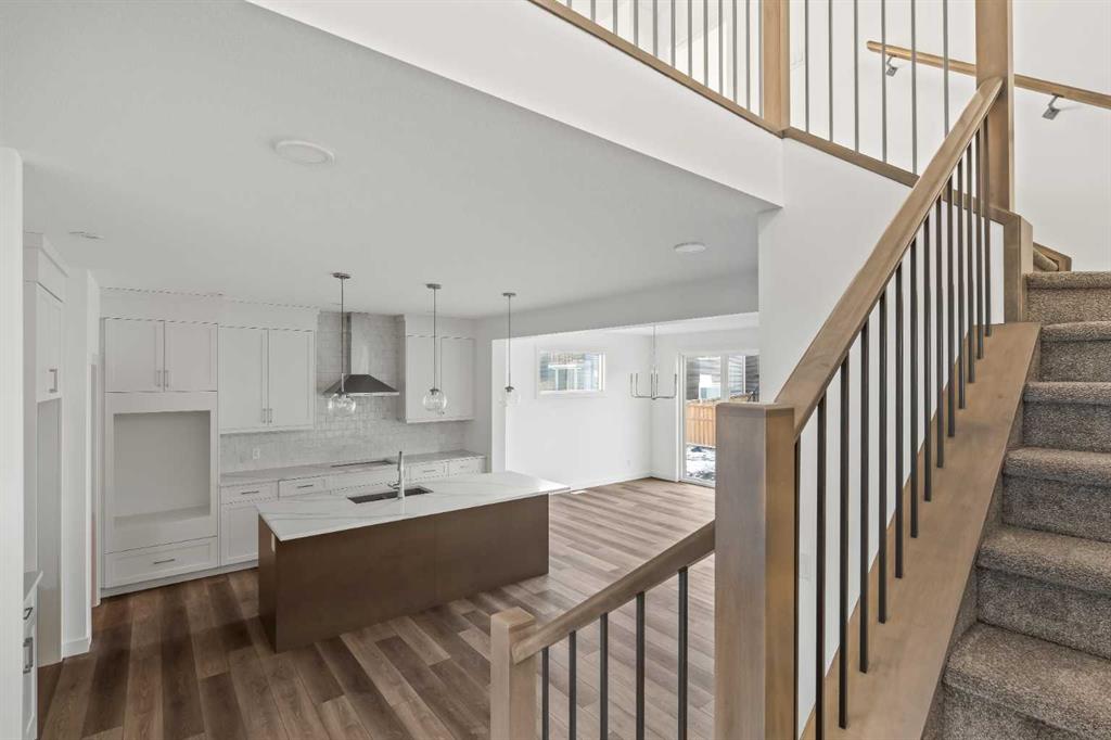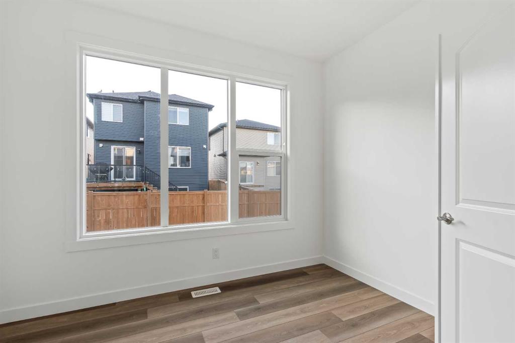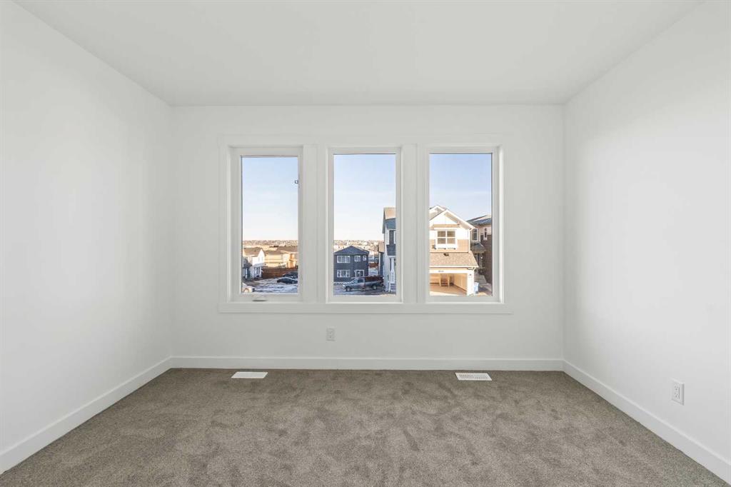 The Columbia 26 by Brookfield Residential is a stunning, brand-new home available for immediate possession, offering nearly 2,600 sq. ft. of beautifully developed living space above grade, plus an undeveloped basement with a private side entrance. With four bedrooms upstairs, multiple living areas, and a dedicated home office, this home is thoughtfully designed for growing families who need both function and flexibility. A spacious and welcoming foyer sets the tone as soon as you step inside, with clear sightlines that draw you through to the bright and open main living area at the rear of the home. Expansive windows line the back wall, filling the space with natural light throughout the day and creating an airy, uplifting atmosphere. At the heart of the home is a chef-inspired central kitchen that blends style and practicality. It features a large island perfect for gathering, a chimney-style hood fan, built-in wall oven and microwave, and a gas cooktop. An oversized pantry with a 2nd working kitchen connects directly to the mudroom for seamless grocery drop-off and everyday convenience. The kitchen flows effortlessly into the dining and living areas, making it an ideal layout for entertaining or spending time together as a family. Rich wood tones and a classic, timeless finish package carry throughout the home, offering both immediate appeal and lasting value. A private main floor flex room with double doors provides a quiet space for a home office or study. The cozy central gas fireplace enhances the living room, making winter evenings feel extra inviting. The main level is rounded out with three separate closets, a generous mudroom, and a convenient two-piece powder room. Upstairs, a central bonus room creates a smart separation between the primary suite and the other bedrooms, giving everyone their own sense of space. The primary bedroom overlooks the backyard and features a spacious ensuite complete with dual sinks, a walk-in shower, a relaxing soaker tub, and an oversized walk-in closet. Three additional well-sized bedrooms offer a mix of walk-in and double closets and are perfect for children or guests. A full bath and dedicated laundry room add everyday ease to the upper floor. The basement remains undeveloped and full of potential, with rough-ins already in place and a private side entrance – ideal for future customization. Situated in the vibrant new community of Starling/Moraine, this home comes with Alberta New Home Warranty along with the builder’s warranty, giving you confidence and peace of mind when purchasing this exceptional new home.