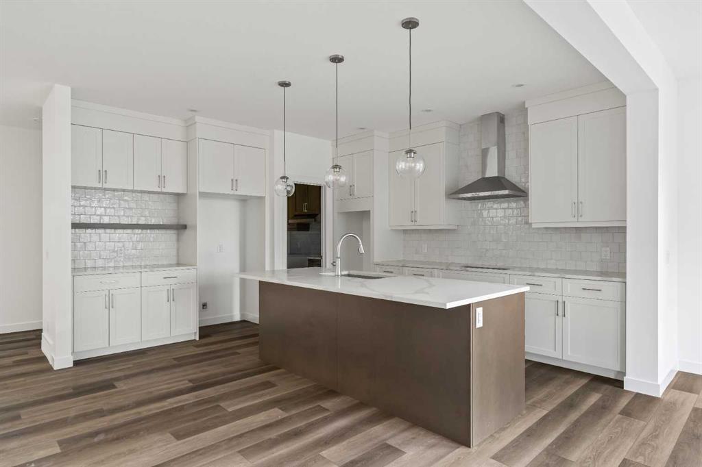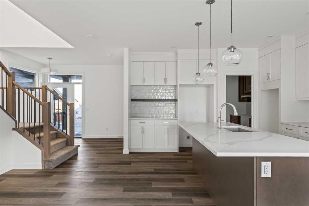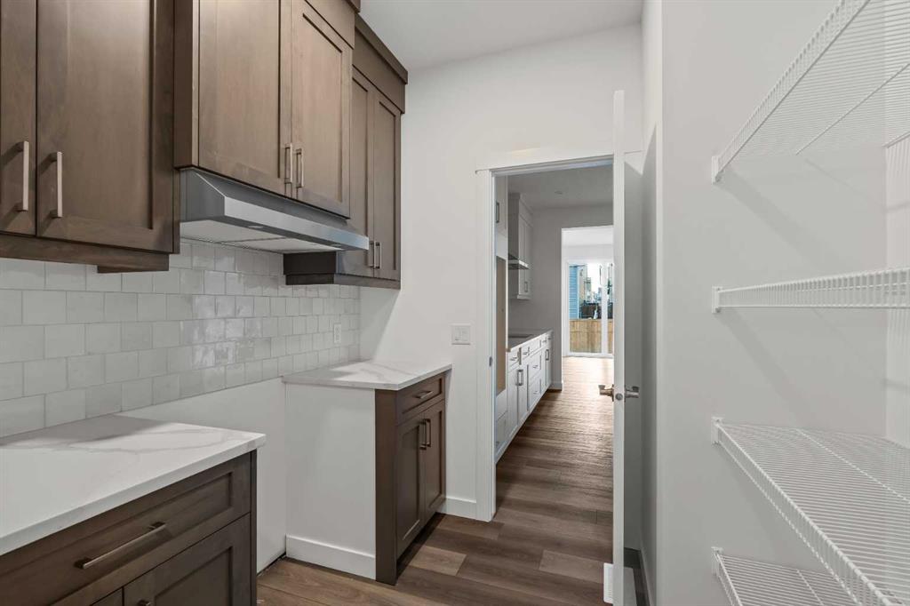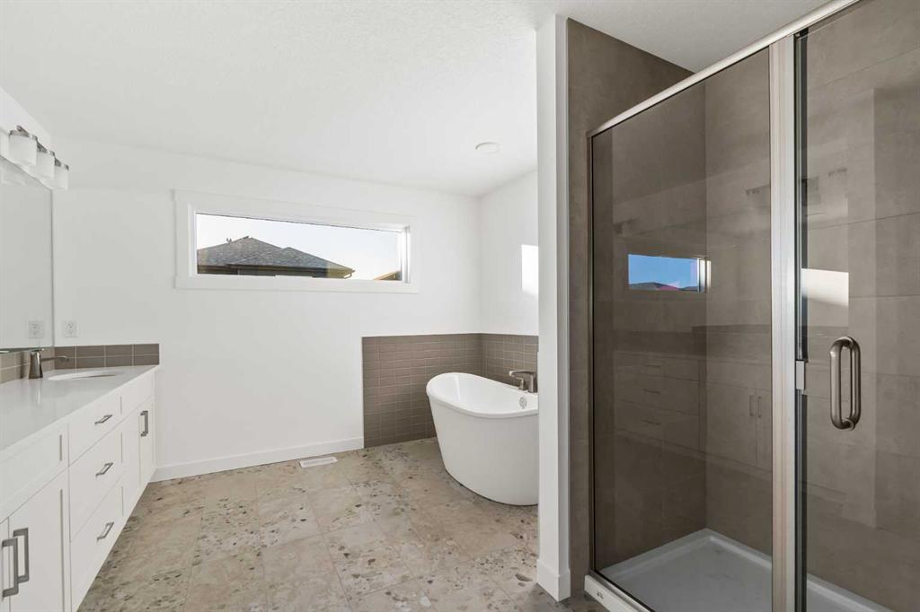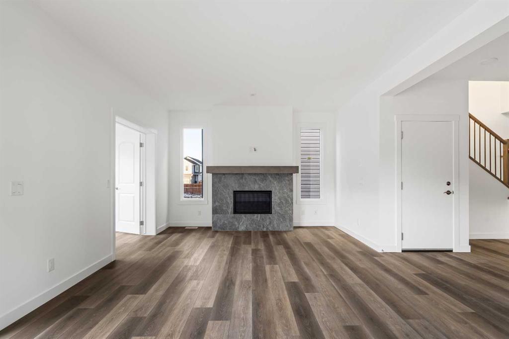 The Columbia 26 by Brookfield Residential is a stunning, brand-new home available for immediate possession, offering nearly 2,600 sq. ft. of beautifully developed living space above grade, plus an undeveloped basement with a private side entrance. With four bedrooms upstairs, multiple living areas, and a dedicated home office, this home is thoughtfully designed for growing families who need both function and flexibility. A spacious and welcoming foyer sets the tone as soon as you step inside, with clear sightlines that draw you through to the bright and open main living area at the rear of the home. Expansive windows line the back wall, filling the space with natural light throughout the day and creating an airy, uplifting atmosphere. At the heart of the home is a chef-inspired central kitchen that blends style and practicality. It features a large island perfect for gathering, a chimney-style hood fan, built-in wall oven and microwave, and a gas cooktop. An oversized pantry with a 2nd working kitchen connects directly to the mudroom for seamless grocery drop-off and everyday convenience. The kitchen flows effortlessly into the dining and living areas, making it an ideal layout for entertaining or spending time together as a family. Rich wood tones and a classic, timeless finish package carry throughout the home, offering both immediate appeal and lasting value. A private main floor flex room with double doors provides a quiet space for a home office or study. The cozy central gas fireplace enhances the living room, making winter evenings feel extra inviting. The main level is rounded out with three separate closets, a generous mudroom, and a convenient two-piece powder room. Upstairs, a central bonus room creates a smart separation between the primary suite and the other bedrooms, giving everyone their own sense of space. The primary bedroom overlooks the backyard and features a spacious ensuite complete with dual sinks, a walk-in shower, a relaxing soaker tub, and an oversized walk-in closet. Three additional well-sized bedrooms offer a mix of walk-in and double closets and are perfect for children or guests. A full bath and dedicated laundry room add everyday ease to the upper floor. The basement remains undeveloped and full of potential, with rough-ins already in place and a private side entrance – ideal for future customization. Situated in the vibrant new community of Starling/Moraine, this home comes with Alberta New Home Warranty along with the builder’s warranty, giving you confidence and peace of mind when purchasing this exceptional new home.