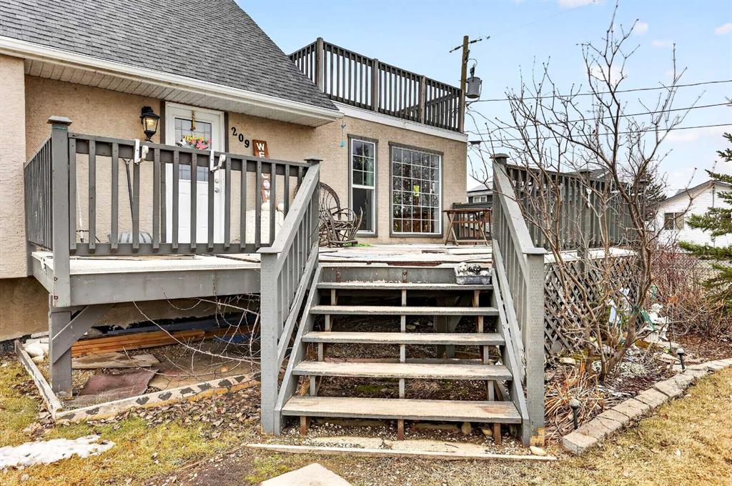 So much opportunity in this charming 5 bedroom home with good bones situated on an impressive .28 acres in desirable Langdon. Built in 1947 this home is ready for your design ideas and a little sweat equity to create your unique character dream home or maybe a house flip. The main floor is open and bright with a generous living room room & dining area that are open to the kitchen. There are 2 bedrooms located on this level including a nice sized primary with a walk -in closet. Both rooms have large windows for an abundance of natural light and they share the main bathroom. Upstairs you’ll find two more bedrooms. The sloped ceilings in these rooms are so charming making these rooms feel cozy and full of potential. There is hardwood flooring throughout this level and each bedroom has its own closet. You can access the huge upper deck from here. This is the perfect blank canvas to create a dreamy outdoor oasis where you can enjoy your peaceful surroundings. There is still more room in the finished basement where you’ll find a 5th bedroom, 3 pc ensuite bath, spacious recreation area and plenty of storage. This home is on a well so you won’t need to worry about paying for a monthly water bill. The shingles are 2 years old and there are newer appliances in the kitchen. This prime property offers endless opportunities for development – build your dream garage or shop, park your RV and other toys. You’ll also enjoy a large front deck, a second one off the back of the home and the shed is included. Don’t miss the opportunity to build equity and turn your vision into a reality with this great property.