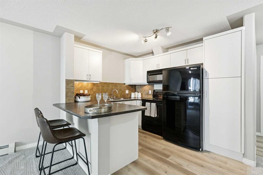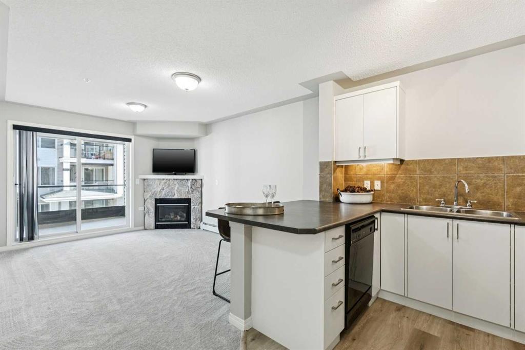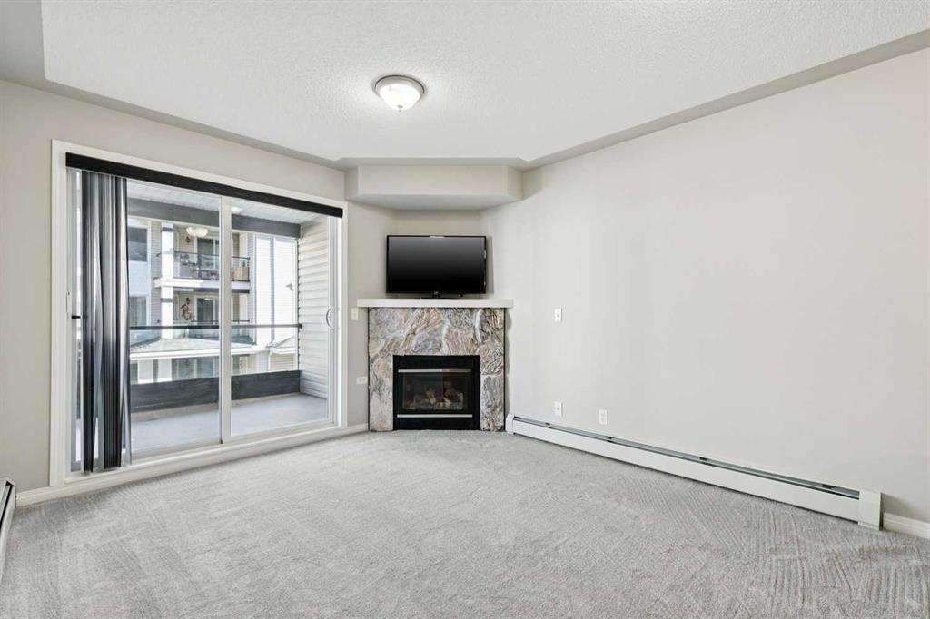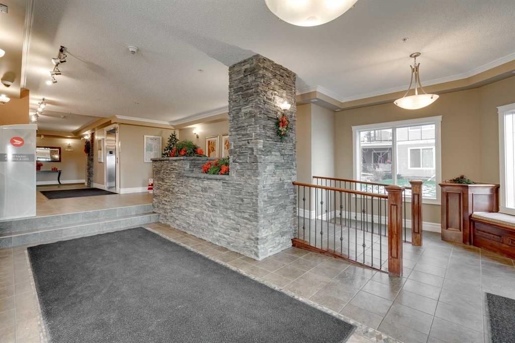 IMMACULATE, FRESHLY RENOVATED 1 BED+DEN, 1 BATH UNIT WITH TITLED, HEATED UNDERGROUND PARKING IN THE DESIRABLE COMMUNITY OF ROCKY RIDGE! This apartment boasts freshly painted walls, bright oversized windows & new carpet + luxury vinyl plank flooring. The kitchen features new white custom cabinetry with ample storage space, cabinet pantry, a peninsula breakfast bar & black appliances, opening onto the living room with gorgeous stone clad gas fireplace & sliding glass doors onto the spacious balcony with an extra 4’5” x 3’4” storage area. The king size bedroom is sunny with a good-sized closet. 4-piece bathroom with luxurious tub & extra storage space. The den features a beautiful French door & the laundry room exists in unit for your convenience. The parking stall is only 2 spaces away from the elevator doors for ease of travel to your suite. Other amenities in the complex include a fitness room, party/games room, salon & dining room. Walking distance to walking paths, parks, playgrounds, schools, coffee shops, restaurants, health services, gas station, grocery store, veterinary clinics & The Tuscany LRT station not to mention minutes from the Shane Homes YMCA at Rocky Ridge, Costco, Bearspaw Golf Course, Bowness Park, Nosehill Park, Macleod Trail, Stoney Trail, Country Hills Blvd & only 30 minutes to the mountains!