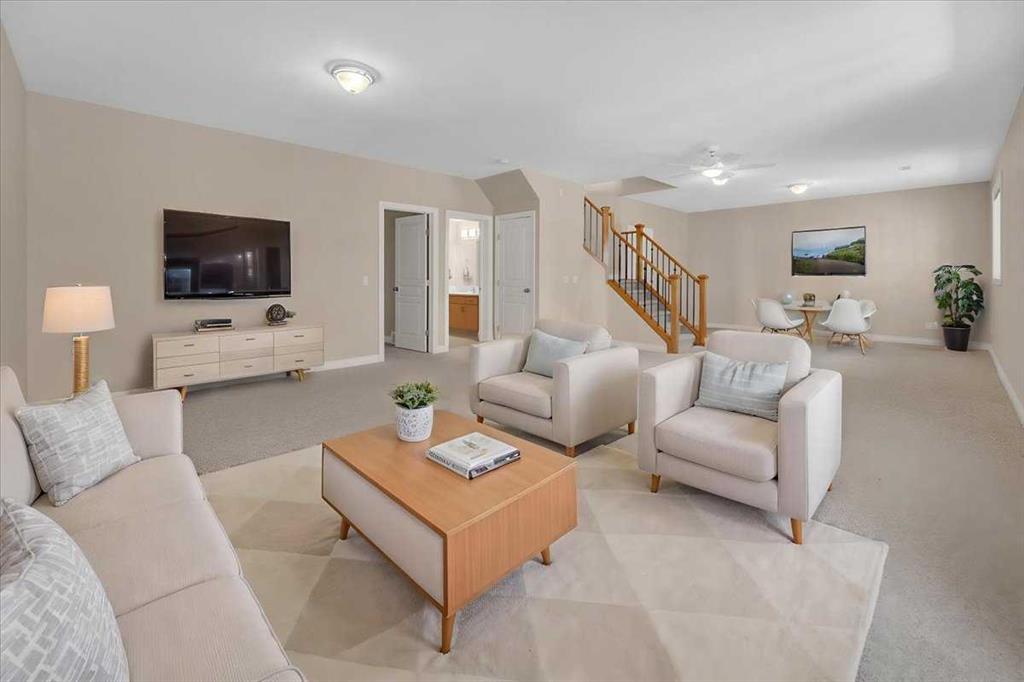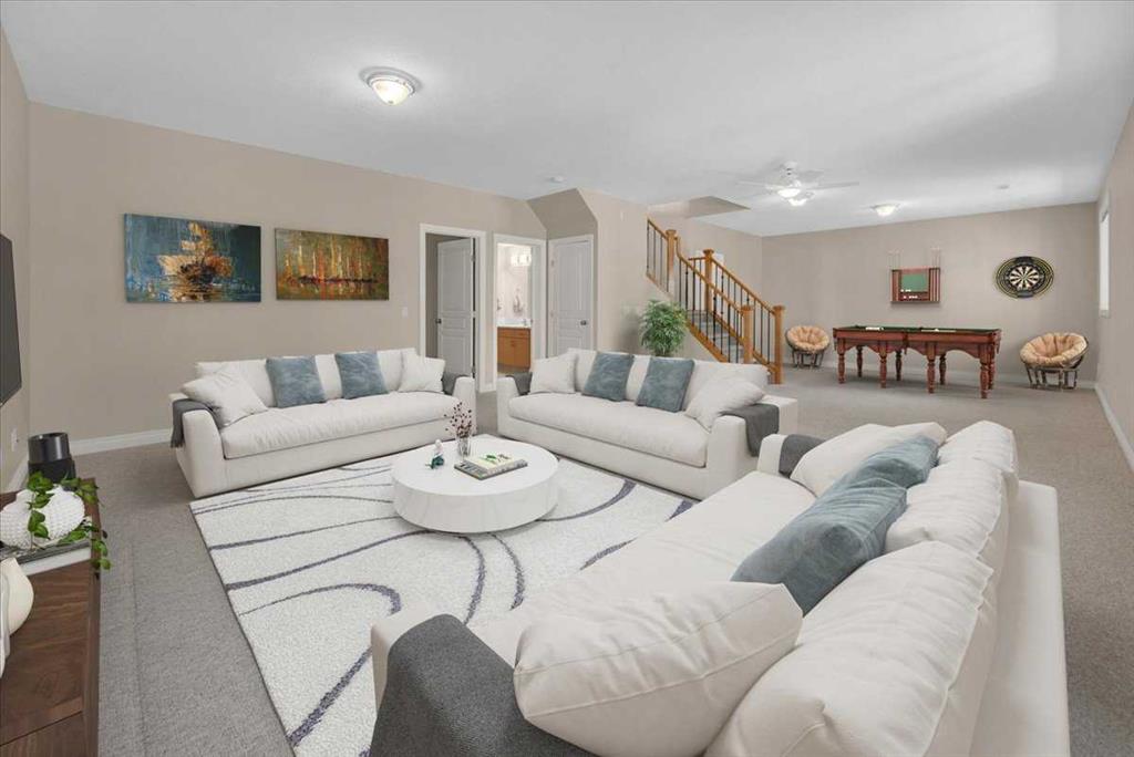 Welcome home! This well maintained 2 car garage bungalow is ready for its next owners. Located in the desirable community of Tucker Hill, this home won’t last long. Entering the home, you’ll find the deep foyer, with lots of room for a boot rack and space to welcome guests. To the right, you’ll find the first bedroom, which would function great as a naturally lit office. Across from the bedroom is the garage access, complete with a work bench and storage solutions! Further into the home, the open living room and kitchen welcomes you to relax or host. The living room comes complete with a gas fireplace, and media connections on top of the mantle. To the right of the living room, the dining room is set beside a massive window to bring in all the natural light you might need. Towards the back is the huge South West balcony, complete with a natural gas BBQ hook up. The kitchen is well laid out, clean, and provides dedicated space for a coffee bar, and space to work on either side of the electric cook top. The kitchen also hosts a dedicated pantry, and wall oven. Heading down the hallway, you’ll find the main 4 piece bathroom, with the stacked washer and dryer located behind the linen closet door. The primary bedroom provides enough space for a king sized bed, and night stands on either side, it also comes complete with a Walk In Closet, and a 4 Piece Ensuite. Downstairs, the recreation room is ready for however you want to set it up, it has enough space for a pool table on one side, and a dry bar on the other. You can set it up however you like, the possibilities are limitless. You’ll also find another 4 piece bathroom, and the 3rd bedroom, which comes with another Walk In Closet. There is also plenty of storage both under the stairs, and in the utility room. Complete with Air Conditioning and a gas fireplace, this home is ready for whatever season mother nature decides to throw at us next week.