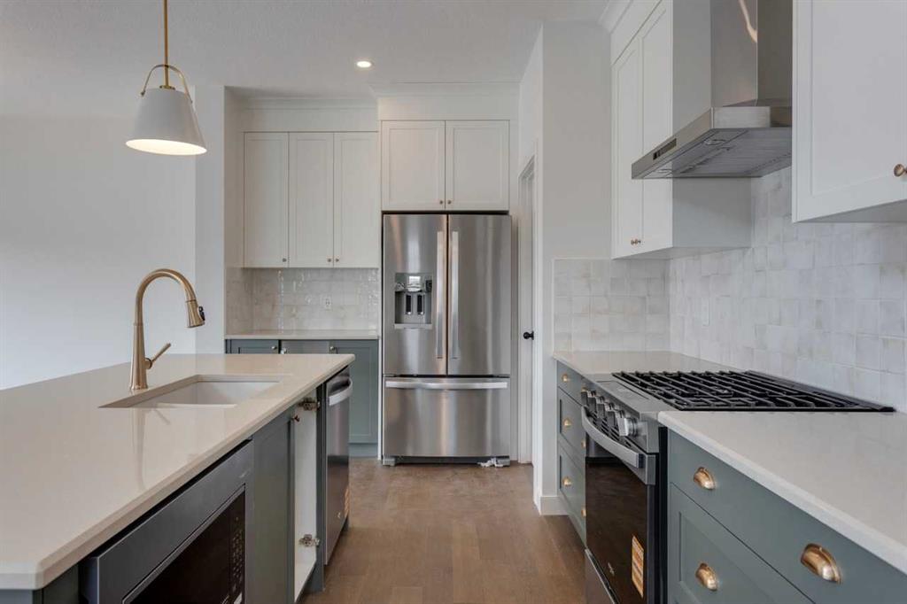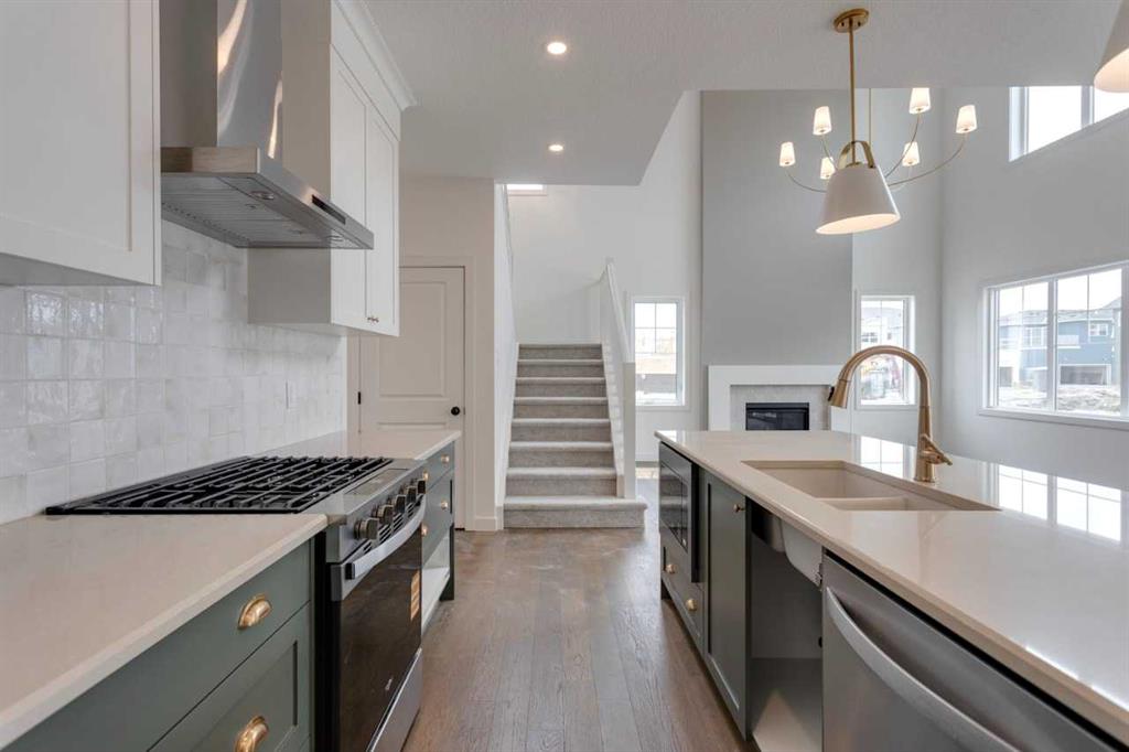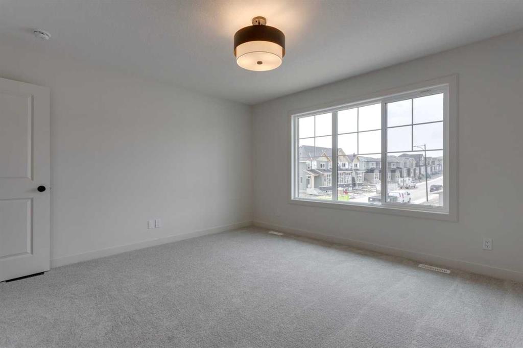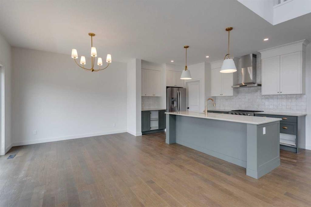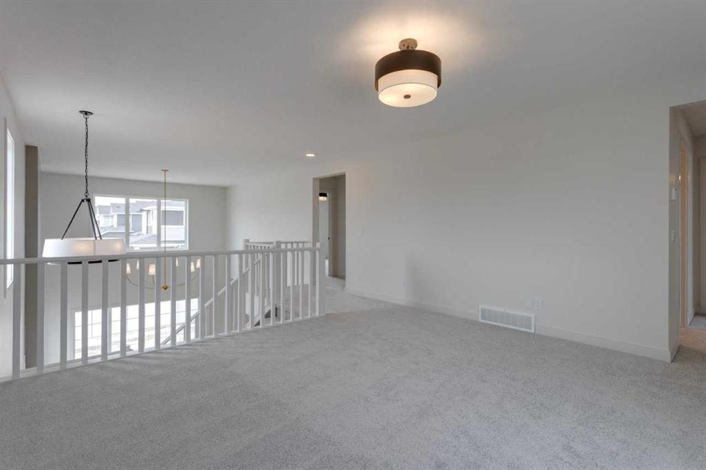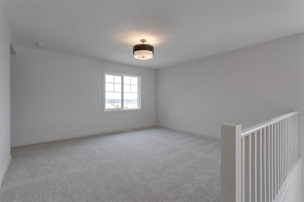 The Harmony by Calbridge Homes offers 2,241 sq ft of living space with 3 bedrooms and 2.5 bathrooms. The main floor includes a kitchen with quartz countertops, large island, and stainless steel appliances, opening to a dining area and great room. A front lifestyle room provides additional living space. The upper level features a primary bedroom with walk-in closet and 5-piece ensuite, two additional bedrooms, a full bathroom, bonus room, and laundry. Located in Bayview, close to canals, parks, and over 100 km of pathways.
