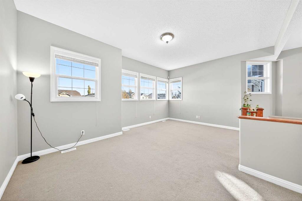 On the upper level, the east-facing Bonus room with 9’10” ceilings offers generous space for family movie nights, hobbies, or gatherings. The large Primary suite features a walk-in closet and a 5-piece spa-inspired ensuite with granite countertops, double vanity, soaker tub, and oversized standing shower. Two additional bedrooms, each with walk-in closets, share a 4-piece bath, with upper-level Laundry adding everyday convenience.