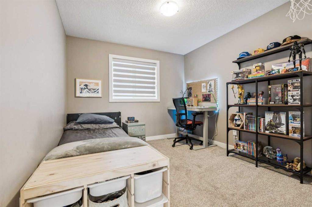The fully finished basement adds a fourth bedroom with built-in shelving, a dedicated office, and additional built-in storage. The 21’ x 21’ garage fits a full-size truck or SUV and includes shelving, tire racks, peg boards, and bike hooks.
