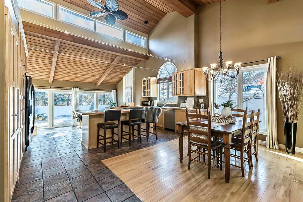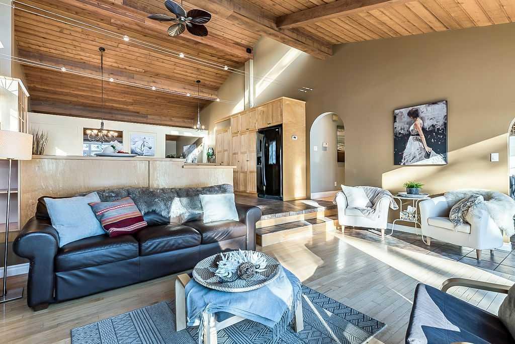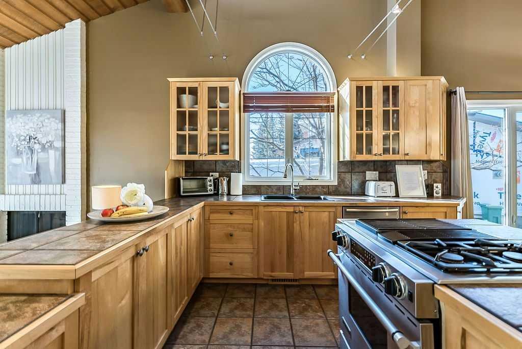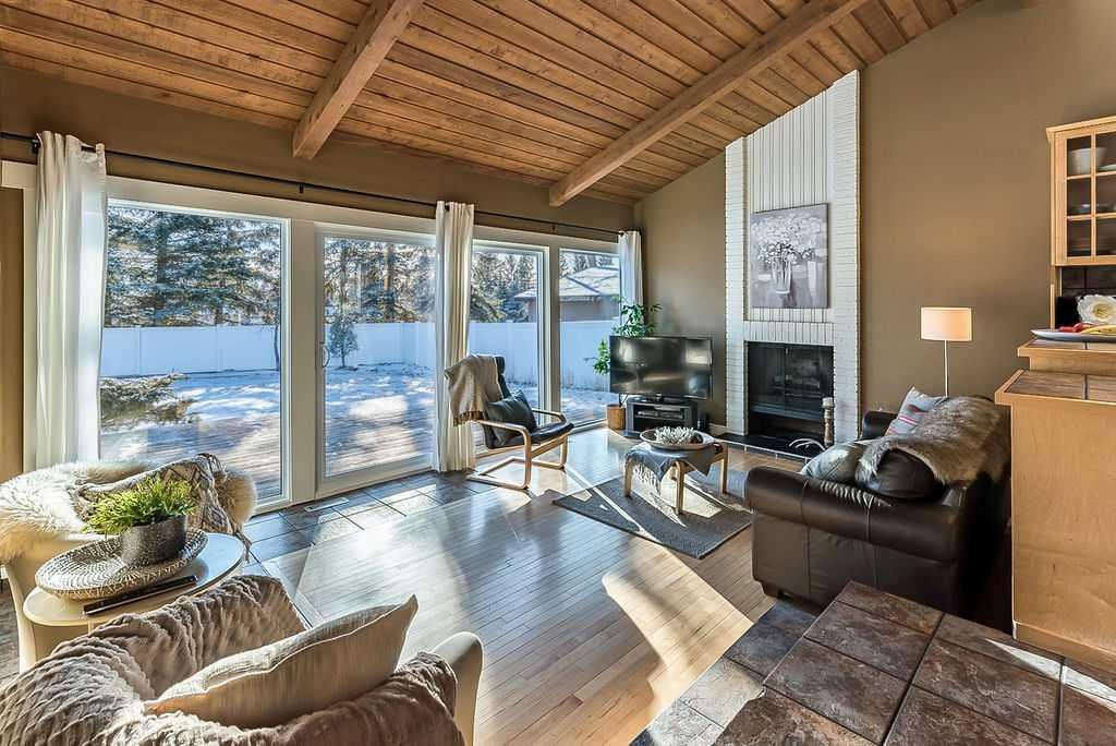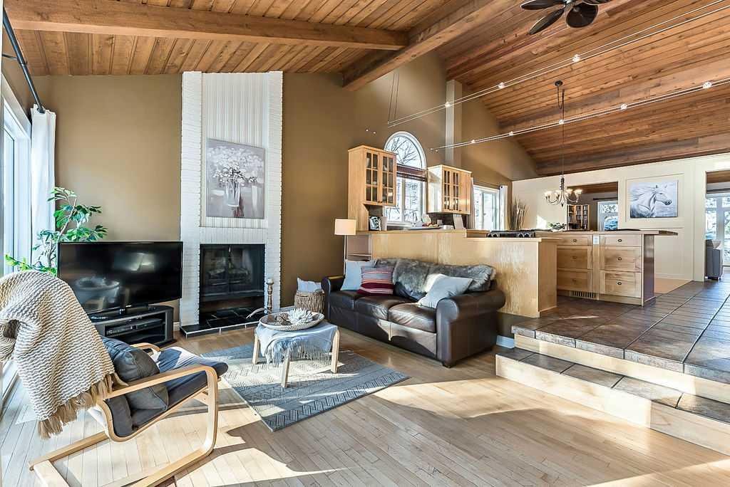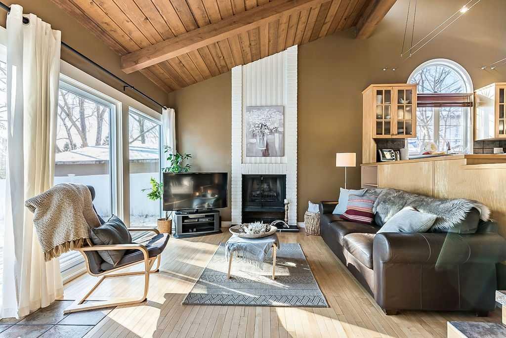 ** Open House Sat 1-3 ** AMAZING 1550SQ.FT. BUNGALOW with soaring VAULTED CEILING in beautiful Suntree, across from fountain/pond on a huge NEARLY QUARTER ACRE LOT! Numerous updates over the years, including new windows (2018), new furnace (2018), new hot water tank and water softener (2018), new shingles (2016), ensuite bathroom (2012), and kitchen & flooring (2004-2012). OPEN CONCEPT floor plan features large kitchen with maple cabinetry & island, dining room, den with large windows looking over community pond, and sunken family room with wood-burning fireplace overlooking back yard with sliding doors to patio. This level also offers primary bedroom with beautiful ensuite bathroom, two more bedrooms and large bathroom. LOWER level has a full bathroom but is otherwise unfinished with plenty of room for a fourth bedroom, rec room and storage area. Large attached double garage and a stunning HUGE south yard complete this home. If you love the charm of older neighbourhoods, want the privacy of a large lot, and seeking a bungalow with amazing sunlight & open concept plan, then you will fall in love with this one.