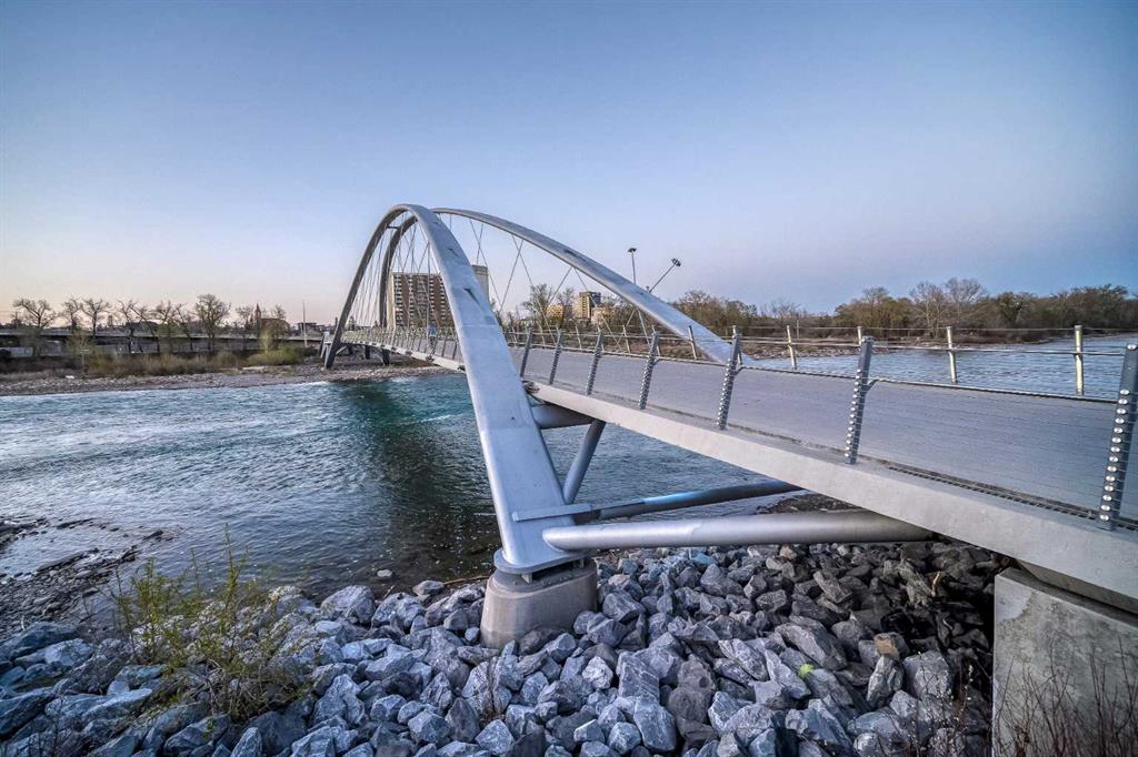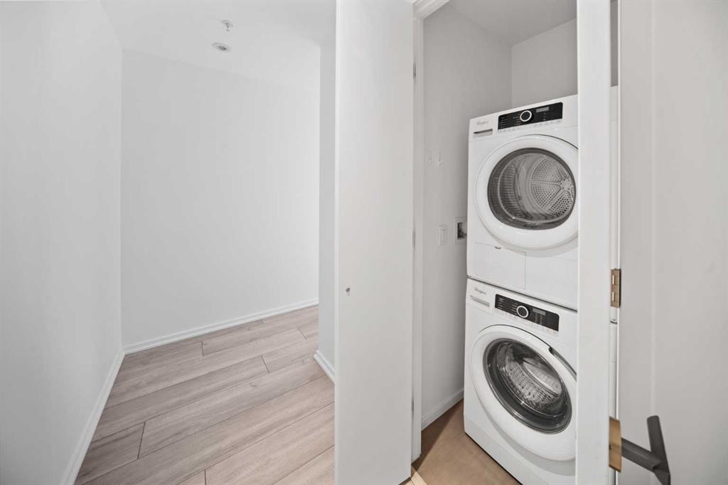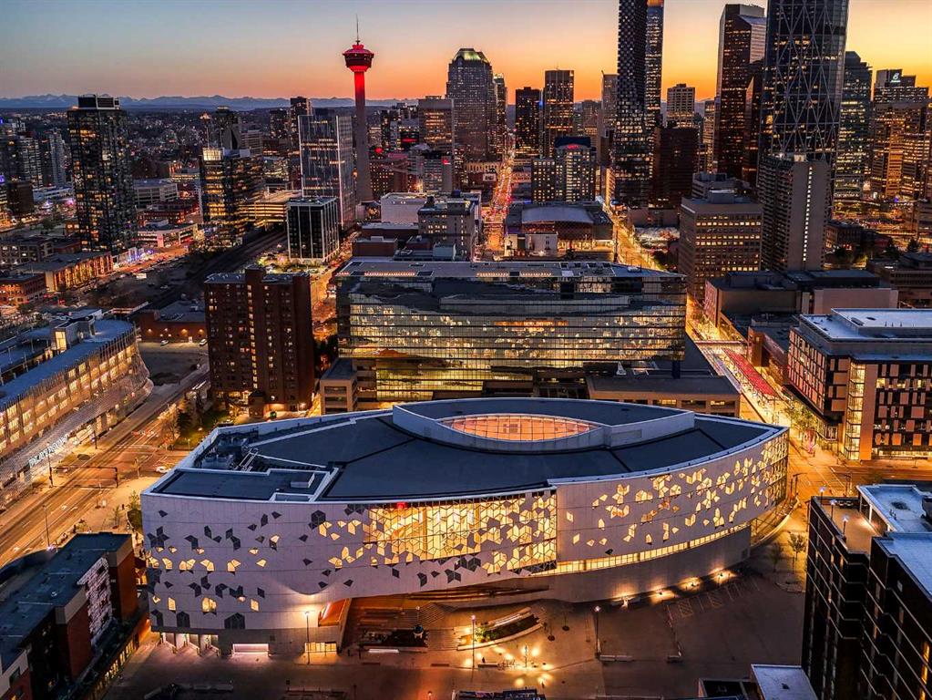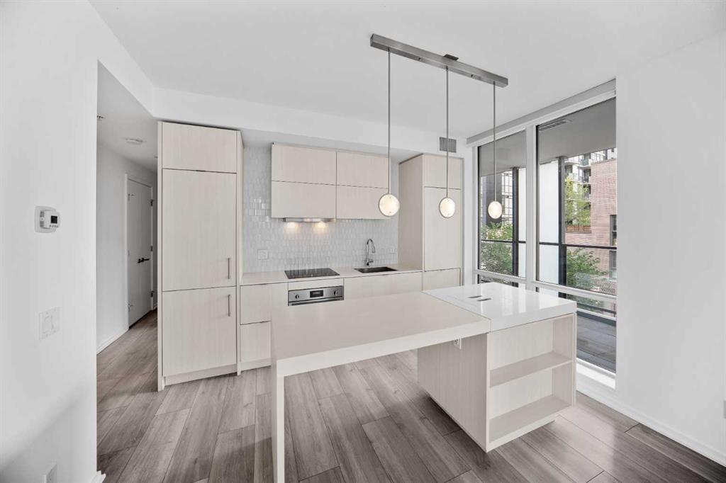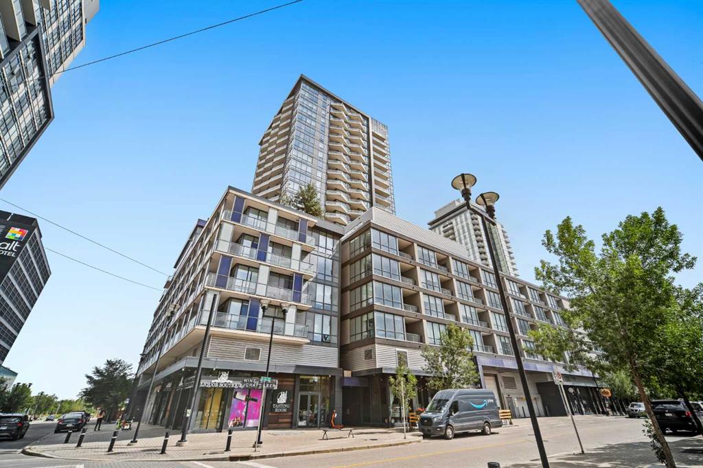 PRICE REDUCED!! STUNNING 2-BEDROOM, 2-BATHROOM LUXURY CORNER UNIT FEATURING A RARE 319 SQ. FT. WRAP-AROUND BALCONY! in Calgary’s vibrant East Village. Floor-to-ceiling windows fill this home with natural light, in this open-concept space that is one the best layouts in this modern full amenity building. Boasting quartz countertops, integrated custom-panel appliances, and in-suite laundry. The spacious living and dining area are perfect for entertaining with direct access to the one of a kind huge balcony fitted with a natural gas link…the perfect mix of indoor/outdoor living. The large windows continue into the primary suit which offers a full ensuite with a glass enclosed walk in shower. The second bedroom is also a good size that is perfect for guests or a home office allowing you to still feel part of the trendy action of the East Village. Another full bathroom, and large entryway complete this home. Enjoy premium building amenities including concierge, security, an owners’ lounge, fitness center, 360° observation decks, and an elegant entertainment room. Steps from dining, shopping, and recreation, this condo includes There is even a titled underground secured parking stall and a storage locker, plus the home has been freshly painted! The perfect blend of luxury, comfort, and convenience all in one of Calgary most desirable communities!
