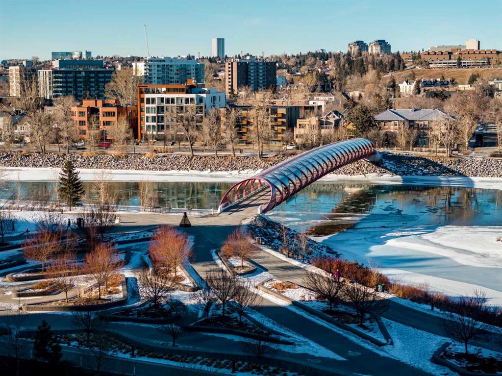 Welcome to Unit 210 at First & Park — in Calgary’s highly sought-after Eau Claire community, where the city meets the river. This contemporary 2 bedroom, 2 bathroom home blends modern design with everyday functionality, offering exceptional value in one of downtown’s most desirable buildings. The open-concept layout showcases a sleek kitchen with quartz countertops, stainless steel appliances, and ample cabinetry, seamlessly flowing into a bright living area that extends to your large balcony overlooking the Peace Bridge and the River – the perfect place to enjoy morning light or unwind after work.The spacious bedroom, full bathroom, and in-suite laundry provide comfort and convenience, while the titled parking stall adds everyday practicality. Residents enjoy premium amenities including a fully equipped fitness centre, stylish party lounge, an outdoor patio and gas BBQ hookups, secure parcel lockers, two elevators, and concierge service seven days a week — all within a quiet, boutique-style building. Located just steps from the Bow River pathways, Prince’s Island Park, Eau Claire Market, and downtown’s top restaurants, cafés, and shops, this home offers the perfect balance of lifestyle and location. Whether you’re a first-time buyer, investor, or searching for a refined downtown residence – this home checks every box for sophisticated inner-city living. Book your showing today!
