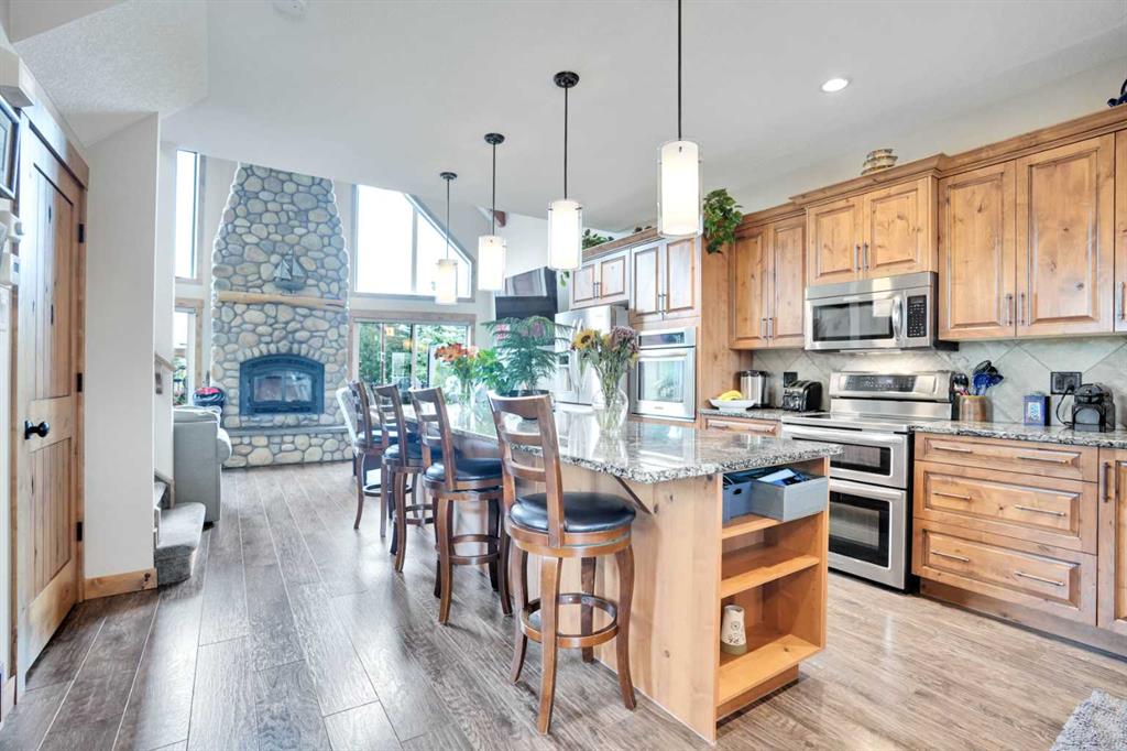 Welcome to 210 Cottage Club Crescent – Your Year-Round turnkey Retreat Near the Rockies Nestled in the serene, gated community of Cottage Club, just 30 minutes west of Calgary and 45 minutes from Canmore, this charming property offers the perfect balance of relaxation and recreation. Whether you’re looking for a weekend getaway, summer retreat, or full-time residence, this home delivers lake side living at its finest. This beautifully designed spacious, stylish and move-in ready cottage features over 1,200sq ft of developed living space, plus a heated, insulated double detached garage with bonus dedicated guest space. Inside, you’re welcomed by a bright, open floor plan with vaulted ceilings, floor-to-ceiling windows, and a stunning rock-surround wood-burning fireplace that anchors the main living area. The sunny chef’s kitchen is the heart of the home—showcasing mountain views, stainless steel appliances, granite countertops, knotty alder cabinetry, a built-in oven, a second oven, and a generous island, ideal for all your culinary and entertaining needs. Notable upgrades include H.E.R.O osmosis system for refrigerator water dispenser and ice machine, Fantech- HRV (heat recovery ventilator), Starlink with router. A cozy living room off the kitchen offers the perfect space to unwind, while the main floor is completed by a 3-piece powder room, a walk-in front closet providing additional storage. The upper level is dedicated to the furnished spacious primary suite, complete with a 4-piece ensuite, large closets, and a flex space for a home office or reading nook—all overlooking the majestic Rocky Mountains. The furnished basement includes a family room, potential for a second bedroom, and a utility/storage area with a washer, dryer, and water softener. Above the double garage, you’ll find a beautiful private furnished guest suite with a 2-piece bathroom offering extra living space for visitors or hobbies. Enjoy your morning coffee on the covered front porch or entertain friends and family on the expansive private back deck. The beautifully landscaped outdoor living space enhances the peaceful, private yard. As a resident of Cottage Club, you’ll enjoy access to a vibrant recreation center featuring an indoor pool & outdoor hot tub, gourmet kitchen, grand hall, library, gym facility, outdoor tennis/pickle ball courts, beach volleyball, BBQ areas & firepits, trails, community gardens and a private beach & boat launch. Whether you’re an outdoor enthusiast, a growing family, or looking to unwind in a lakeside setting, Cottage Club offers an unmatched lifestyle just steps from Ghost Lake and a quick drive to Canmore/Banff. Don’t miss this rare opportunity to own a turnkey cottage in one of Alberta’s most sought-after lake communities. Book your showing today—this cottage truly needs to be seen to be appreciated!