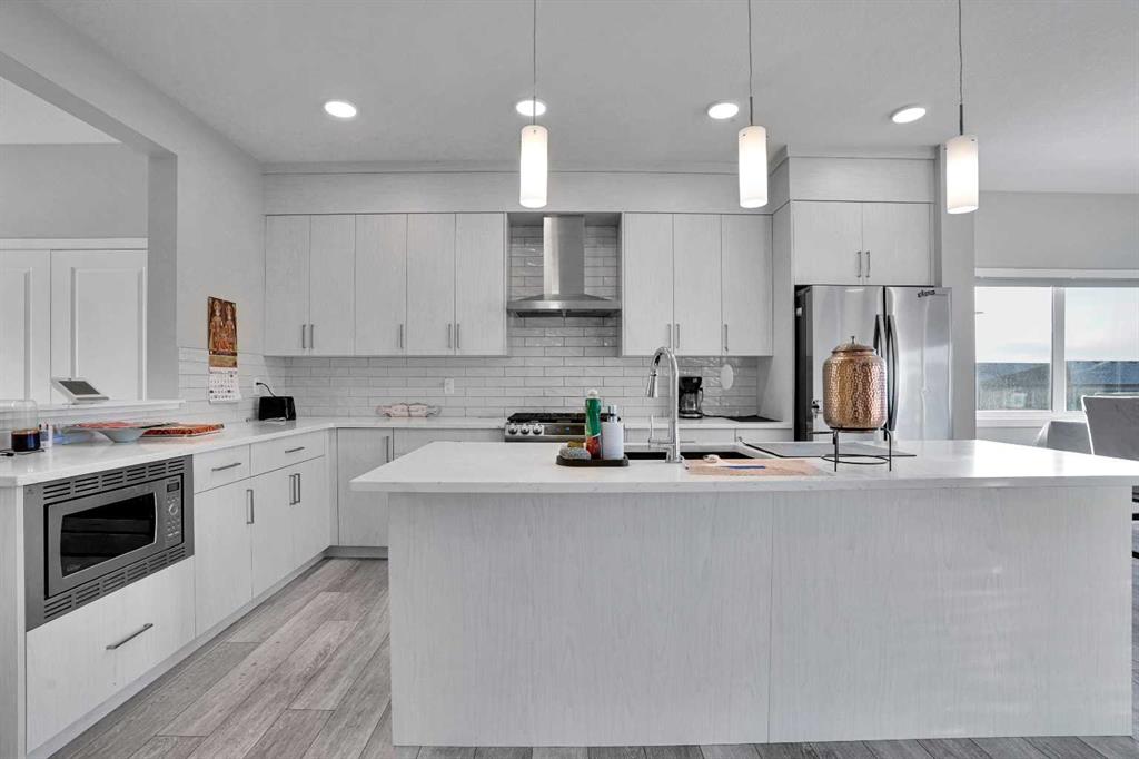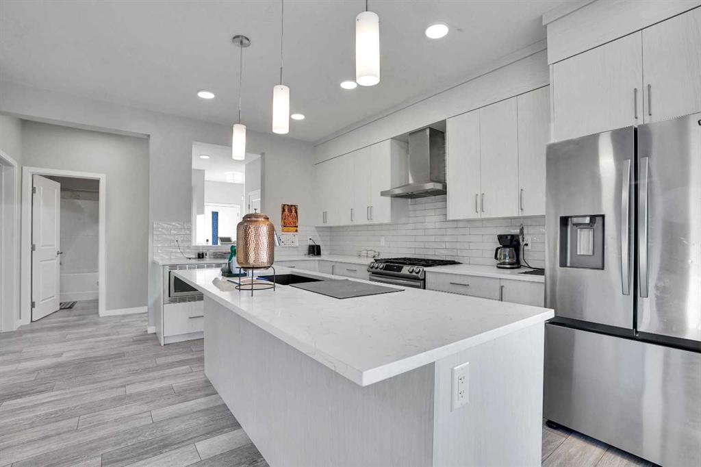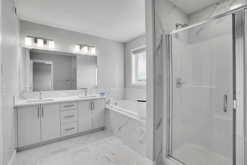 Experience modern luxury living in the Livingston area with the Collingwood model Excel home, featuring high-end finishes and a legal walkout basement suite. The unique exterior is a showstopper, complemented by a modern, functional design and contemporary finishings. Flooded with natural light, this home boasts beautiful finishings throughout. Located in the most sought-after part of Livingston, this excel-built home offers ample square footage and private views. Inside, a bright and spacious living room/dining room awaits, perfect for entertaining, alongside a chef’s dream kitchen with upgraded stainless steel appliances, quartz counters, soft-close cabinetry, a chimney-style hood fan, a built-in microwave. The functional floor plan includes a flex room, four bedrooms plus a bonus room on the upper level, ideal for family living. The primary bedroom features a 5-piece ensuite and large walk-in closets, while the other bedrooms share a 4-piece bath. A conveniently located laundry room is just off the bonus room. The custom-built home also includes a two-bedroom open-concept legal suite with stainless steel appliances, quartz counters, and in-suite laundry. Registered with the city, the suite meets all legal requirements, including separate furnace and water tank. Additional highlights include the Alberta New Home Warranty, a newly built deck, upgraded pot lights, and air conditioning. Nestled in Livingston’s heart, this incredible home is minutes from major shopping centers. Enjoy the epitome of luxury living!