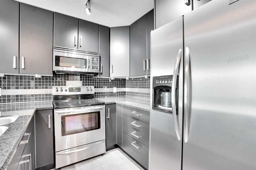 Central Beltline area apartment condo, 21st floor with a balcony looking north, 1 bedroom with 4 piece bath, large open concept Kitchen, dining and living area, large primary bedroom with walk in closet pass thru to 4 piece bathroom. In suite laundry. Brightly lit with modern kitchen appeal and stainless appliances. In-suite laundry. Underground secured and heated parking with your titled parking space and assigned storage. Security desk and personnel. Very easy walking distance to downtown, Stampede Exhibition Grounds, restaurants, night life. Just blocks away from the MNP INDOOR Leisure Exercise Centre with pool, running track, full weight room, basketball and volley ball courts, close to walking and biking paths.