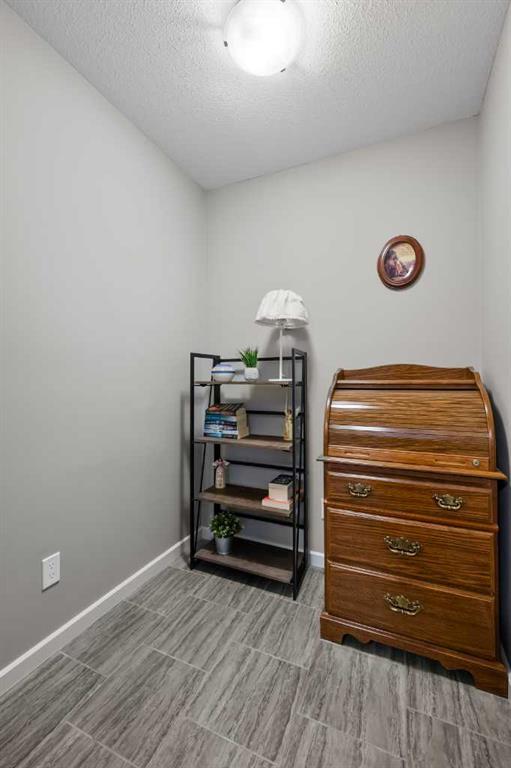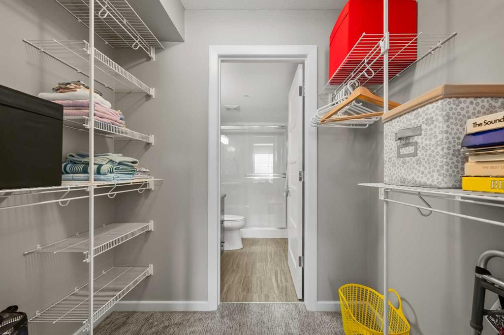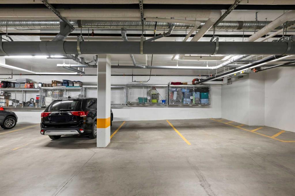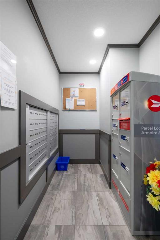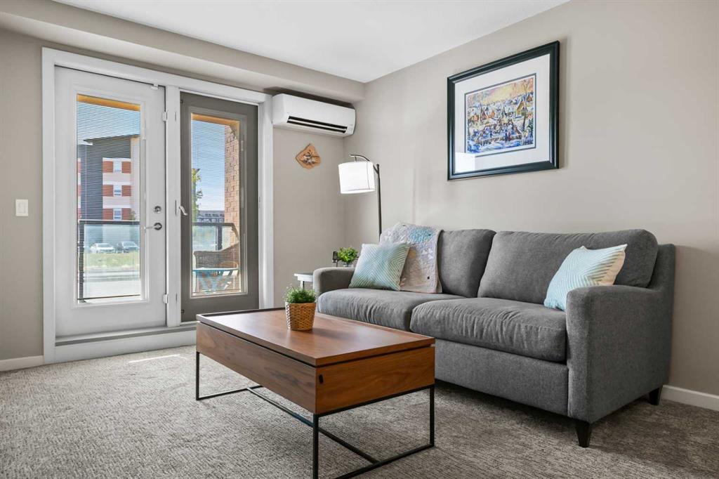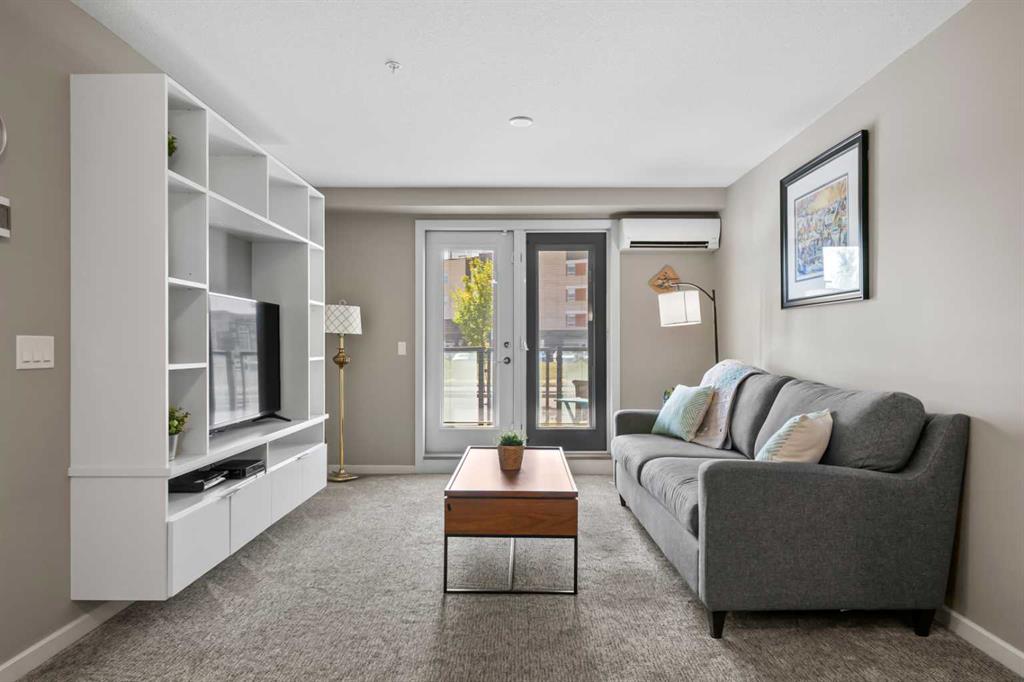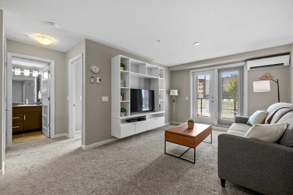 Welcome to The Chateaux! Airdrie’s premier 55+ condo building in the wonderful community of Kings Heights known for its sophistication, exceptional pride of ownership and unbeatable access to nearby amenities. Upon entering this unit, you’ll be impressed by the abundance of natural light, enhanced by its south-facing exposure. You’re greeted by beautiful tile flooring that leads into a welcoming front entrance, where you’ll find a spacious coat closet with built-in shelves, perfect for storing coats, keys and shoes. To your right is the kitchen, you will love not only the generous counter space but also the ample cabinetry this layout offers. The kitchen features granite countertops, a large sink, a lazy Susan in the corner cabinet, a garburator and a counter overhang for bar stool seating, ideal for casual meals. Stainless steel appliances and a well-appointed pantry with pull-out drawers complete this thoughtfully designed space. Moving into the living room, enjoy a spacious layout complemented by a beautiful custom California Closets media centre that is perfect for your TV, artwork and storage needs. Stay cool in the summer with a wall-mounted A/C UNIT! Your southwest-facing balcony offers year-round afternoon sun, making it the perfect place to enjoy your morning coffee, tea or an evening drink. This balcony was upgraded at the time of construction with glass panels and a gate, offering convenient direct access to the landscaped common areas, especially great for pet owners. The primary bedroom is a dream, with a large south-facing window and a spacious walk-through closet that leads into your ensuite bathroom. The ensuite features a walk-in shower with a built-in seat and elegant glass doors. The second bedroom is impressively sized and bright with custom built-in California Closet organizers that provide exceptional storage and organization. A second full bathroom is located just outside this room, complete with a beautiful vanity and a large bathtub. In-suite laundry is neatly tucked into a dedicated closet with room for storage and laundry supplies. This apartment also features a versatile den to the left of the front door that is ideal for a home office, additional storage or exercise space. For parking, enjoy the convenience of a titled underground stall located just steps from the elevator. In front of your stall, you’ll find a large, secure storage locker. Plus, there’s ample outdoor visitor parking for your guests. The Chateaux features a beautifully landscaped courtyard with a gas fireplace, and an amenity room available for private bookings where residents regularly gather here for social events and happy hours. There’s also a secure underground workshop for woodworking enthusiasts. Located in Kings Heights, you’re within walking distance to Save-On-Food, Shoppers Drug Mart, banks, salons, restaurants and more meeting all your grocery, shopping and healthcare needs. Call for a private viewing today!