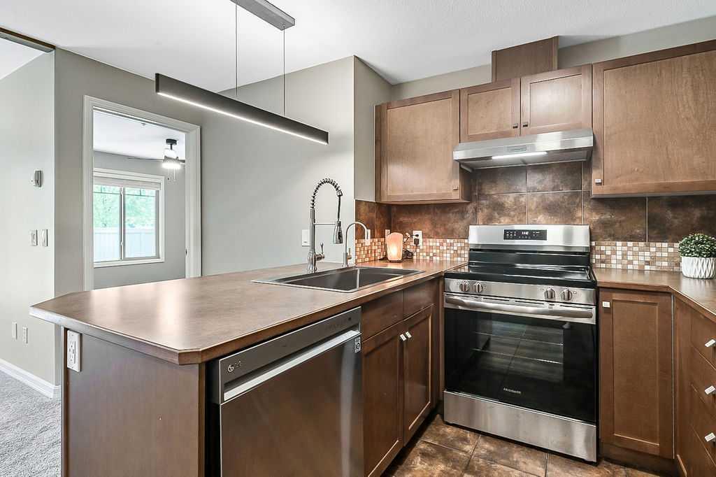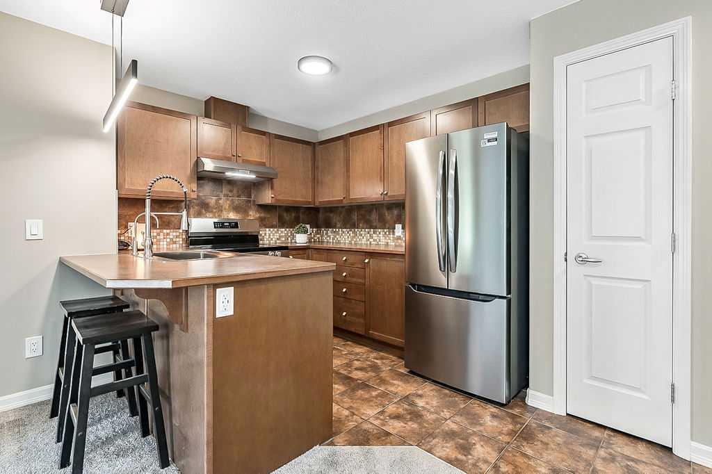 INCREDIBLE VALUE FOR 2 BEDROOMS, PLUS A DEN, 2 FULL BATHROOMS & 2 TITLED PARKING SPOTS. Welcome all Pickleball fans, you are just a short walk away from the new Okotoks Pickleball & Tennis Centre. This beautiful property is an end unit that has thoughtful updates and a smart floorplan designed for comfort and privacy. Each bedroom and bathroom are located on opposite sides of the unit, making it ideal for roommates or guests. This home comes with two parking stalls, one interior and one exterior, along with both in-suite storage and an additional storage cage. Inside, you will love the long list of upgrades, including a new washer & dryer, refrigerator, stove, and range hood, a reverse osmosis water system, and a stainless Chef sink with custom attachments. Added features like California Closets, LED counter lighting and LED lighting throughout, window coverings, ceiling fans in both bedrooms, and a rustic ceiling beam bring character and style throughout. The unit has been freshly painted (walls and ceilings), the carpet was replaced in 2023, and the home is completely clean, tidy, and move-in ready. The floorplan is enhanced by a clever flex space which is perfect for a home office, yoga nook, playroom, or extra storage. The laundry is neatly tucked away in its own closet, adding to the smart design. Step out onto your private east facing patio to enjoy your morning coffee in peace. As an end unit, you’ll appreciate having only one neighbor beside you, adding to the quiet and private feel. Beyond the unit, the community itself is second to none, offering lake access and a welcoming neighborhood environment. If you’ve been searching for a stylish, upgraded condo with parking, storage, privacy, and community amenities, this is the one to see. Ensure you allow yourself enough time to enjoy the complex. Have a stroll through the gym, hot tub and sauna area, social room and games room. When you are in the parkade ensure you look at your parking stall, storage cage and the resident’s car wash. It would be hard to not enjoy living in this environment.