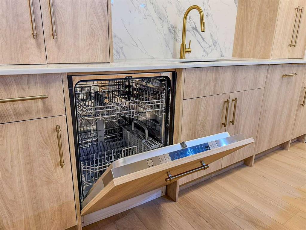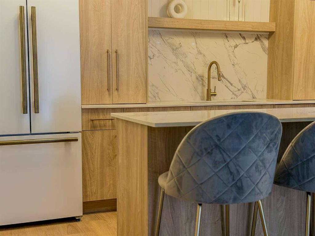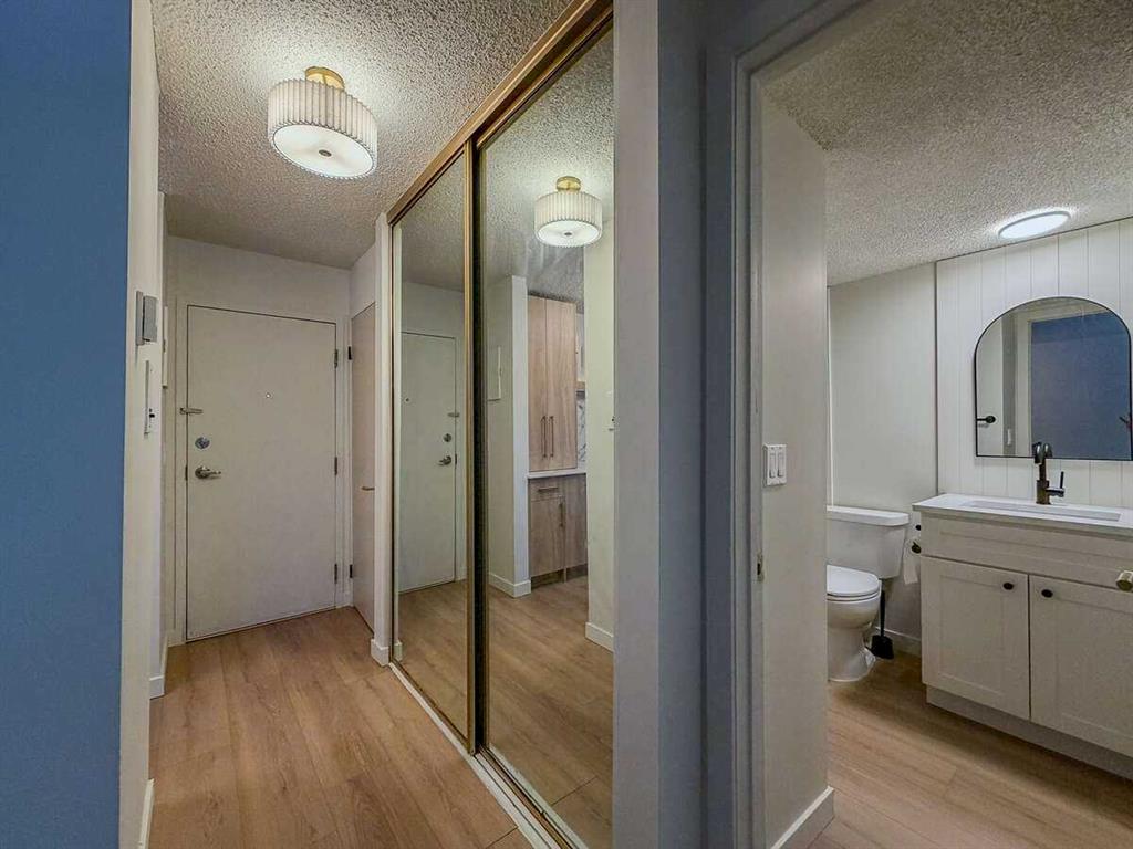 Location, Location, Location! Welcome to Varsity Villas. A gem in the heart of Calgary’s highly sought-after community of Varsity. This beautifully designed unit has been recently refreshed with a stunning new kitchen including custom honey oak cabinetry, new white and gold stainless appliances with an integrated dishwasher, striking Arabescato quartz countertops alongside matching slab backsplash paired with elegant champagne hardware. Wide plank white oak lvp flooring throughout the unit, fresh paint, gold fixtures and hand crafted artisan tile imported from Spain. This main-floor corner unit offers a spacious layout featuring a private entry with a large storage room, 4-piece bathroom with in-suite laundry, an oversized primary bedroom, expansive living room with a gas fireplace, large windows and balcony that flood the space with natural light. This move-in-ready space is turn-key and incredibly designed with comfort and functionality in mind. Perfectly located across from Market Mall, you’ll enjoy unmatched convenience with shopping, dining, and services just steps away. Inside Varsity Villas, you’ll find thoughtful amenities including a secure entry system, well-maintained elevators, heated underground parking, and assigned covered stalls. This is a very well run complex with a healthy reserve fund, all utilities covered excluding electricity. Adult only complex: 25 and over. Post tension parkade. No pets allowed.