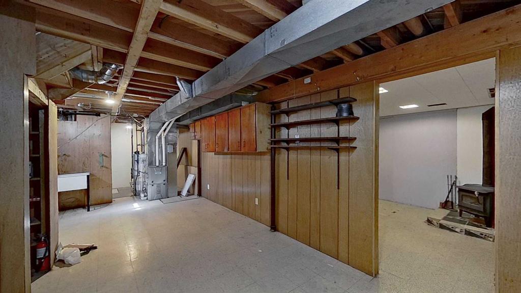 The partially developed basement adds significant living space, including two additional bedrooms, a second full bathroom, and a family room featuring a wood-burning stove.