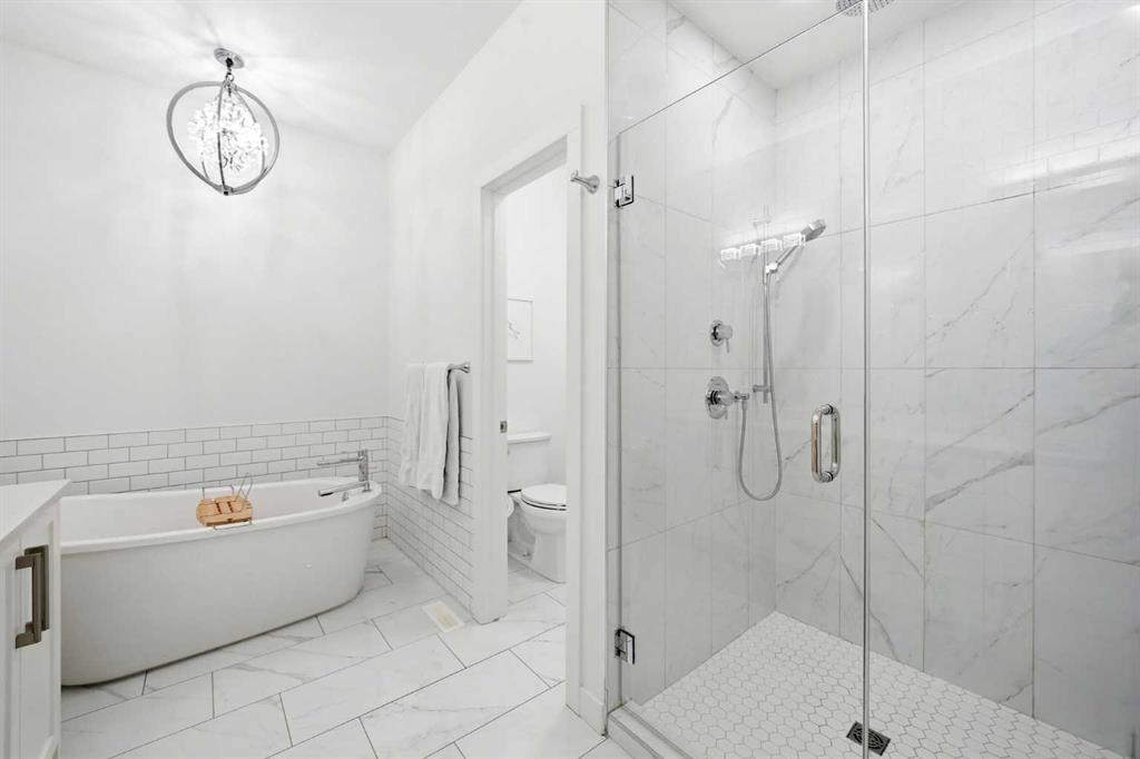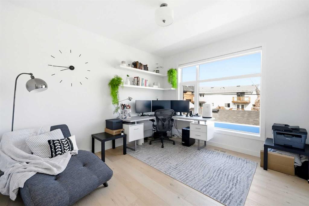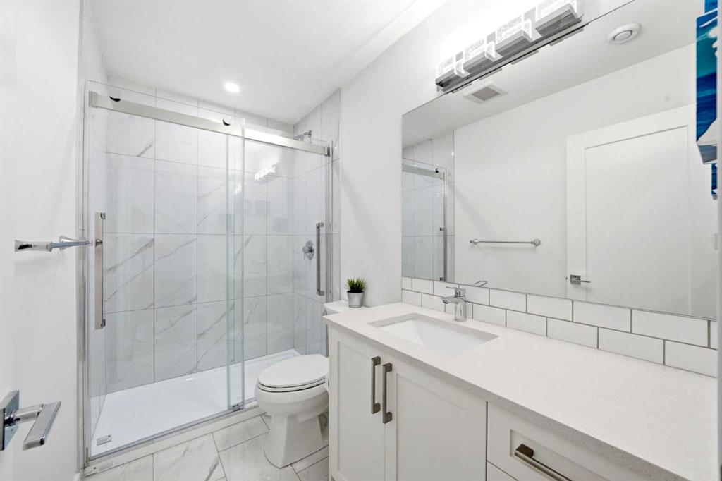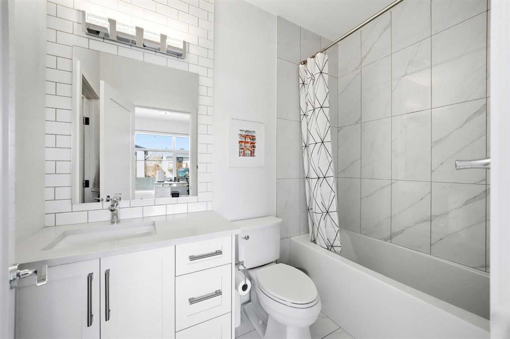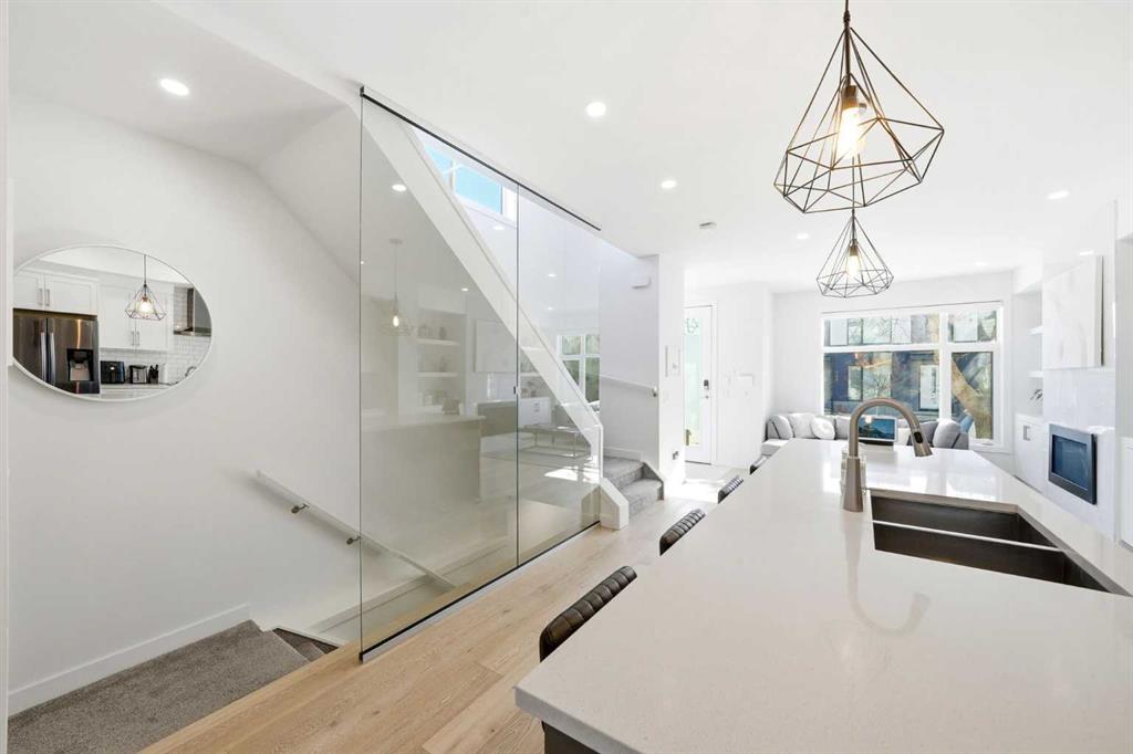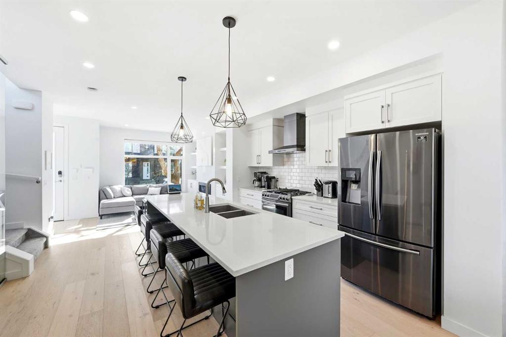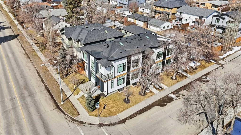 Get ready to be AMAZED by this original owned luxury END UNIT townhouse by Stonewest Homes, located in the coveted community of Mount Pleasant. *WOW* Pride of ownership truly shines in this well-cared for home and is in LIKE NEW CONDITION. Imagine coming home through the front 8 FT GLASS DOOR, along with windows on 3 sides of the home, and 10mm GLASS RAILING on the staircase brings in TONS OF NATURAL LIGHT – but don’t worry, you’ll stay comfortable with CENTRAL A/C on hot summer days. Superior designs are about the small details, and this one has it in spades! Envision the comfort you feel in your new home, the OPEN CONCEPT spaces, accentuated by modern flat RARE 9 FT CEILINGS on all 3 levels. The timeless styling creates simplicity: from the FULL TILE GAS FIREPLACE feature framed by custom built-in shelving, to the FULL HEIGHT CABINETRY highlighted by brush black appliances (incl. GAS STOVE), finished with touches of black and gold lighting fixtures. For those who love to entertain, dinner guests are welcome with comfortable seating of 4 on the large kitchen island, and 6 in the dining space. Out the back, you have your LOW MAINTENANCE FULLY FENCED YARD (largest in complex) with the most convenient access to your garage directly through the gate. The durable LUXURY VINYL PLANK flooring carries upstairs into your primary bedroom with 5-PC SPA-INSPIRED ENSUITE w/ SOAKER TUB. If you love to read, a quiet coffee in the morning, or even just a breath of fresh air, picture yourself relaxing on the private balcony off your bedroom. The 2nd bedroom also offers a FULL ENSUITE so nobody needs to share. The fully finished basement has a large rec room, great for movie nights or a fitness area, finished with a 3rd bedroom and full bathroom. The location is the perfect balance between QUIET and convenient, boasting a 78 Walk Score accessible to many amenities nearby. Your furry friend can stay active at the OFF LEASH DOG PARK across the street, and you stay active here too: Downtown (7 mins, 14 min bike), BOW RIVER PATHWAYS (6 min, 12 min boke), and stay close to nature at CONFEDERATION PARK (12 min walk). Staying social is also important to you, you and your friends will love being able to walk to 4th St and 16th Ave Shops, Restaurants, and Entertainment. You’re also 3 mins away from the Community Association with a sports field, OUTDOOR POOL, and indoor arena. Your next chapter awaits…come upgrade your lifestyle today!