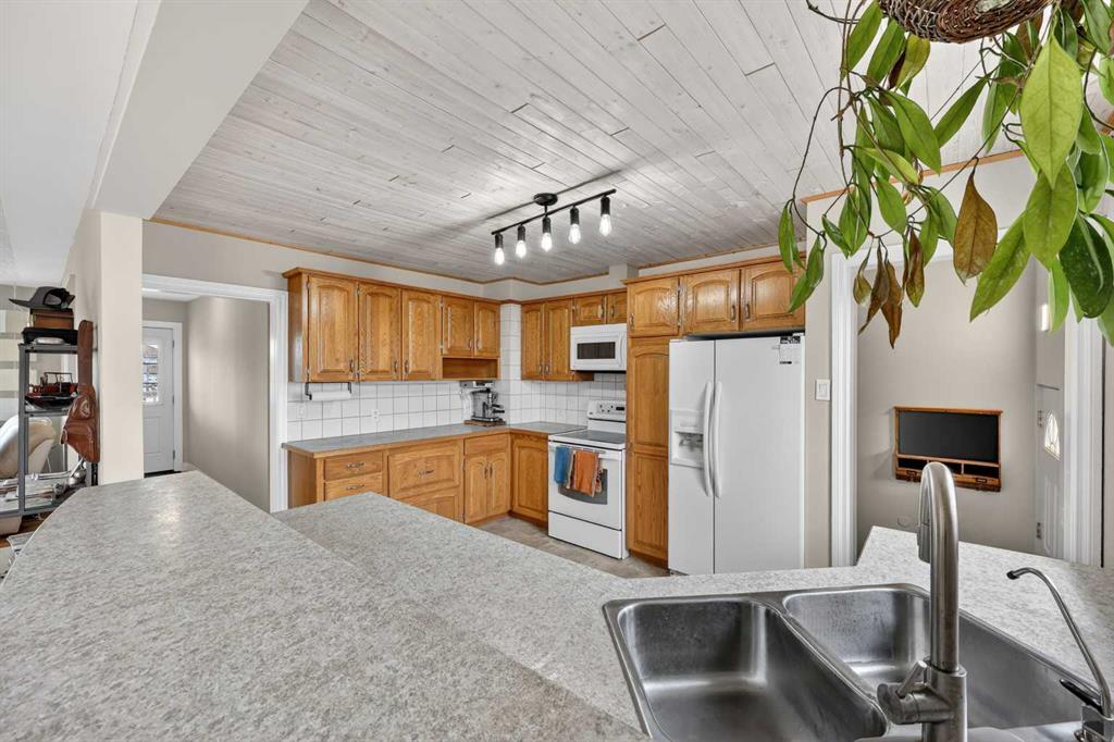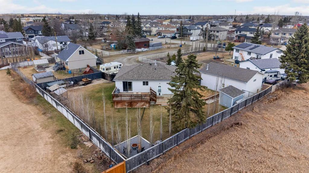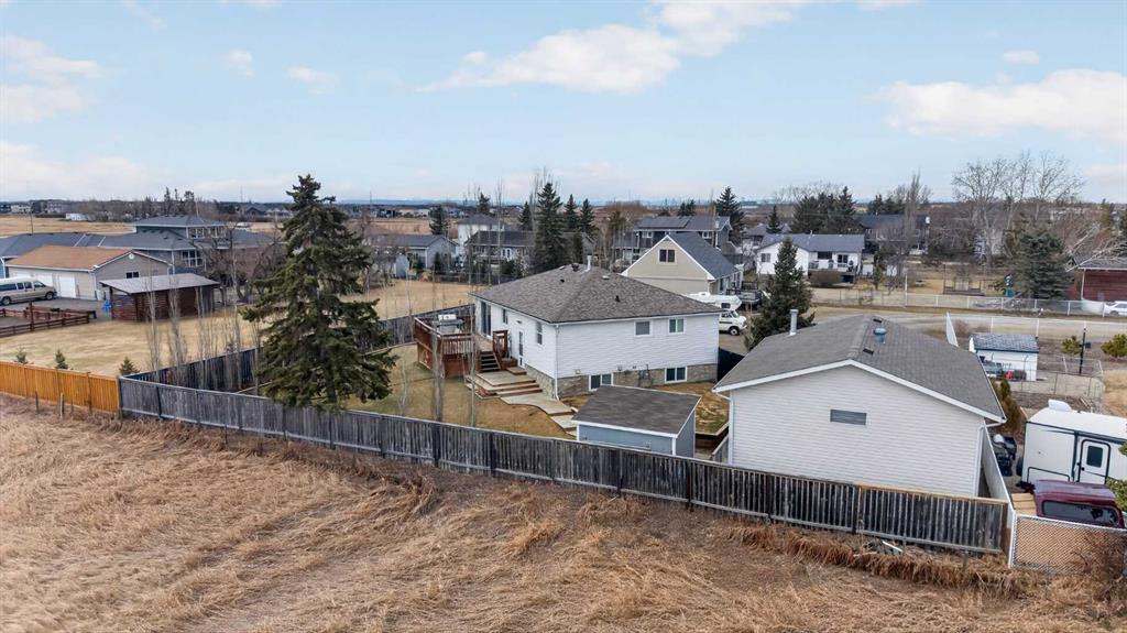 ACREAGE FEEL with the convenience of in-town living! This nearly HALF ACRE PROPERTY offers the privacy you’ve been searching for. Ideally located on the edge of town where you can enjoy peaceful sunrises from your private back deck and watch the sunsets from the spacious front deck. The OVERSIZED (32′ x 24′) HEATED SHOP is a standout feature with 12’ ceilings, a 10’ door, subpanel, and 220 power—perfect for hobbyists, storage, or a workshop. The shop roof was replaced in 2025. This solid BUNGALOW, with almost 2,300 sq ft of developed space, blends character and peace of mind, having been moved onto a new raised concrete foundation in 2001, completed with Delta MS and Delta FL water control measures. The main floor features original hardwood throughout, a bright and spacious living and dining area with access to the back patio, and a functional kitchen with an abundance of solid cabinetry. Down the hall are three generously sized bedrooms and a full 4-piece bathroom. The fully developed basement adds flexibility with a fourth bedroom, another full bathroom, and a massive rec room ideal for a teenager’s retreat, home gym, or games space. Stay comfortable year-round with CENTRAL A/C, and enjoy the benefits of updated plumbing and electrical. The home is serviced by a well—no water bill—and includes a filtration system, water softener, and reverse osmosis for added comfort. Outside, the fully fenced yard offers plenty of room for kids and pets, along with a firepit, raised garden beds, a storage shed, plus RV parking within the fenced yard. Out front there is ample parking for vehicles, trailers, or guests, as well. Located in the growing community of Langdon with great schools, shopping, restaurants, and a golf course nearby, this property truly delivers the best of country living with town convenience. Call your favourite realtor to view today!