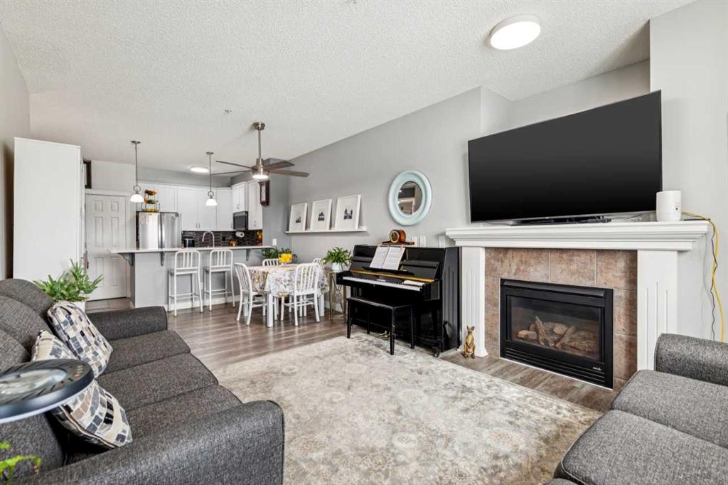 You’ll appreciate this renovated condo in McKenzie Towne’s Aberdeen on the Park. This bright, open-concept unit features 9-foot ceilings, a gas fireplace, 2 bedrooms, and 2 bathrooms, including a primary bedroom with a 4-piece ensuite and walk-in closet. The kitchen offers ceiling-height white cabinetry, quartz countertops, and stainless steel appliances. Large east-facing windows provide natural light, while the private patio overlooks the park and playground.