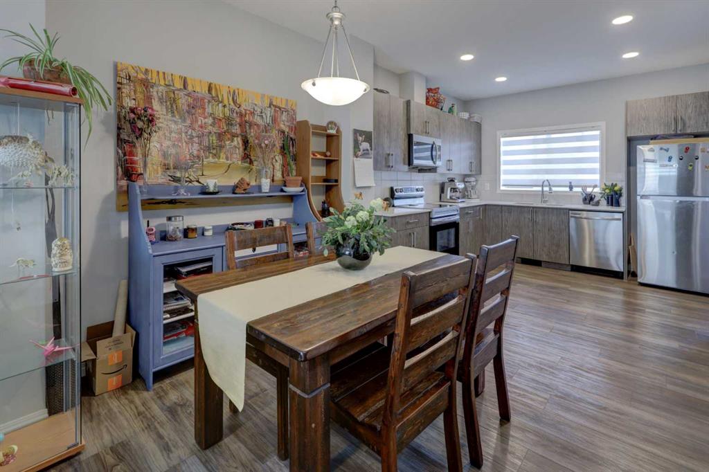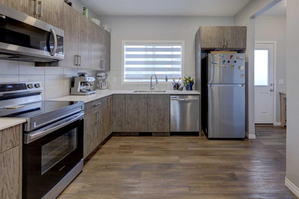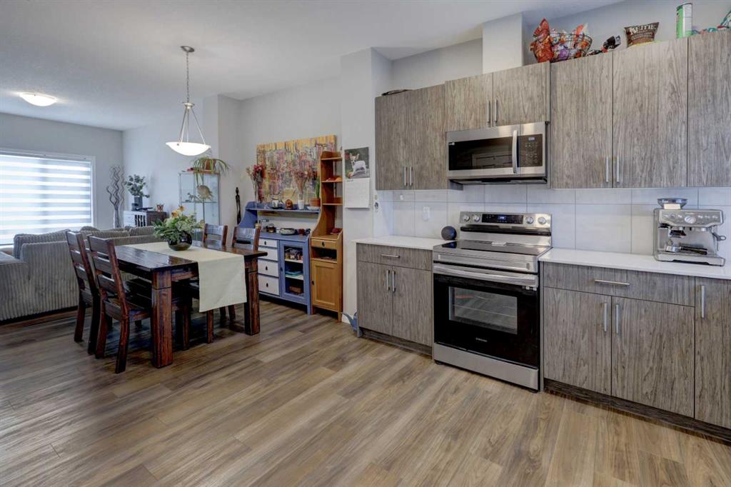 This move-in ready home features an open-concept main floor designed for both everyday living and entertaining, highlighted by elegant quartz countertops and a spacious dining area. The modern kitchen is equipped with sleek stainless steel appliances, including an electric stove, built-in microwave, and dishwasher.