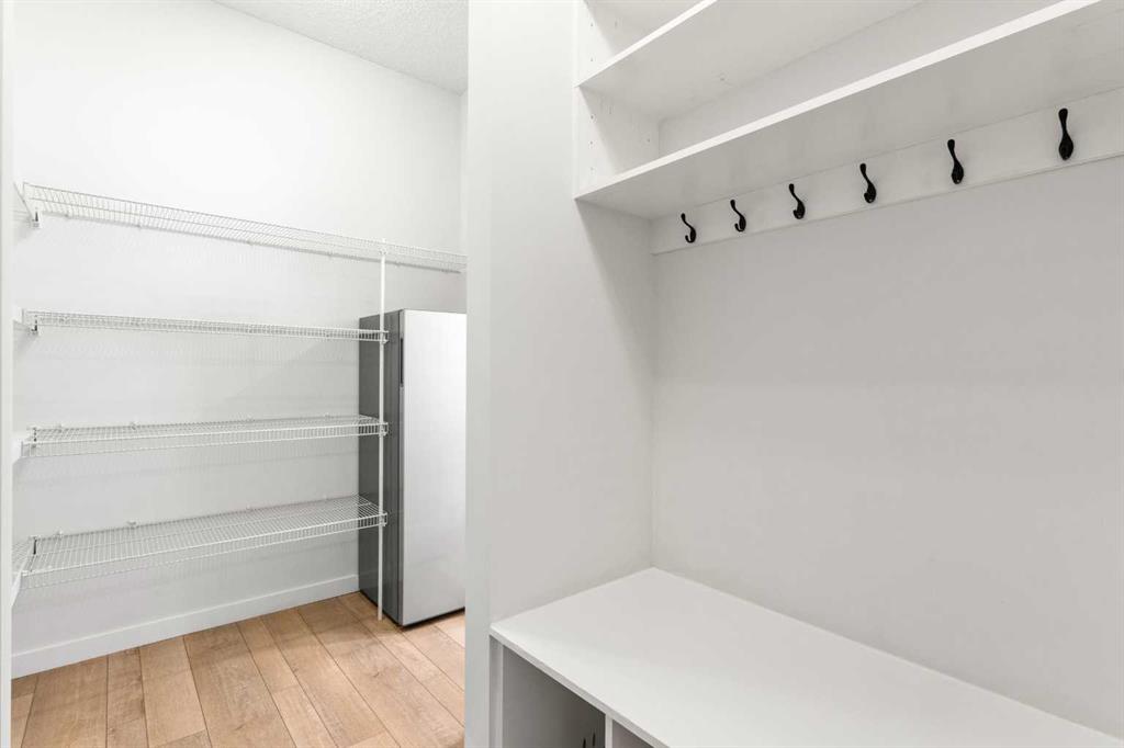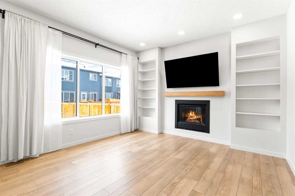 The main floor features high ceilings, a spacious front entry, convenient 2-piece bath, desk nook, and a heated double attached garage that is slightly larger than average with room for a truck. The kitchen is sure to impress with a large quartz island, dual tone kitchen cabinetry, abundant cupboard space and walk-through pantry leading to a spacious mudroom with hooks and benches. The cozy living room features a gas fireplace with built-in bookshelves on both sides and a wood mantle. Luxury vinyl plank flooring runs throughout the main floor.