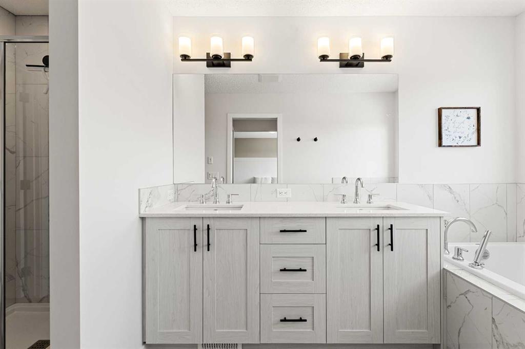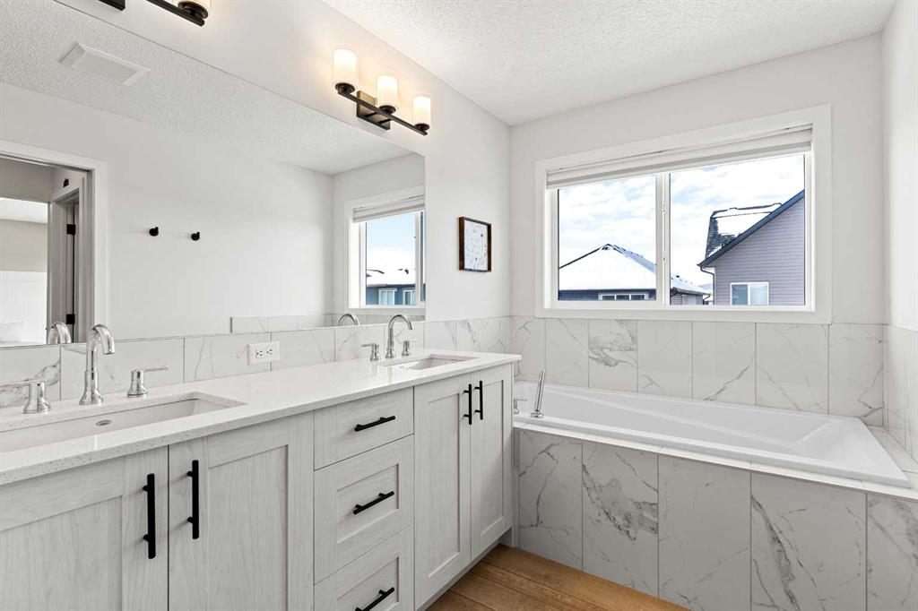 Upstairs, you’ll find carpet throughout with a bonus room featuring upgraded vaulted ceilings, built-in cabinetry, 2 good-sized bedrooms with large windows, a spacious upper laundry room, and a large 5-piece bath with dual sinks. The primary bedroom offers plenty of space to relax, along with a gorgeous 5-piece ensuite with his and hers walk-in closets.