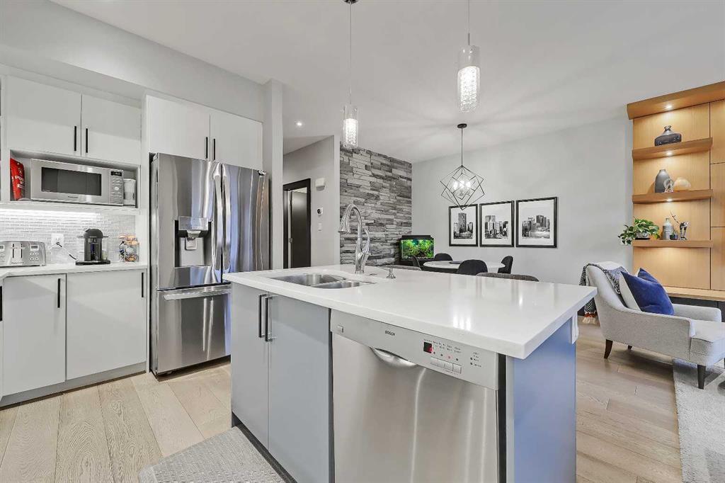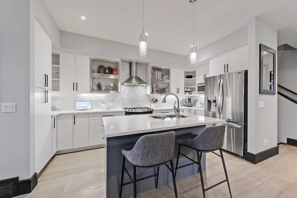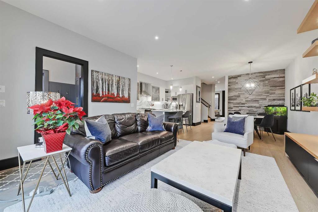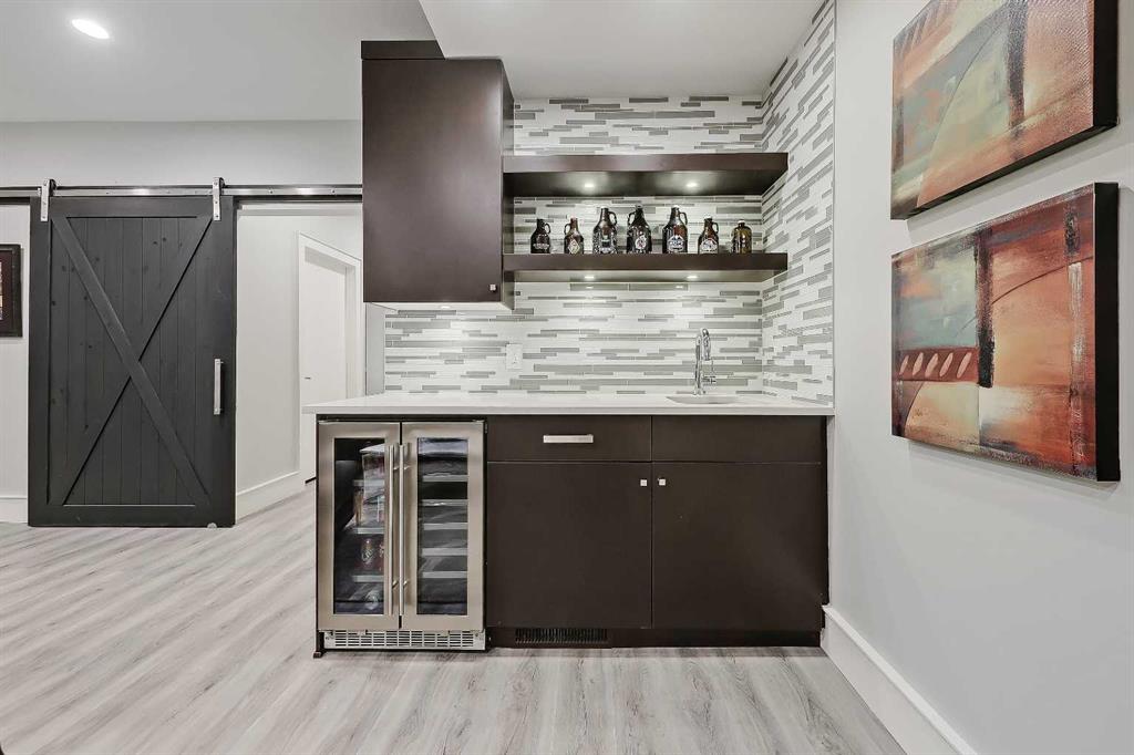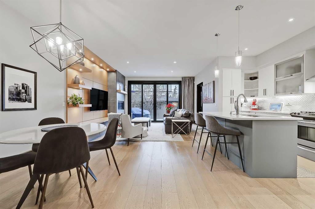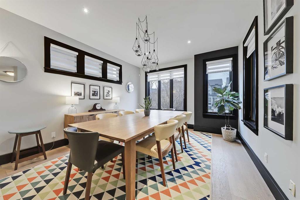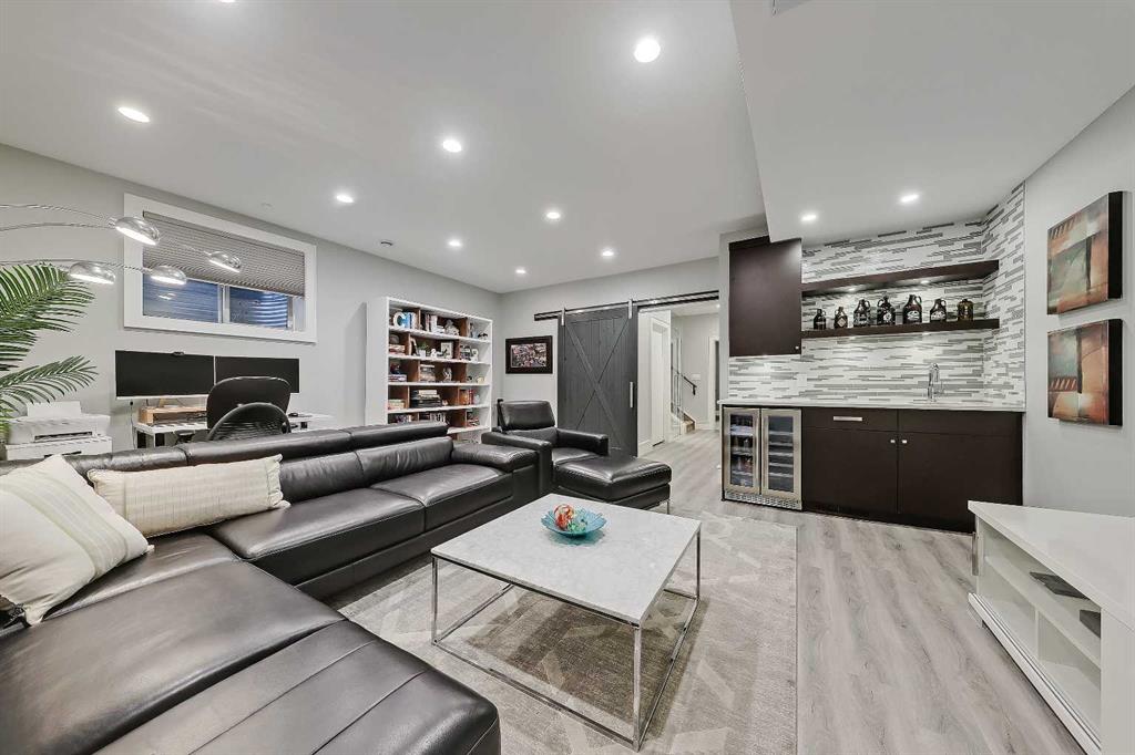 STYLE, COMFORT, AND LOCATION. Experience the best of Marda Loop living in this gorgeous semi-detached home located in the highly sought-after Richmond community. Just a quick 10-min walk away from shops, amenities, fitness studios, restaurants, and more! Families will appreciate the proximity to schools, parks, and playgrounds. Recently renovated and meticulously maintained, this home boasts over 2,700 sq ft of developed living space, 4 beds and 3.5 baths, a spacious basement, a private fenced backyard, and a double detached garage. This is a perfect opportunity for anyone seeking the best of inner-city living. Step inside through the oversized custom fibreglass front door into the welcoming formal front foyer with tiled flooring and a large closet. The main floor features engineered hardwood flooring throughout, leading to the bright formal dining room, which offers plenty of room for a full furniture arrangement. The modern kitchen features ample cabinetry and counter space, quartz counters, and a central island with bar seating, dual basin stainless steel sinks with a garburator, and a full stainless steel appliance package. The adjacent dining nook with an accent stone wall is a great spot for casual meals. The expansive living room boasts a custom built-in entertainment center with display shelves and pull-out drawers, and a tiled gas fireplace. High-end Pella glass sliding doors lead to the rear deck and backyard. Just off the living room is a convenient tiled mudroom with a pocket door, built-in storage, hooks and access to the backyard. Neatly tucked away, a 2pc powder room with tiled flooring completes the main floor. The upper floor showcases an impressive primary bedroom with large windows, a private balcony, a walk-in closet, and a luxurious 5pc ensuite. The ensuite features a quartz vanity with dual sinks and storage, a drop-in soaker tub with a handheld shower wand and tile surround, and a fully tiled stand-up shower. Two additional bedrooms with oversized windows and large closets, a main 4pc bathroom, and a tiled laundry room provide comfort and convenience. Downstairs, the fully developed basement features luxury vinyl flooring and in-floor heating throughout. A modern barn door opens into the massive rec room, which features a wet bar with a beverage fridge, quartz counters and tiled backsplash, and shelving. Down the hall, you’ll find a wine room with 10 mm glass enclosure, a guest bedroom with a walk-in closet, and a sleek 4pc bathroom. Outside, enjoy a composite deck, stone patio, grassy area, gas line for BBQs, and an insulated, drywalled, double-detached garage. Additional features include a high-efficiency furnace, central A/C, new roof (2024), new front door (2023), new main-floor sliding doors (2023), and a new fridge (2024). Don’t miss out on this exceptional property that offers style, functionality, and an unbeatable location. Schedule your showing today and discover the best of Marda Loop living!