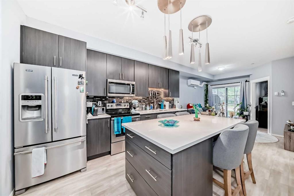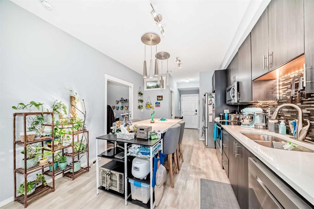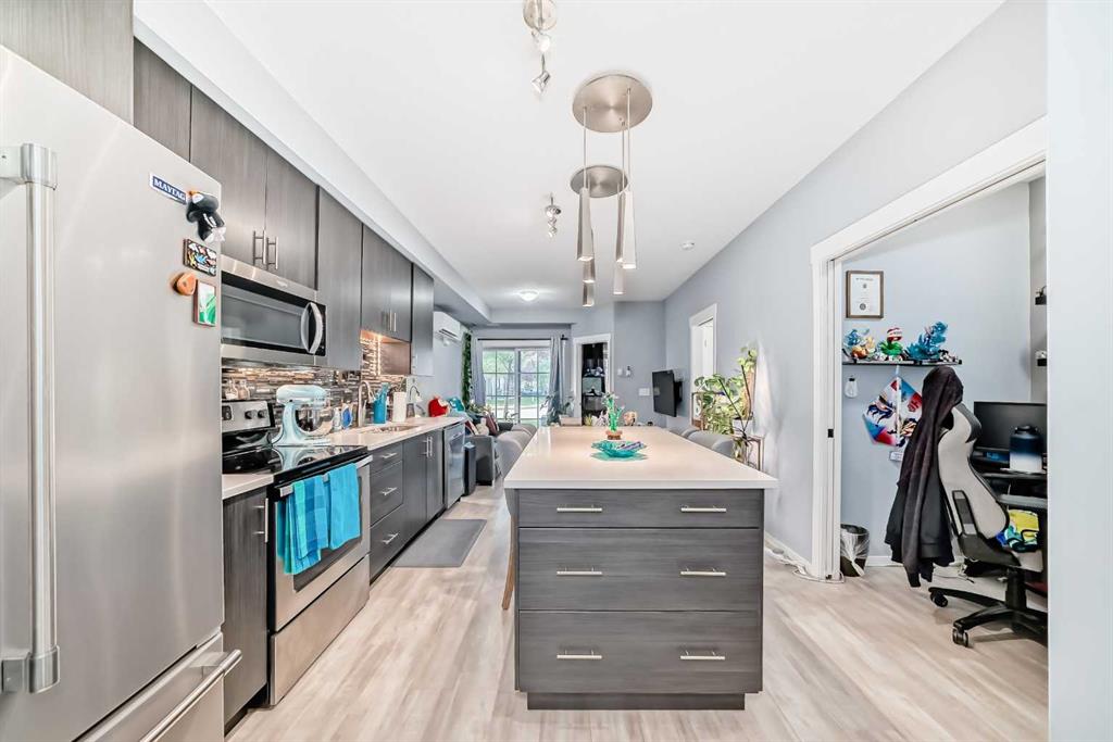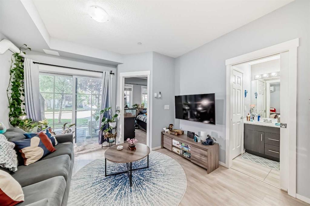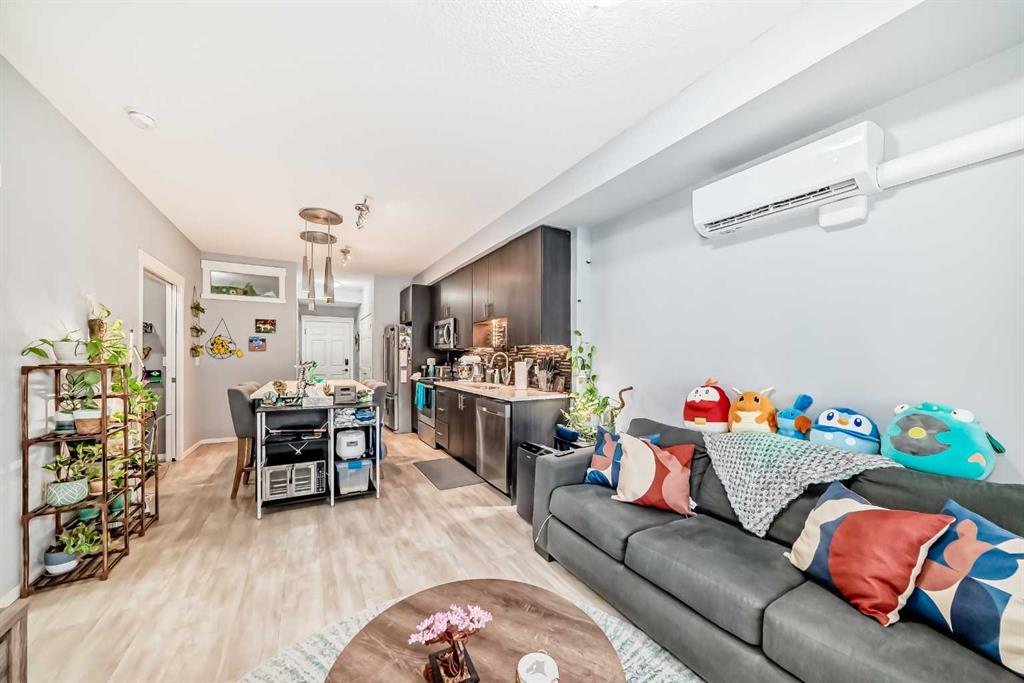 Beautiful 2 bed + den, 1 bath main floor condo in one of Calgary’s most sought-after communities—Legacy. This well-designed home features an open floor plan with bright white quartz countertops that gleam, rich modern cabinetry, and a functional layout perfect for both everyday living and entertaining.