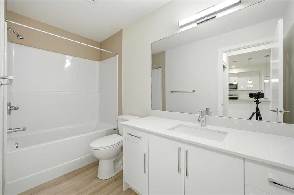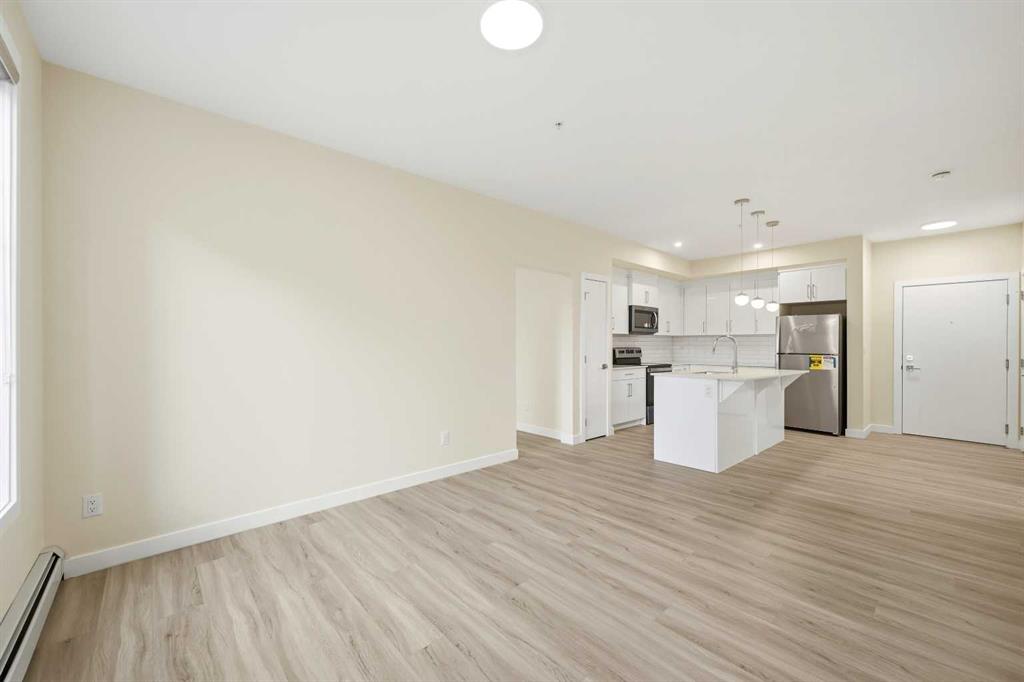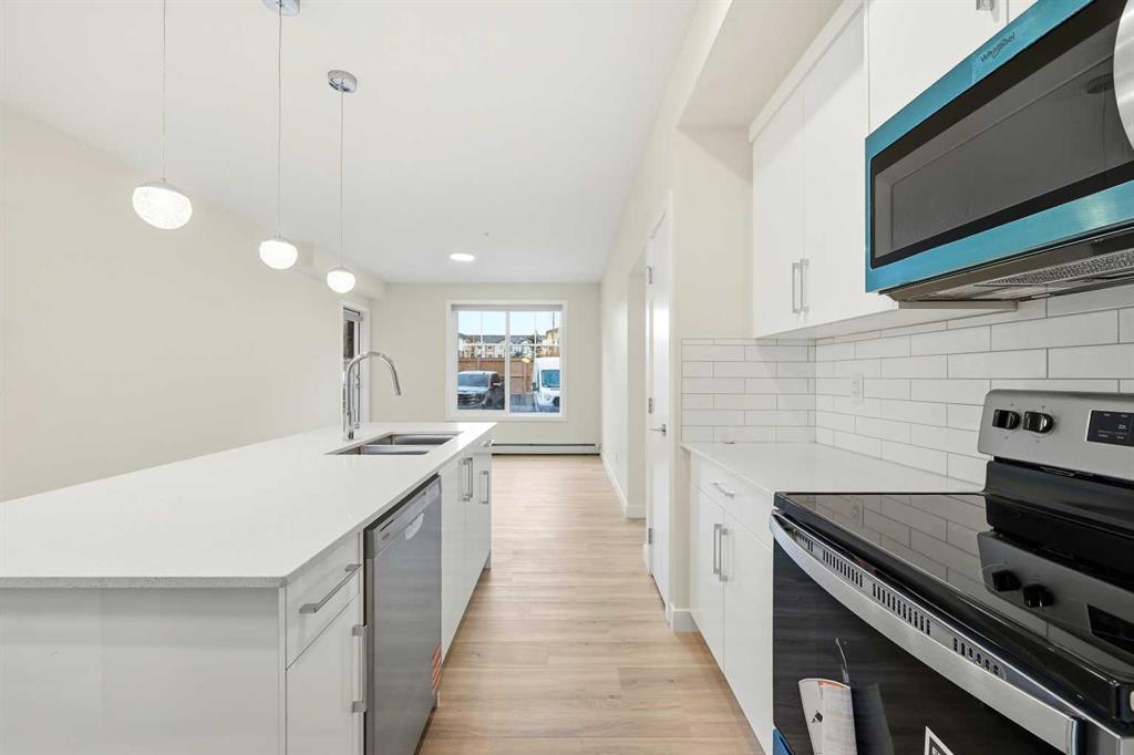 Welcome To This Brand-New, Move-In-Ready 1 Bedroom + Den, 1 Bathroom Condo Located In The Vibrant And Rapidly Growing Skyview Community Of NE Calgary. Thoughtfully Designed For Modern Living, This Bright And Airy Home Features 9-Foot Ceilings And Expansive Windows That Fill The Open-Concept Layout With Natural Light, While The Spacious Den With A Large Window Offers Excellent Flexibility And Can Easily Be Converted Into A Second Bedroom With The Addition Of A Door. Wide-Plank Luxury Vinyl Flooring And Quartz Countertops Throughout Create A Sleek, Contemporary Finish, And The Fully Upgraded Kitchen Is Both Stylish And Highly Functional, Featuring Stainless Steel Appliances, An Over-The-Range Microwave, Soft-Close Cabinetry, A Pantry, Quartz Countertops, And A Convenient Breakfast Bar—Perfect For Casual Dining, Working From Home, Or Entertaining. The Kitchen Flows Seamlessly Into The Living And Dining Areas, Providing A Comfortable And Inviting Space To Relax Or Host Guests. This Unit Offers Generously Sized Rooms And A Modern 4-Piece Bathroom With Quartz Countertops And Refined Finishes, Along With In-Suite Laundry, Upgraded Designer Window Treatments, And A Large Private Balcony With A BBQ Gas Line—Ideal For Summer Entertaining And Enjoying Open Views. The Home Is Complete With Titled Underground Parking, A Titled Storage Locker, And Secure Underground Bike Storage, Providing Exceptional Convenience And Value. Located In A Newly Constructed Building, Residents Enjoy Low-Maintenance Living With Easy Access To Shopping, Schools, Public Transit, Major Amenities, Calgary International Airport, And Quick Connections To Stoney Trail For Effortless Commuting Throughout The City. Ideal For First-Time Buyers, Professionals, Or Investors, This Turnkey Condo Presents An Excellent Opportunity To Own In One Of Calgary’s Most Desirable And Fast-Growing Communities While Building Equity In A Modern And Well-Connected Location.