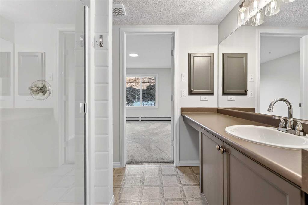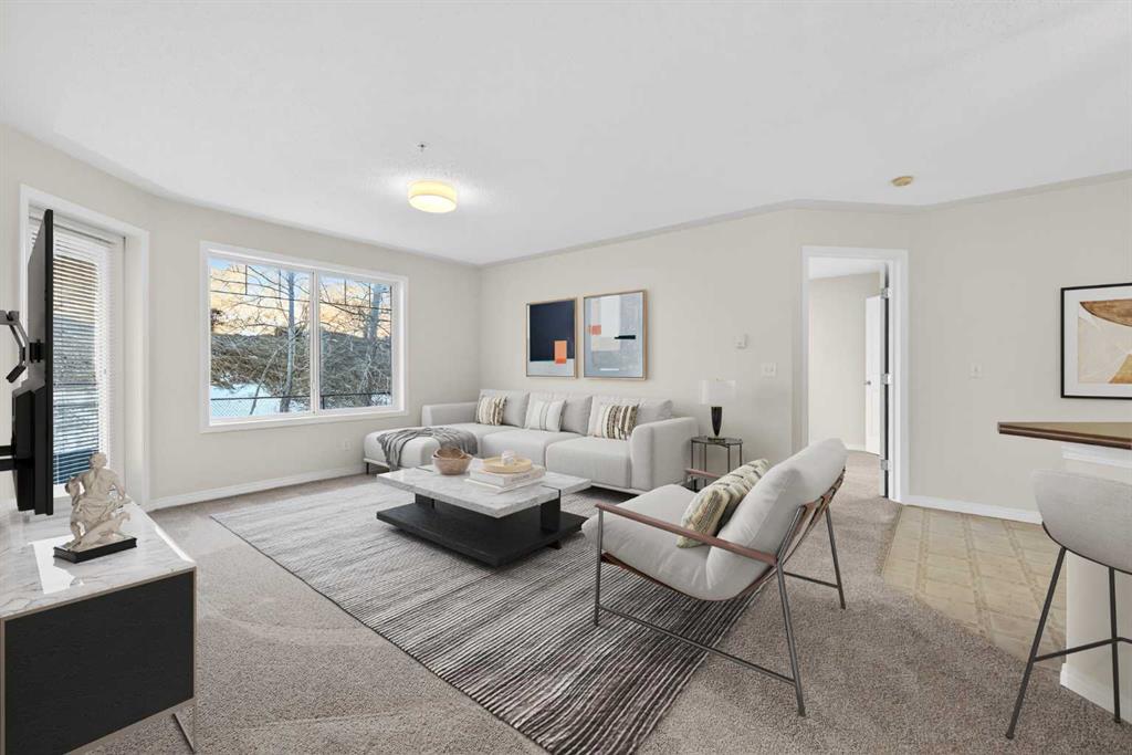 Welcome to #212, 369 Rocky Vista Park NW – a bright and beautifully updated 2-bedroom, 2-bathroom condo located in the peaceful, sought-after community of Rocky Ridge. This home offers a fantastic opportunity for first-time buyers, downsizers, or investors, blending comfort and convenience in an unbeatable location just minutes from the majestic Rocky Mountains. Step inside and enjoy a fresh, modern feel with brand new flooring, cabinets, lighting, and paint throughout, complementing the functional open-concept layout. Large windows flood the space with natural light, enhancing the bright and inviting atmosphere. The spacious living room connects seamlessly to your own private balcony – perfect for enjoying your morning coffee or unwinding with tranquil evening views. The updated kitchen features ample cabinetry and a practical layout, ideal for entertaining or everyday cooking. The primary bedroom offers a walk-through closet and a private 3-piece ensuite, while the second bedroom and full guest bath are thoughtfully positioned for privacy. Additional highlights include convenient in-suite laundry and underground titled parking, keeping your vehicle secure year-round. Beyond your unit, the building boasts an impressive range of amenities, including a fitness center, theatre room, party room, and even an on-site hairdresser – everything you need just steps from your door. Situated in a quiet, well-maintained complex close to walking trails, green spaces, shopping, and transit, this condo truly has it all. Whether you’re entering the market, simplifying your lifestyle, or investing in a growing area, this move-in-ready home with stylish new upgrades checks all the boxes. Don’t miss your chance to own a slice of serenity in Rocky Ridge – steps from nature, yet close to everything you need.