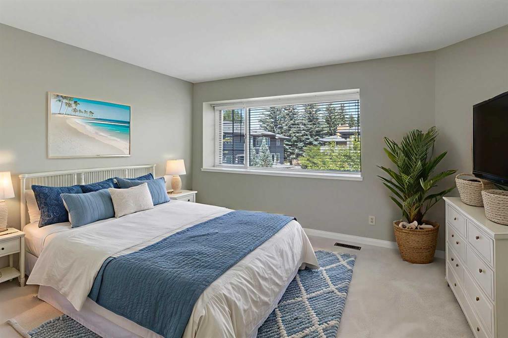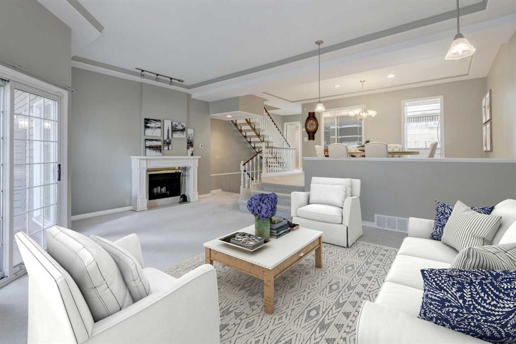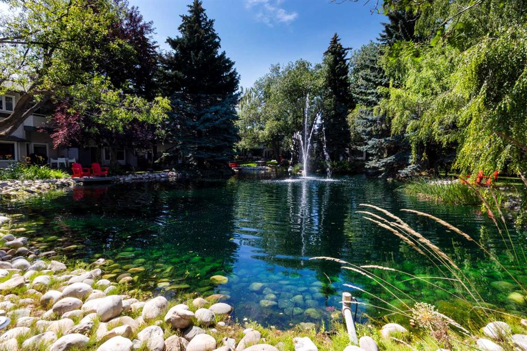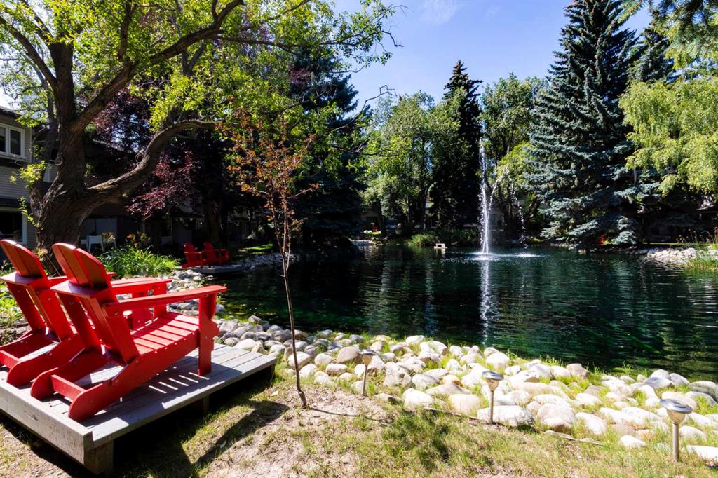 REVISED PRICE TO SELL – END unit with a POND location – this updated charming townhouse features close to 2000sq ft on 3 levels, plus 2 generously sized bedrooms. As you enter the home, you are greeted by an open foyer that leads you to the main level. Main level floor plan impresses – spacious living room with elegant wood burning fireplace, 10ft ceilings, large windows and access to the NEW deck – fully fenced it provides an idyllic outdoor entertainment area backing onto the pond with fountains. The living room is open plan to the dining area that features a built-in buffet area with wood slab countertop and sink. The kitchen was upgraded by the previous owner and includes Wolf appliances, new dishwasher, lots of storage and a bright breakfast nook area. A upgraded 1/2 bath completes this level. The Upper floor features new carpet, a loft/flex/office space with balcony that overlooks the pond area, a generous Primary suite with two closets and spacious ensuite complete with newer Toto toilet. A second bedroom offers a generous space and a full bathroom with skylight completes this level. Walkout basement features utility room with newer washing/dryer, storage and is connected to the Tandem heated attached garage (fits 2 cars). Situated in the desirable community of Varsity, this townhouse not only offers a comfortable living space but also provides access to a wealth of amenities including nearby shopping and parks, University District, U of C, Children’s & Foothills Hospitals, LRT plus walking distance to Market Mall.