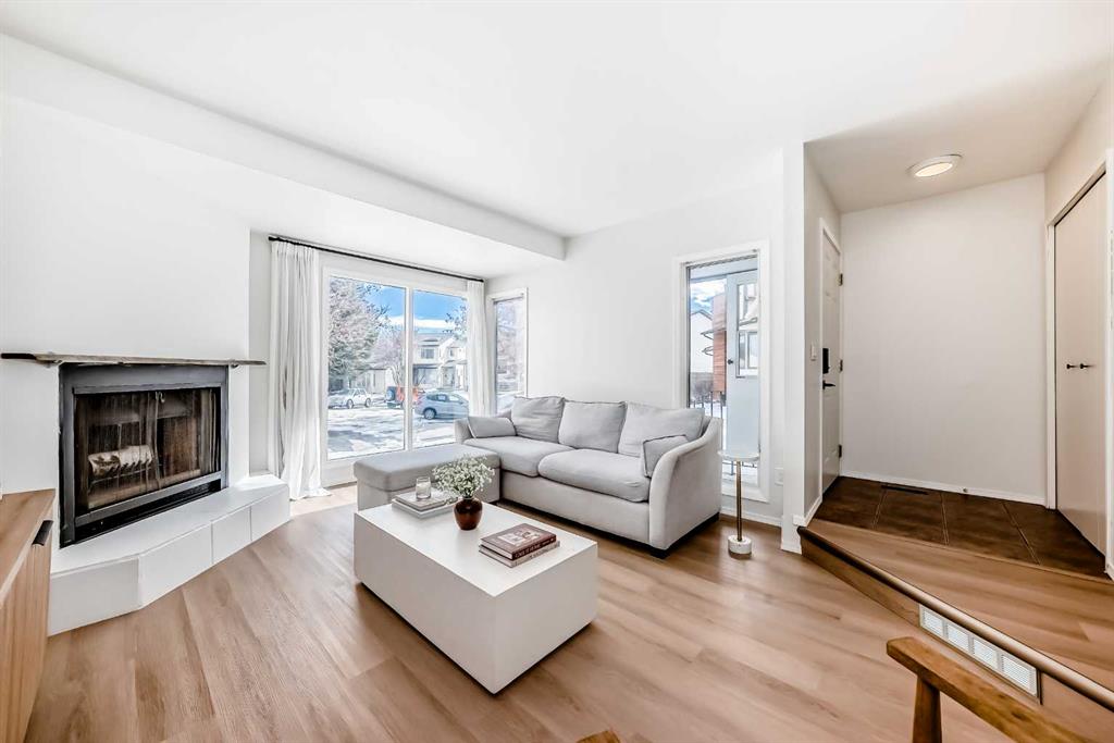 Step inside to a bright and inviting main floor featuring new vinyl plank flooring and an abundance of natural light. The spacious living room offers a cozy fireplace and generous space for both everyday living and entertaining. The open kitchen is functional and welcoming, showcasing new laminate countertops and backsplash, ample cabinetry, and plenty of prep space. French doors off the dining area lead to a private deck — perfect for summer BBQs and morning coffee.