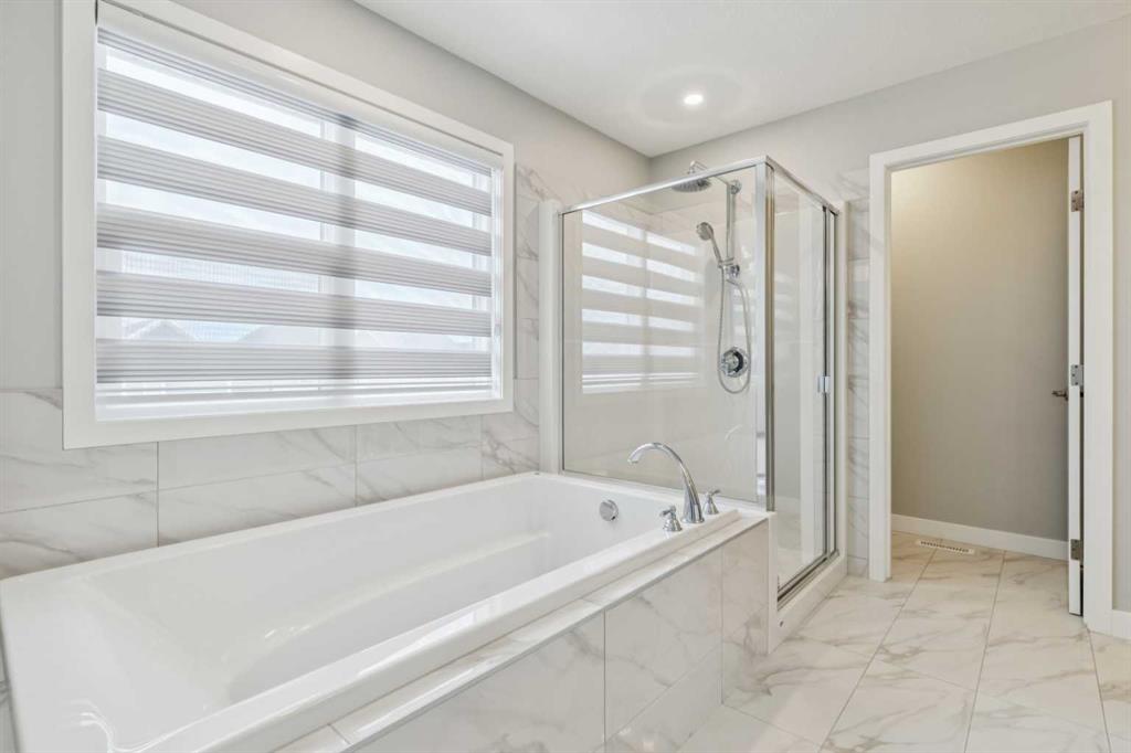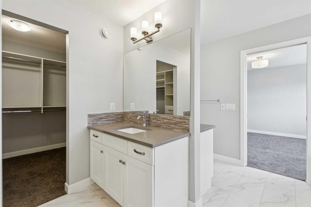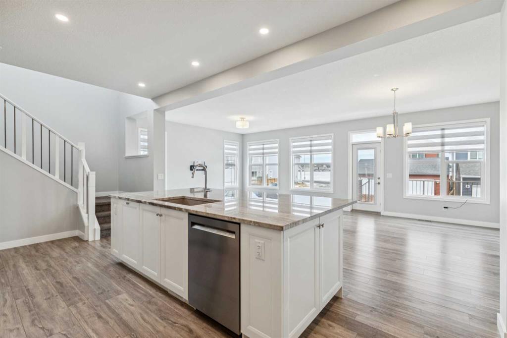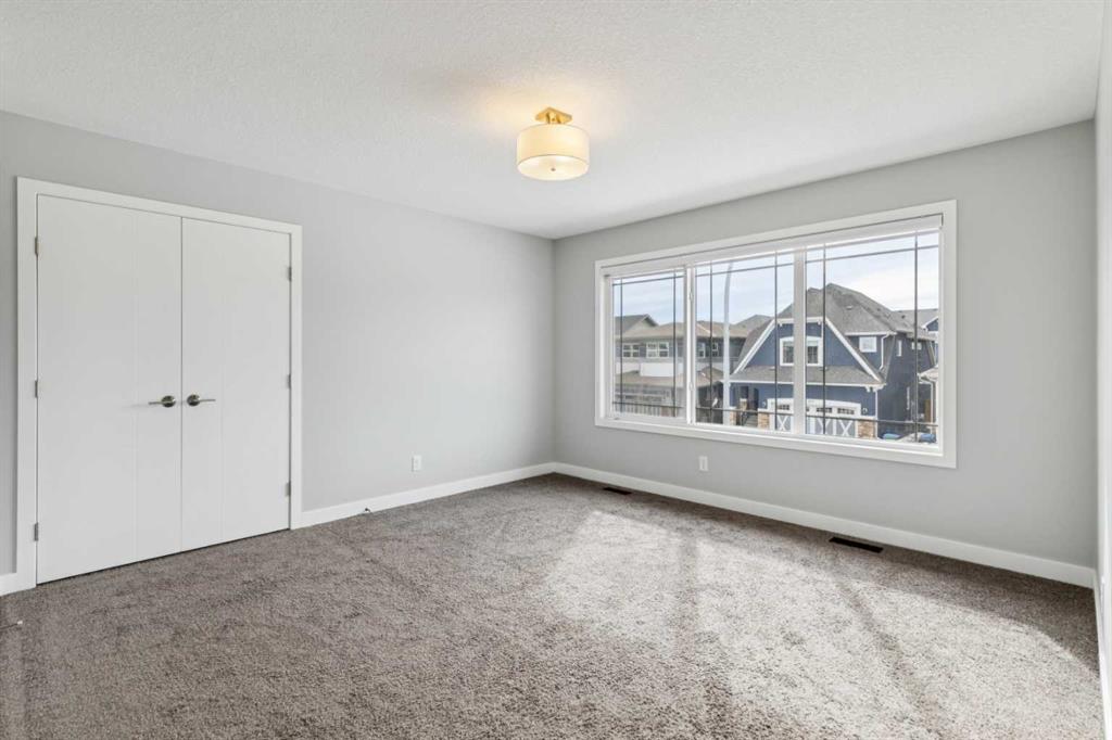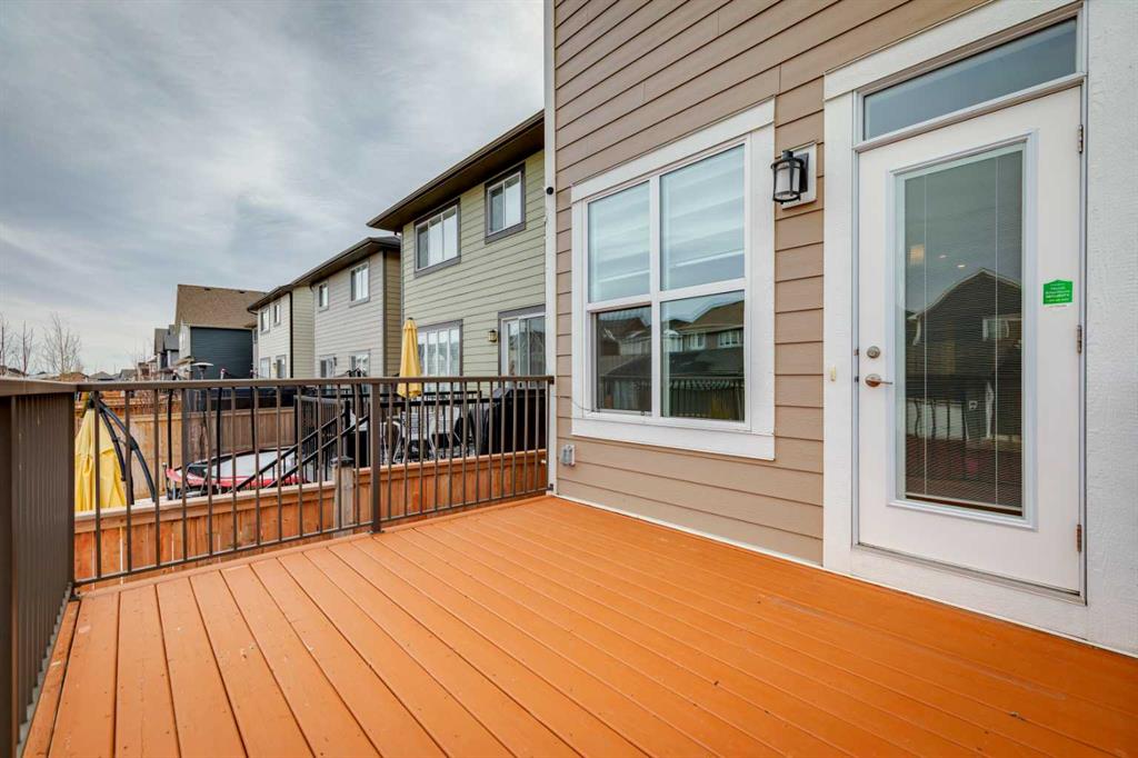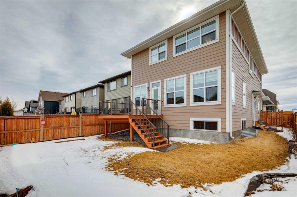 Lake living in Mahogany ~ Step into your next chapter in one of Calgary’s most desirable lake communities, where modern design meets everyday functionality in this exceptional four-bedroom, three-bathroom home. Perfectly situated on a corner lot with a back alley and directly across from a peaceful green space, this property offers a quiet, connected, and family-friendly lifestyle. Within a 10-minute walk, you can enjoy the lake, beach, and Mahogany Beach Club, while schools, parks, shopping, dining, and the wetlands are all conveniently close by. The main floor is thoughtfully designed with the very rare benefit of a main floor bedroom and a full cheater ensuite bathroom connected by a pocket door, making it ideal for guests or multigenerational living. The open-concept layout flows seamlessly from the dining area to the living room, creating an inviting atmosphere for both entertaining and day-to-day living. At the heart of the home is a stylish kitchen featuring white cabinetry, granite countertops, a gas cooktop, built-in microwave and oven, hood fan, dishwasher, and a colored granite sink. A walk-in corner pantry and a large island provide ample prep space and storage, ensuring both practicality and elegance. Upstairs, you’ll find three spacious bedrooms, including a primary suite retreat, along with bathrooms finished with quartz countertops. Each bedroom is equipped with custom built-in closet organizers to maximize storage and organization. The upper-level laundry area includes a washer and dryer, and window coverings—some remote-controlled—are already installed for added convenience. Additional features enhance comfort and value, including a separate side entrance with a developed stairwell for future basement development and 9-foot basement ceilings that create a bright, open feel. This home is designed with energy efficiency in mind, featuring two furnaces, a tankless water heater, and six installed solar panels to help reduce utility costs. The attached garage is roughed-in for gas, making it easy to install a heater, and a basement freezer is included. Outdoors, you can relax on your balcony or in your spacious backyard or take advantage of Mahogany’s many nearby amenities. With school bus stops just minutes away and both public and Catholic schools within walking or biking distance, this home is perfect for families. Easy access to Deerfoot and Stoney Trail ensures a smooth commute to any part of the city, making this home a rare opportunity to enjoy comfort, convenience, and community in one of Calgary’s premier neighborhoods. You won’t run out of things to enjoy in this 4 season lake community with wetlands and pathways to enjoy nature too. Shops in local Mahogany Village and adjacent to Seton to the south where you will find the South Health Campus hospital and Brookfield YMCA along with VIP theatres and more.