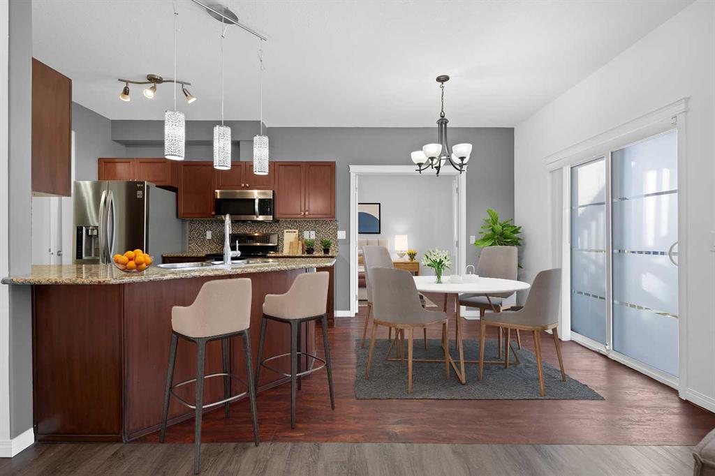 OPEN HOUSE SUNDAY 4TH JAN 12-2PM. Welcome to this great ground floor 3-bedroom unit, offering lots of space for the family and no stairs! As you walk up to the home you will appreciate the covered East facing patio – a great place to enjoy your morning coffee! Step inside and appreciate the abundance of natural light and the tiled feature wall. This home has no carpets, making it great for anyone with allergies! The kitchen features maple stained cabinetry, gleaming granite countertops, a stylish tiled backsplash, and stainless steel appliances—including a double oven – great for preparing meals! Relax in the bright and inviting living room which features a large west facing window that fills the space with natural light. Entertain in the dining area or step out of the patio doors onto the large west facing patio of a BBQ. There are 3 good sized bedrooms with the spacious primary suite featuring a 4-piece ensuite with granite counters. There is a 4-piece family bathroom. Completing this unit is a laundry with washer and dryer. There is a door from the front patio that provides access to your own private storage room. The property includes two assigned parking spaces, and pets are welcome with board approval. Don’t miss out on this lovely home. View 3D tour/virtual tour