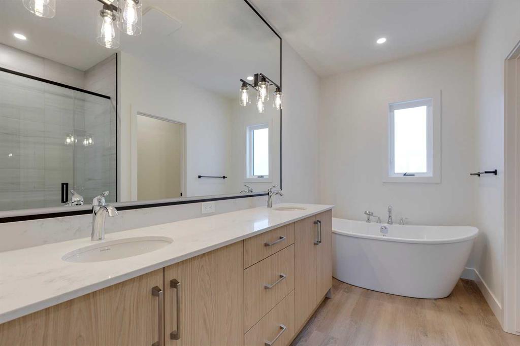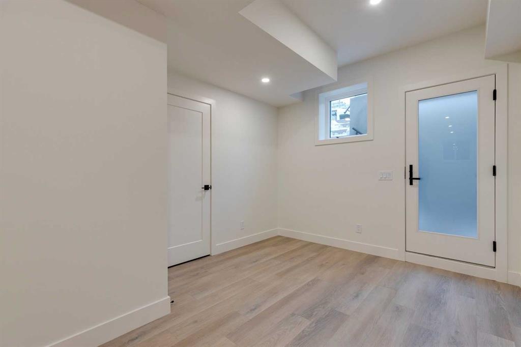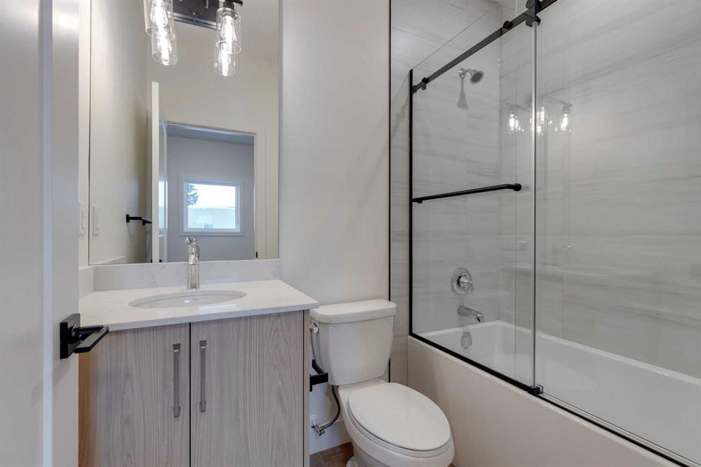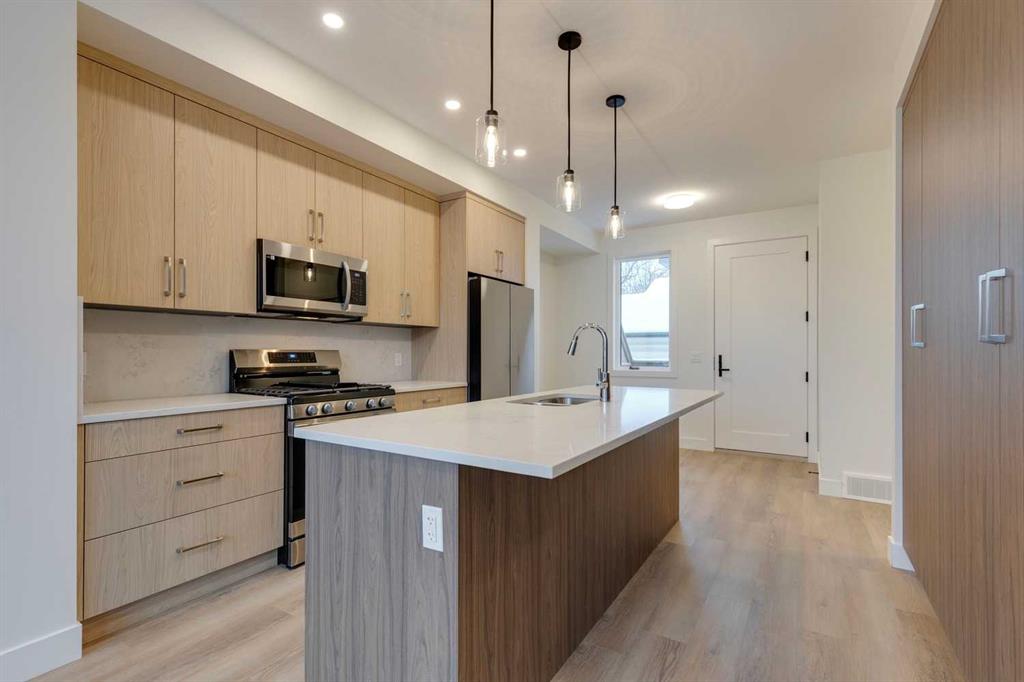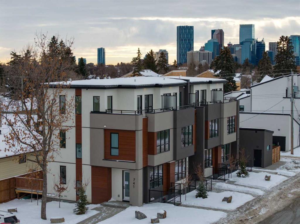 Mount Pleasant – 2124 7 Street NW: Welcome to this beautiful townhome offering 3 bedrooms, 4.5 bathrooms, a single-car garage, and over 2,100 sq ft of developed living space. Designed by respected Calgary architect John Trinh and Associates, this project showcases high-level craftsmanship, thoughtful material selection, and exceptional attention to detail throughout. The main floor features a spacious front entry, a bright living room with an electric fireplace and built-in shelving, and a central kitchen complete with stainless steel appliances, an island with seating, a pantry cupboard, and a dining area with access to the deck. A convenient two-piece powder room completes this level. The second floor offers two generously sized bedrooms, each with its own ensuite, one with a four-piece bathroom and the other with a three-piece. A well-equipped laundry room with cabinets, a sink, and a folding counter adds everyday convenience. The entire third level is dedicated to the primary retreat, featuring exclusive access to the top-floor balcony, a walk-in closet, and a luxurious five-piece ensuite with dual sinks, a soaker tub, and a walk-in shower. The fully developed basement includes a separate entrance, a spacious rec room, and a four-piece bathroom, providing additional living space and flexibility. Ideally located in the heart of Mount Pleasant, one of Calgary’s most desirable mature communities, this home offers easy access to Confederation Park, SAIT, and the University of Calgary. Enjoy a quick commute to downtown along with nearby transit routes on 4 Street, Centre Street, and 20 Avenue, plus a great selection of local restaurants and coffee shops.