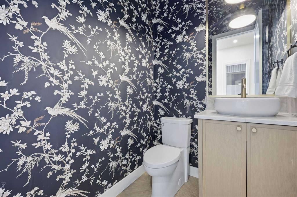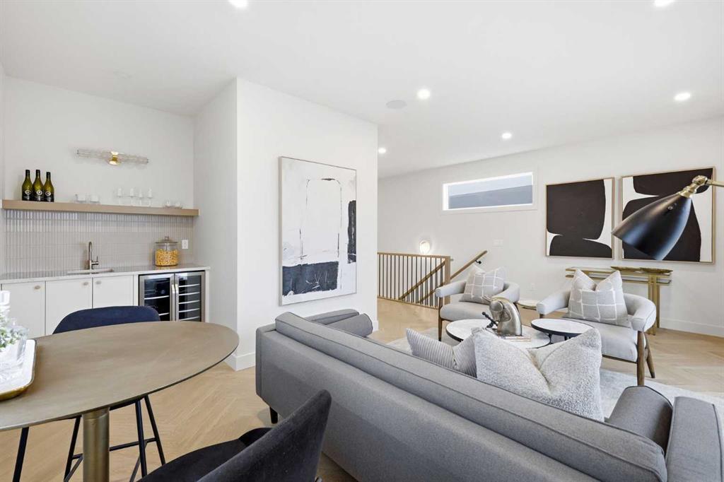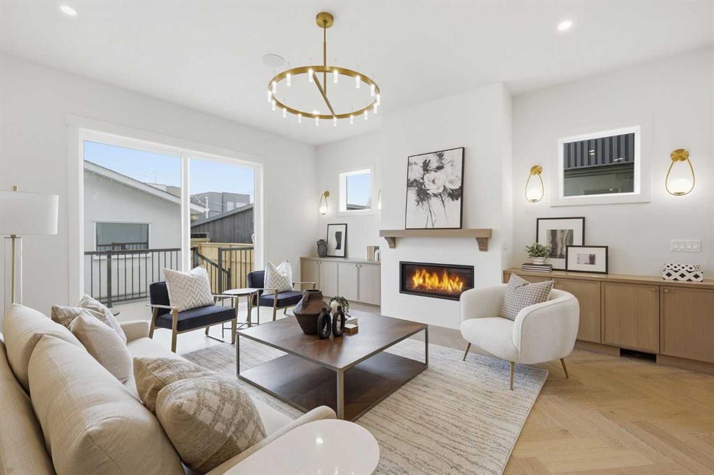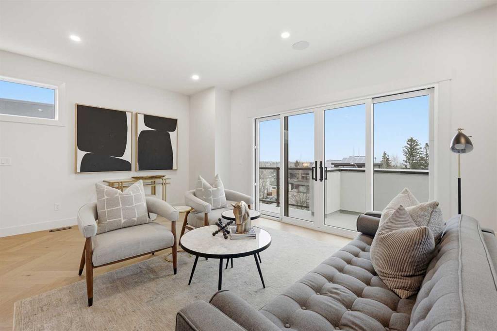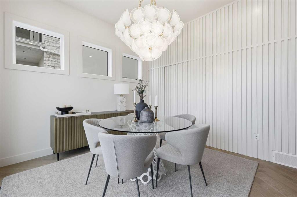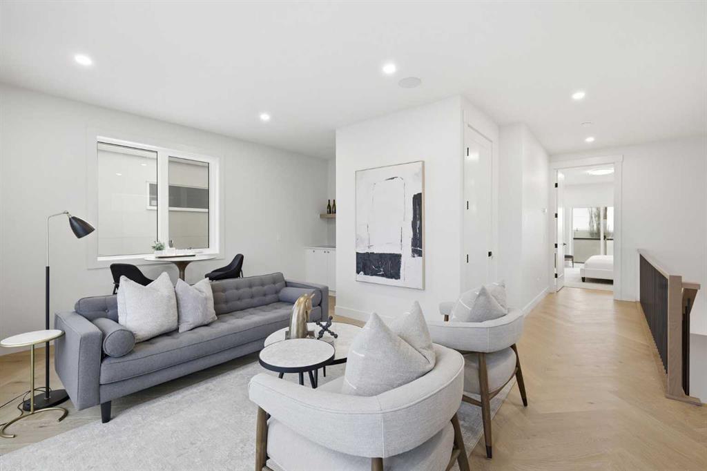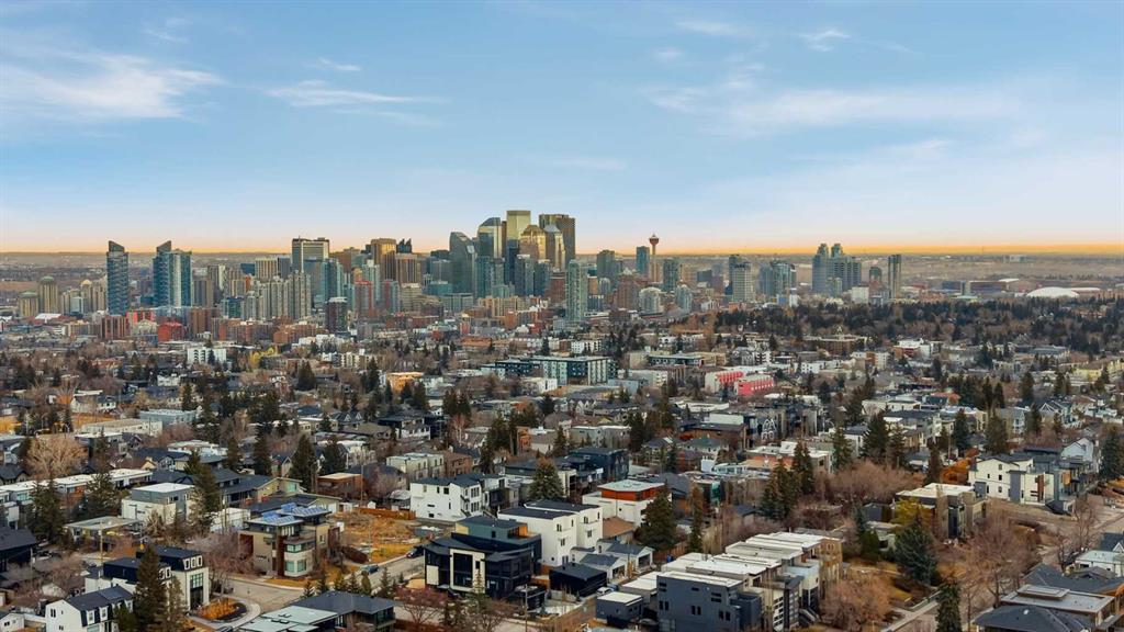Beautifully positioned in the heart of Marda Loop on a quiet, tree-lined street and situated on a 31’x125’ lot, this super luxe residence offers over 4400 sq ft of developed living space and combines exceptional design, thoughtful functionality, and refined comfort. A sunny south-facing backyard and fully unobstructed city views set the stage for elevated inner city living. A private elevator services all levels—from the basement to the top floor—offering effortless accessibility for those looking to age in place or right-size without compromise. Inside, the home is rich with high-end finishes, including chevron-patterned hardwood flooring throughout, lofty ceilings and designer lighting with glass and bronze gold detailing, moody chandeliers and statement sconces. A spacious front dining room with statement wall panelling has ample space to host family & friends and is seamlessly connect to the kitchen through a beautifully appointed butler’s pantry. Entertaining and preparation are effortless in the chef’s kitchen that impresses with quartz counter tops, large waterfall island/eating bar, two-toned cabinetry and premium appliance package. Completing the main level is a 2 piece powder with wallpaper accent. A wide, light-filled staircase leads to the second level, where you’ll find a bonus room, a well designed laundry room, and two large bedrooms—each complete with its own private ensuite. The top floor is a true primary retreat, offering a private lounge/den, a wet bar, full city views, and direct elevator access. The luxurious primary suite features an exceptional walk in closet and a spa inspired ensuite with dual vanities, heated floors, freestanding soaker tub and a glass shower with bench which is roughed in for steam. The fully developed basement—also roughed in for in floor heat—includes a stylish built in bar, a massive recreation room ideal for movie nights, fitness space, or play, a fourth bedroom, and a beautifully finished three piece bathroom. Additional highlights include rough in for A/C, a fully landscaped and fenced yard, a front deck/balcony, and a timeless exterior design. Parking is a breeze with a double attached garage that is also roughed in for in floor heat. Just steps from the amenities of Marda Loop, close to transit, Crowchild Trail, parks, schools, and only a 10 minute drive to downtown Calgary, this home delivers the best of luxury and location in one exceptional package.