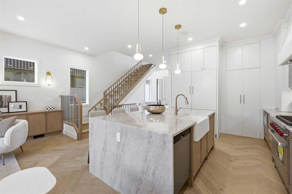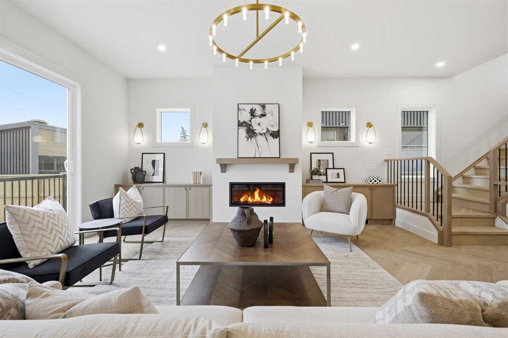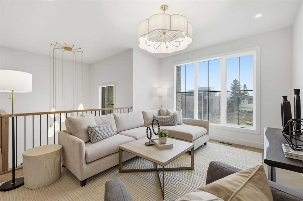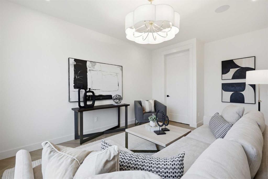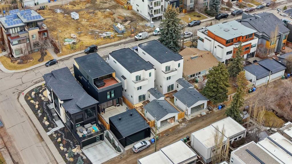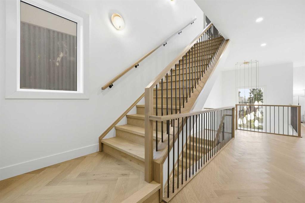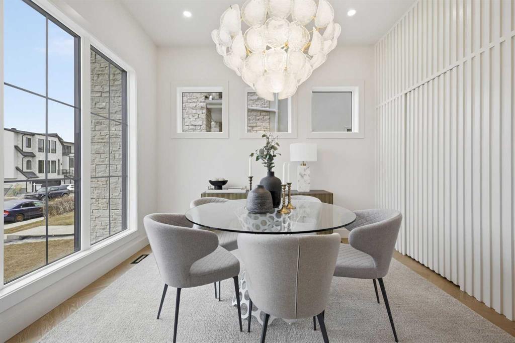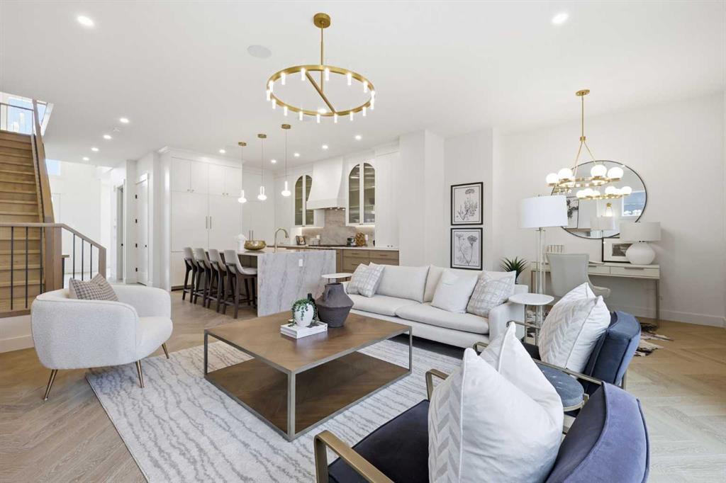 Beautifully positioned in the heart of Marda Loop on a quiet, tree-lined street and situated on a 31’x125’ lot, this super luxe residence offers over 4400 sq ft of developed living space and combines exceptional design, thoughtful functionality, and refined comfort. A sunny south-facing backyard and fully unobstructed city views set the stage for elevated inner city living. A private elevator services all levels—from the basement to the top floor—offering effortless accessibility for those looking to age in place or right-size without compromise. Inside, the home is rich with high-end finishes, including chevron-patterned hardwood flooring throughout, lofty ceilings and designer lighting with glass and bronze gold detailing, moody chandeliers and statement sconces. A spacious front dining room with statement wall panelling has ample space to host family & friends and is seamlessly connect to the kitchen through a beautifully appointed butler’s pantry. Entertaining and preparation are effortless in the chef’s kitchen that impresses with quartz counter tops, large waterfall island/eating bar, two-toned cabinetry and premium appliance package. Completing the main level is a 2 piece powder with wallpaper accent. A wide, light-filled staircase leads to the second level, where you’ll find a bonus room, a well designed laundry room, and two large bedrooms—each complete with its own private ensuite. The top floor is a true primary retreat, offering a private lounge/den, a wet bar, full city views, and direct elevator access. The luxurious primary suite features an exceptional walk in closet and a spa inspired ensuite with dual vanities, heated floors, freestanding soaker tub and a glass shower with bench which is roughed in for steam. The fully developed basement—also roughed in for in floor heat—includes a stylish built in bar, a massive recreation room ideal for movie nights, fitness space, or play, a fourth bedroom, and a beautifully finished three piece bathroom. Additional highlights include rough in for A/C, a fully landscaped and fenced yard, a front deck/balcony, and a timeless exterior design. Parking is a breeze with a double attached garage that is also roughed in for in floor heat. Just steps from the amenities of Marda Loop, close to transit, Crowchild Trail, parks, schools, and only a 10 minute drive to downtown Calgary, this home delivers the best of luxury and location in one exceptional package.