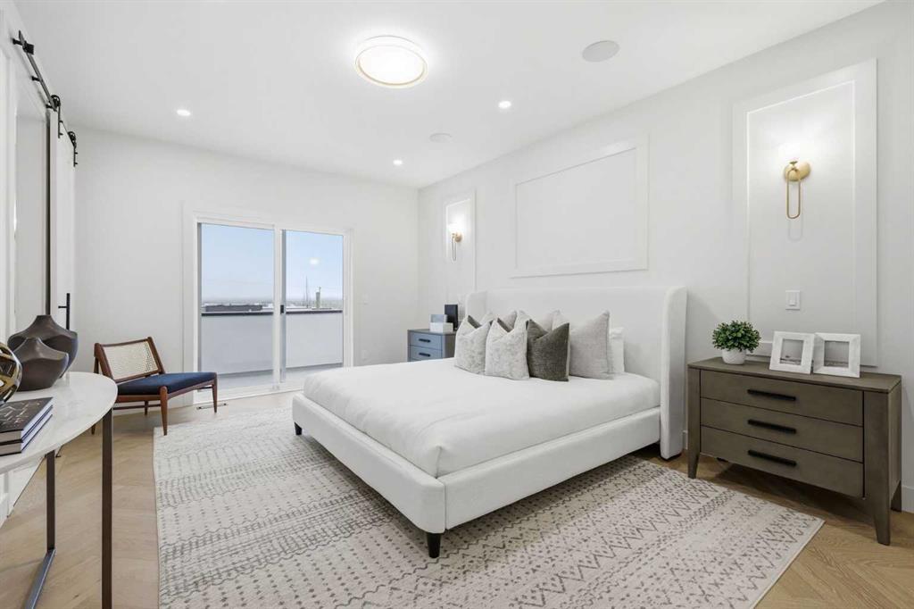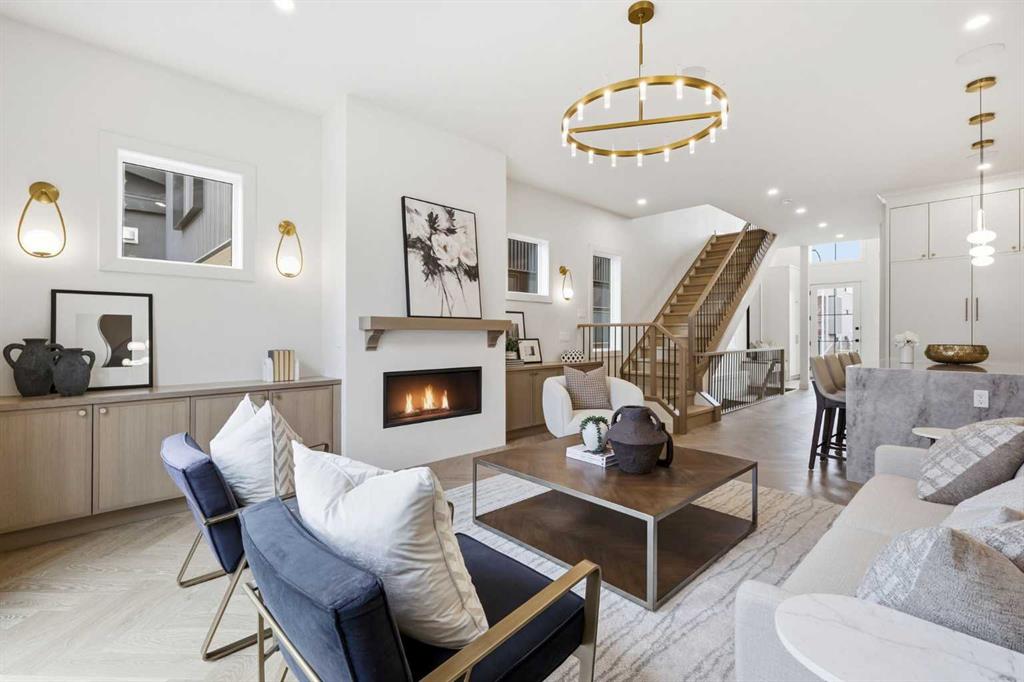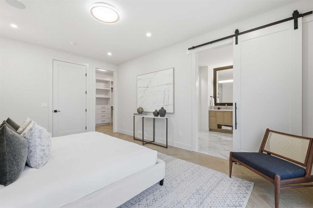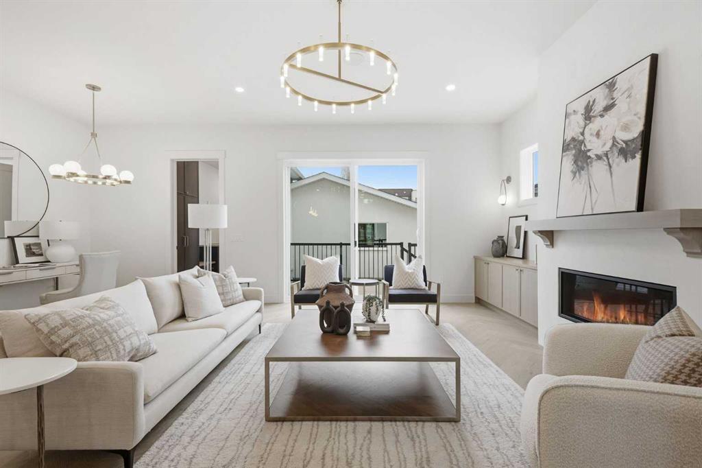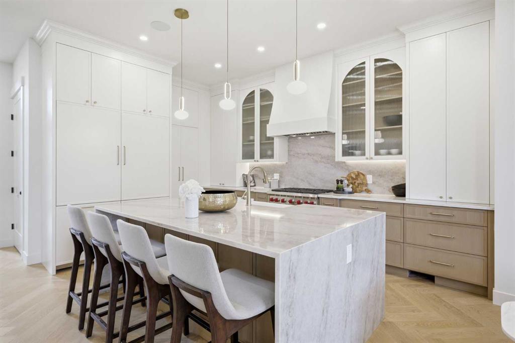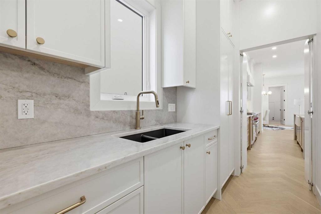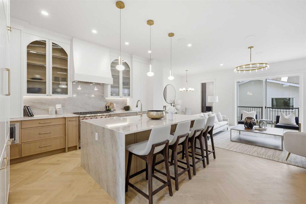 Beautifully positioned in the heart of Marda Loop on a quiet, tree-lined street and situated on a 31’x125’ lot, this super luxe residence offers over 4400 sq ft of developed living space and combines exceptional design, thoughtful functionality, and refined comfort. A sunny south-facing backyard and fully unobstructed city views set the stage for elevated inner city living. A private elevator services all levels—from the basement to the top floor—offering effortless accessibility for those looking to age in place or right-size without compromise. Inside, the home is rich with high-end finishes, including chevron-patterned hardwood flooring throughout, lofty ceilings and designer lighting with glass and bronze gold detailing, moody chandeliers and statement sconces. A spacious front dining room with statement wall panelling has ample space to host family & friends and is seamlessly connect to the kitchen through a beautifully appointed butler’s pantry. Entertaining and preparation are effortless in the chef’s kitchen that impresses with quartz counter tops, large waterfall island/eating bar, two-toned cabinetry and premium appliance package. Completing the main level is a 2 piece powder with wallpaper accent. A wide, light-filled staircase leads to the second level, where you’ll find a bonus room, a well designed laundry room, and two large bedrooms—each complete with its own private ensuite. The top floor is a true primary retreat, offering a private lounge/den, a wet bar, full city views, and direct elevator access. The luxurious primary suite features an exceptional walk in closet and a spa inspired ensuite with dual vanities, heated floors, freestanding soaker tub and a glass shower with bench which is roughed in for steam. The fully developed basement—also roughed in for in floor heat—includes a stylish built in bar, a massive recreation room ideal for movie nights, fitness space, or play, a fourth bedroom, and a beautifully finished three piece bathroom. Additional highlights include rough in for A/C, a fully landscaped and fenced yard, a front deck/balcony, and a timeless exterior design. Parking is a breeze with a double attached garage that is also roughed in for in floor heat. Just steps from the amenities of Marda Loop, close to transit, Crowchild Trail, parks, schools, and only a 10 minute drive to downtown Calgary, this home delivers the best of luxury and location in one exceptional package.