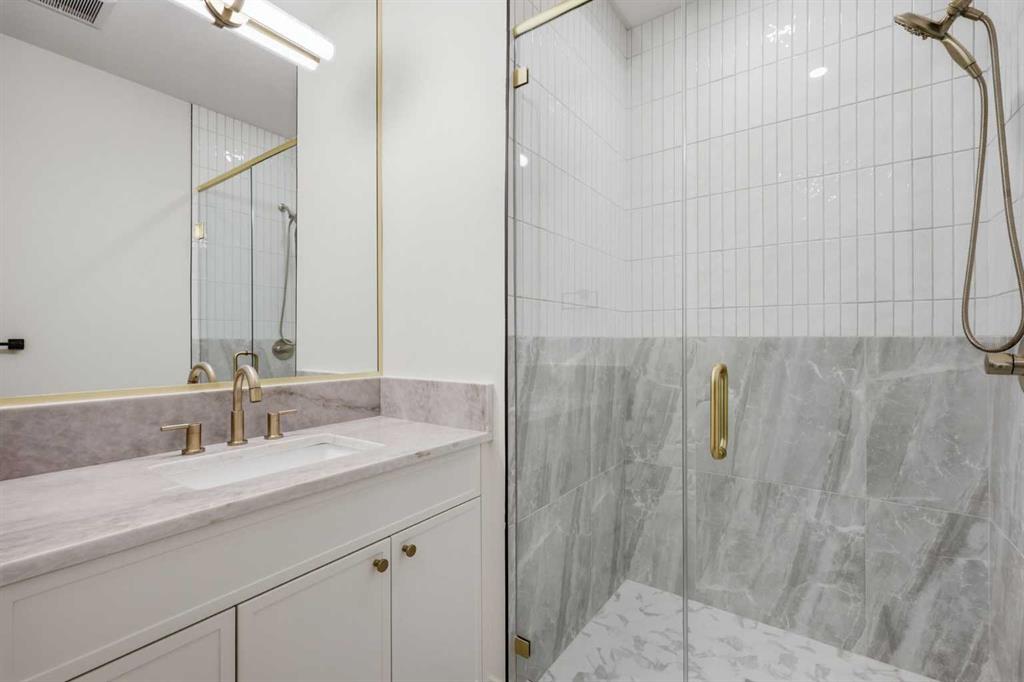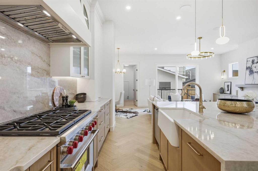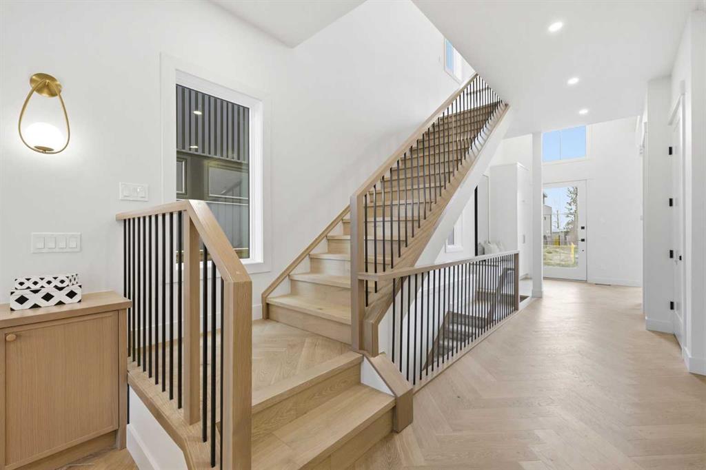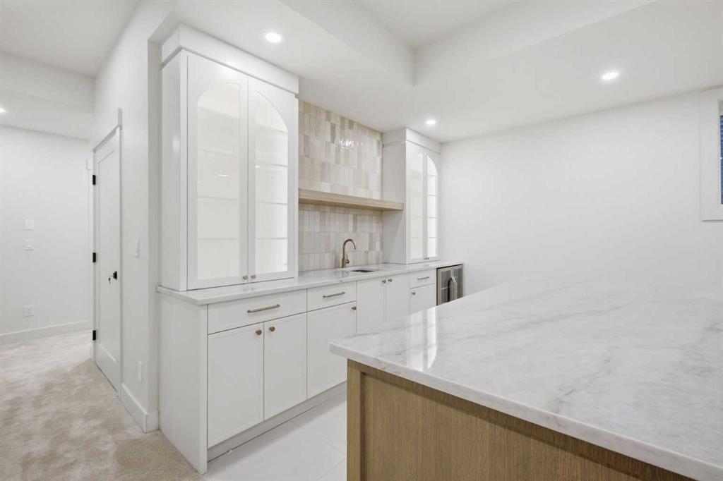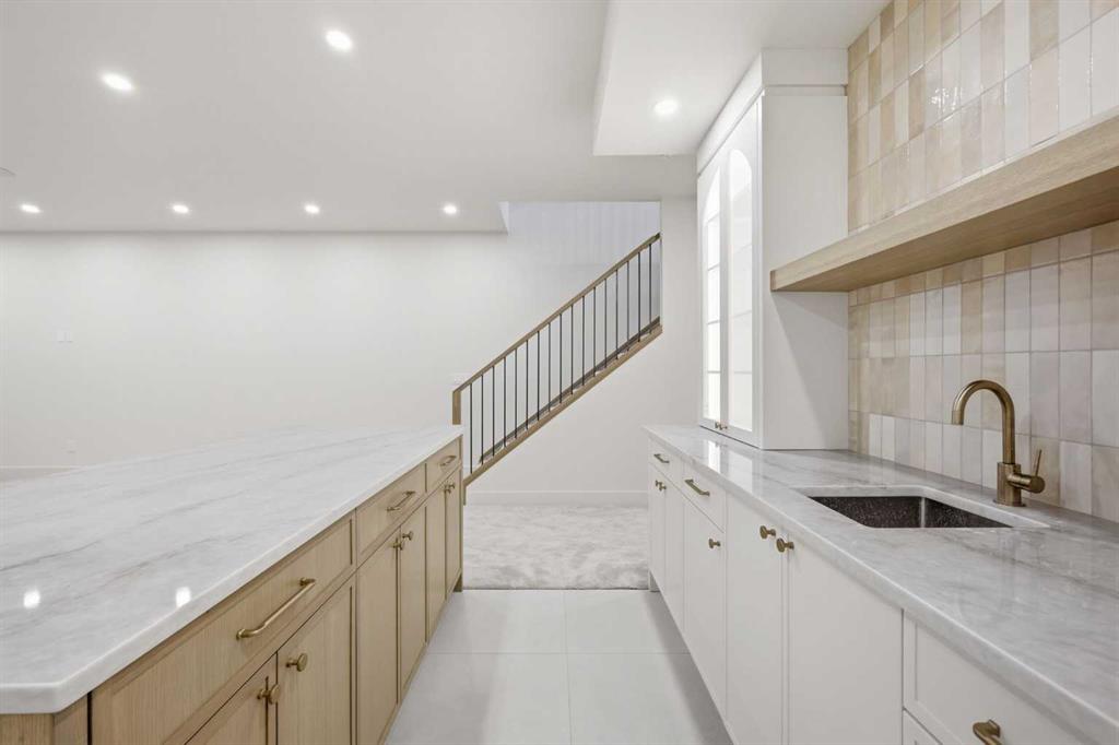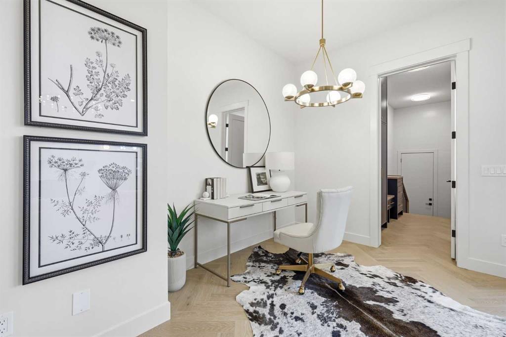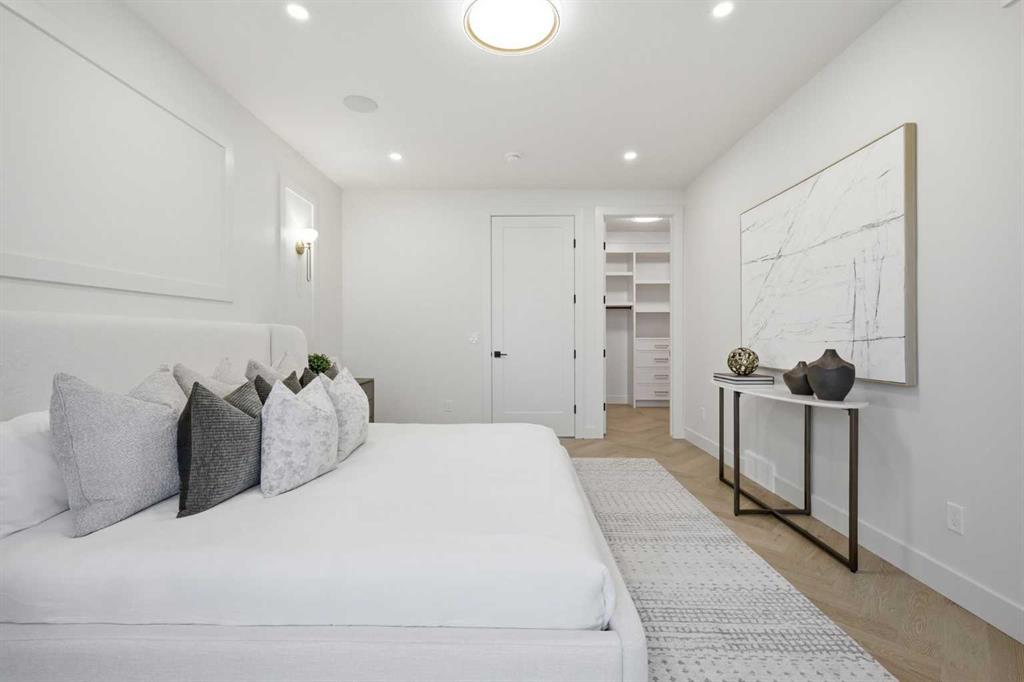 Beautifully positioned in the heart of Marda Loop on a quiet, tree-lined street and situated on a 31’x125’ lot, this super luxe residence offers over 4400 sq ft of developed living space and combines exceptional design, thoughtful functionality, and refined comfort. A sunny south-facing backyard and fully unobstructed city views set the stage for elevated inner city living. A private elevator services all levels—from the basement to the top floor—offering effortless accessibility for those looking to age in place or right-size without compromise. Inside, the home is rich with high-end finishes, including chevron-patterned hardwood flooring throughout, lofty ceilings and designer lighting with glass and bronze gold detailing, moody chandeliers and statement sconces. A spacious front dining room with statement wall panelling has ample space to host family & friends and is seamlessly connect to the kitchen through a beautifully appointed butler’s pantry. Entertaining and preparation are effortless in the chef’s kitchen that impresses with quartz counter tops, large waterfall island/eating bar, two-toned cabinetry and premium appliance package. Completing the main level is a 2 piece powder with wallpaper accent. A wide, light-filled staircase leads to the second level, where you’ll find a bonus room, a well designed laundry room, and two large bedrooms—each complete with its own private ensuite. The top floor is a true primary retreat, offering a private lounge/den, a wet bar, full city views, and direct elevator access. The luxurious primary suite features an exceptional walk in closet and a spa inspired ensuite with dual vanities, heated floors, freestanding soaker tub and a glass shower with bench which is roughed in for steam. The fully developed basement—also roughed in for in floor heat—includes a stylish built in bar, a massive recreation room ideal for movie nights, fitness space, or play, a fourth bedroom, and a beautifully finished three piece bathroom. Additional highlights include rough in for A/C, a fully landscaped and fenced yard, a front deck/balcony, and a timeless exterior design. Parking is a breeze with a double attached garage that is also roughed in for in floor heat. Just steps from the amenities of Marda Loop, close to transit, Crowchild Trail, parks, schools, and only a 10 minute drive to downtown Calgary, this home delivers the best of luxury and location in one exceptional package.