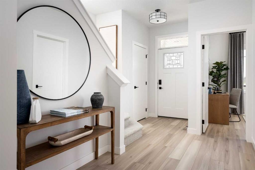 Shane Homes proudly presents the Vilano II, a well designed and highly customizable laned home in Cobblestone Creek, Airdrie. Offering 3 bedrooms and 3 full bathrooms, this home features a functional main floor Flex Roomconveniently located next to a full bath. The open concept main level showcases a bright living area, dining nook, and a modern kitchen with central island and walk in pantry, ideal for both everyday living and entertaining. Upstairs, you will find three additional bedrooms, a spacious family room, and a private owner’s bedroom complete with a walk in closet and an ensuite featuring dual vanities. A side by side upper floor laundry adds everyday convenience. The home also includes a side entrance and an undeveloped basement ready for potential future development. Built by Shane Homes. Photos are of a completed showhome and are for illustrative purposes only.